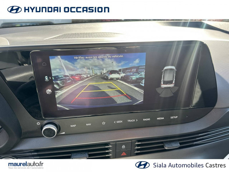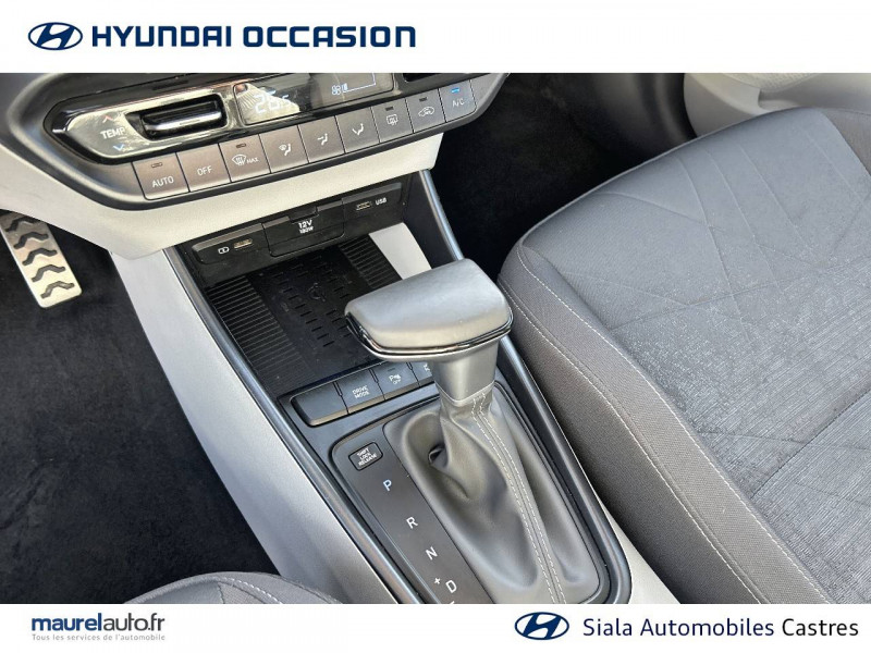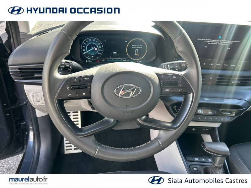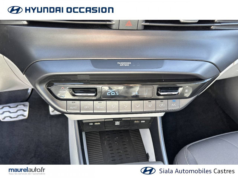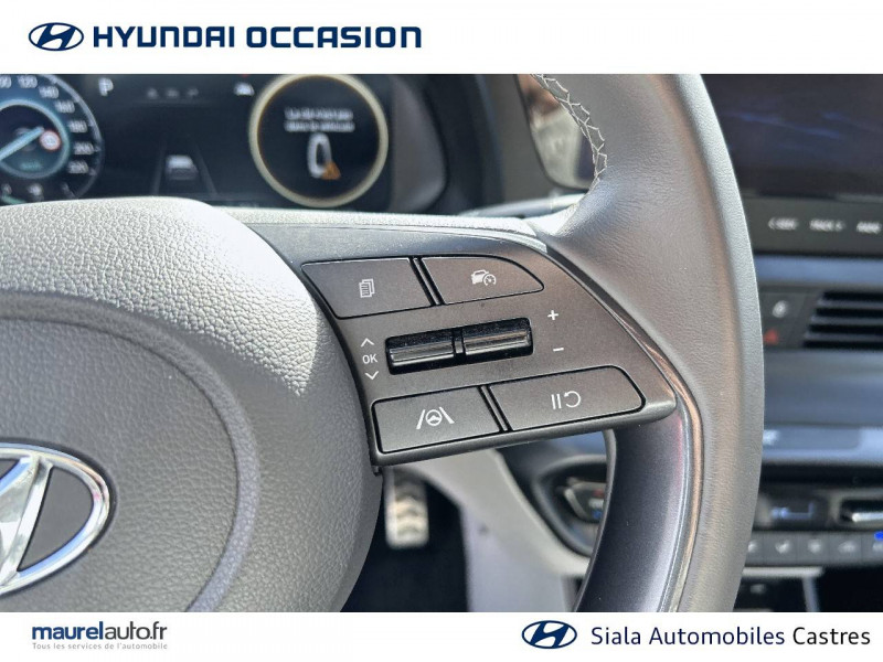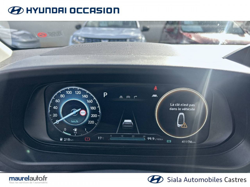 2 HP + 2 tweeters (AV) / 2 HP AR / Accès mains-libres et démarrage sans clé / Airbags frontaux conducteur et passager (déconnectable côté passager) / Alerte de débouclage de la ceinture de sécuritéà toutes les places / Alerte de présence de passager AR / Calandre noir laqué / Chargeur sans fil pour téléphone compatible / Climatisation automatique avec capteur désembuage automatique / Compteurs numériques 10,25" / Console de rangement sous accoudoir AV / Contrôle de trajectoire électronique (ESP & VSM) / Détection de fatigue du conducteur / eCall: appel d'urgence automatique aux services de secours avec géolocalisation du véhicule / Eclairage d'accueil et d'accompagnement / Eclairage d'ambiance / Ecran couleur tactile 10.25" / Feux AV bi-LED avec éclairage additionnel en virage / Feux de route intelligents / Filet de coffre / Freinage d'urgence autonome avec reconnaissance piétons et cyclistes / Intérieur bi-ton noir et gris clair (sauf coloris extérieur Mangrove Green) / Intérieur noir avec inserts décoratifs et surpiqure Safari Green (avec coloris extérieur Mangrove Green uniquement) / Jonc de vitres chromé / Navigation Europe avec mise à jour de la cartographie / Peinture Mangrove Green / Plancher de coffre modulable / Poche aumônière dans le dossier du siège passager AV / Porte-gobelets AV / Port USB de recharge à l'AR / Port USB de recharge à l'AV / Réception radio numérique terrestre (DAB) / Rétroviseur intérieur jour/nuit automatique / Sécurité enfants sur portes AR / Services connectés BlueLink avec carte SIM incluse Transmission de destination au système de navigation à distance - Géolocalisation du véhicule - Historique des trajets - Statut du véhicule (portes, moteur, ventilation) - Diagnostic. Services télématiques offerts pendant 5 ans - Les fonctionnalités à distance s'effectuent via une application depuis un téléphone compatible, hors frais de connexion / Services connectés Hyundai Live Information trafic, prix des carburants, emplacements de stationnement, météo, points d'intérêt / Système audio RDS compatible MP3 avec connexion USB / Système ISOFIX aux places latérales AR / Verrouillage automatique des portes en roulant / Vitre électrique séquentielle côté conducteur / Volant et levier de vitesses gainés de cuir