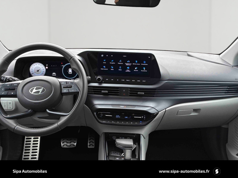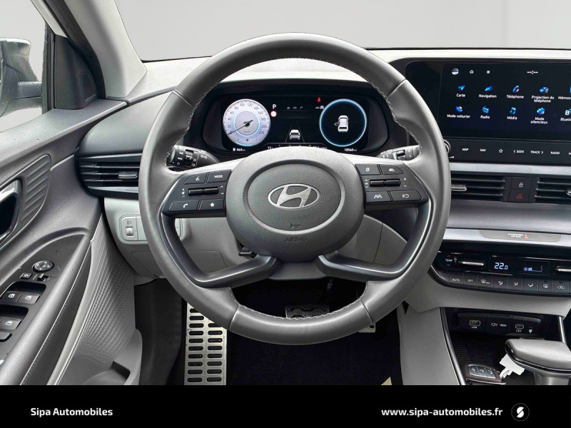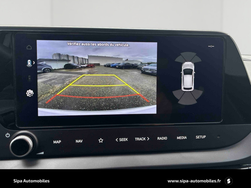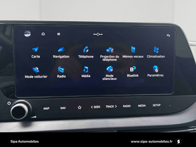 Climatisation automatique avec capteur désembuage automatique / eCall: appel d'urgence automatique aux services de secours avec géolocalisation du véhicule / Eclairage d'ambiance à LED personnalisable / Eclairage d'habitacle à LED / Feux "Seamless Horizon" avec bandeau LED / Feux AV bi-LED avec éclairage additionnel en virage / Jantes alliage 17" 205/55 R17 91H / Rétroviseur intérieur jour/nuit automatique / Services connectés BlueLink avec carte SIM incluse: Transmission de destination au système de navigation à distance - Géolocalisation du véhicule - Historique des trajets - Statut du véhicule (portes, moteur, ventilation) - Diagnostic Services Bluelink PRO offerts pendant 6 mois et services Bluelink LITE offerts pendant 10 ans après la date de mise en circulation du véhicule. Les fonctionnalités à distance s'effectuent via l'application depuis un téléphone compatible, hors frais de connexion. / Système de navigation Europe avec programme de mise à jour à distance et services Hyundai Live information trafic, carburants, emplacements de stationnement, météo, points d'intérêt et zones de danger / Verrouillage automatique des portes en roulant / Volant et levier de vitesses gainés de cuir / 6 Airbags: frontaux conducteur et passager (déconnectable côté passager), latéraux AV, rideaux AV et AR / Accès mains-libres et démarrage sans clé / Alerte de débouclage de la ceinture de sécuritéà toutes les places / Alerte de présence de passager AR / Assistance active au suivi de voie / Calandre noir laqué / Chargeur sans fil pour téléphone compatible / Compteurs numériques 10,25" / Console de rangement sous accoudoir AV / Contrôle de trajectoire électronique (ESP & VSM) / Détection de fatigue du conducteur / Eclairage d'accueil et d'accompagnement / Ecran couleur tactile 10.25" / Feux de route intelligents / Freinage d'urgence autonome avec reconnaissance piétons et cyclistes / Intérieur bi-ton noir et gris clair / Jonc de vitres chromé / Plancher de coffre modulable / Poche aumônière dans le dossier du siège passager AV / Port USB de recharge à l'AR / Port USB de recharge à l'AV / Porte-gobelets AV / Système audio RDS/DAB compatible MP3 avec connexion USB-A, 6 HP / Système ISOFIX aux places latérales AR / Sécurité enfants sur portes AR / Vitre électrique séquentielle côté conducteur