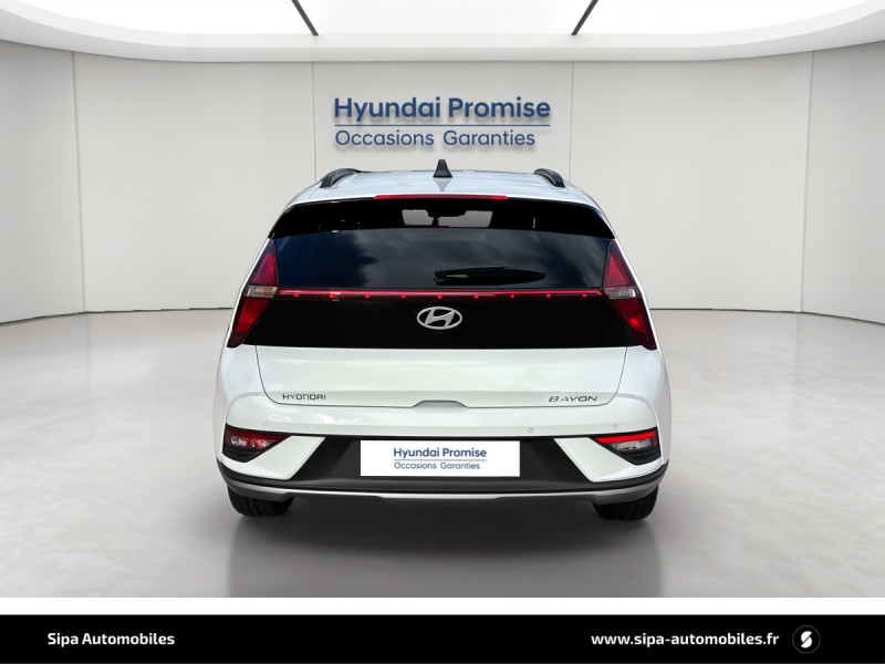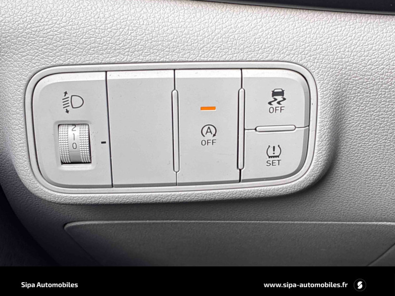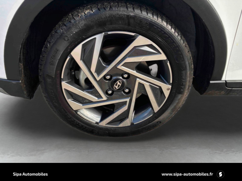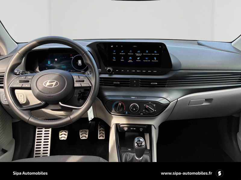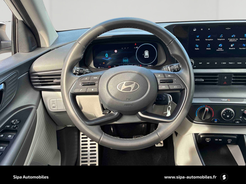 eCall: appel d'urgence automatique aux services de secours avec géolocalisation du véhicule / Eclairage d'ambiance à LED personnalisable / Feux "Seamless Horizon" avec bandeau LED / Feux AV bi-LED avec éclairage additionnel en virage / Jantes alliage 16" 195/55 R16 87 H / Services connectés BlueLink avec carte SIM incluse: Transmission de destination au système de navigation à distance - Géolocalisation du véhicule - Historique des trajets - Statut du véhicule (portes, moteur, ventilation) - Diagnostic Services Bluelink PRO offerts pendant 6 mois et services Bluelink LITE offerts pendant 10 ans après la date de mise en circulation du véhicule. Les fonctionnalités à distance s'effectuent via l'application depuis un téléphone compatible, hors frais de connexion. / Système de navigation Europe avec programme de mise à jour à distance et services Hyundai Live information trafic, carburants, emplacements de stationnement, météo, points d'intérêt et zones de danger / Verrouillage automatique des portes en roulant / Volant et levier de vitesses gainés de cuir / 6 Airbags: frontaux conducteur et passager (déconnectable côté passager), latéraux AV, rideaux AV et AR / Alerte de débouclage de la ceinture de sécuritéà toutes les places / Alerte de présence de passager AR / Assistance active au suivi de voie / Compteurs numériques 10,25" / Console de rangement sous accoudoir AV / Contrôle de trajectoire électronique (ESP & VSM) / Détection de fatigue du conducteur / Eclairage d'accueil et d'accompagnement / Ecran couleur tactile 10.25" / Feux de route intelligents / Freinage d'urgence autonome avec reconnaissance piétons et cyclistes / Intérieur bi-ton noir et gris clair / Plancher de coffre modulable / Poche aumônière dans le dossier du siège passager AV / Port USB de recharge à l'AR / Port USB de recharge à l'AV / Porte-gobelets AV / Système audio RDS/DAB compatible MP3 avec connexion USB-A, 6 HP / Système ISOFIX aux places latérales AR / Sécurité enfants sur portes AR / Vitre électrique séquentielle côté conducteur
