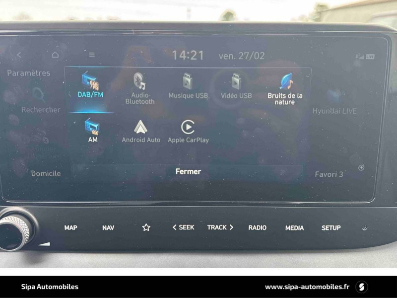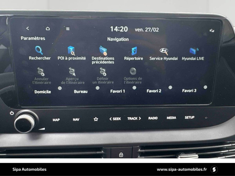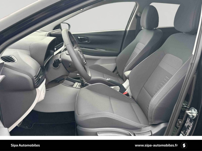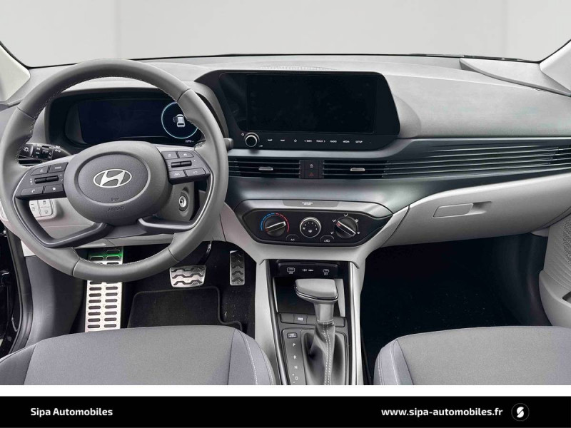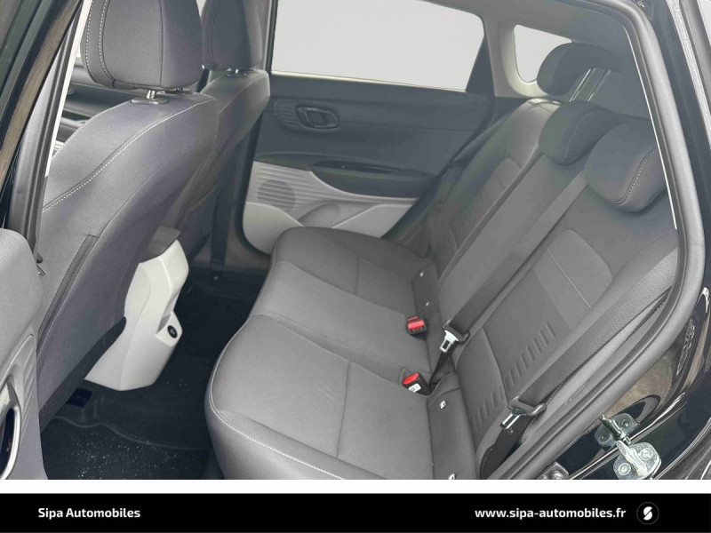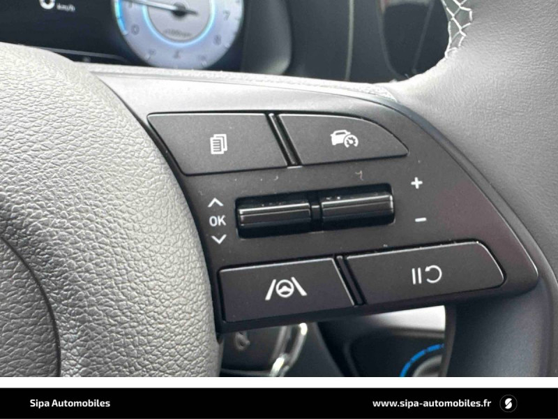6 Airbags: frontaux conducteur et passager (déconnectable côté passager), latéraux AV, rideaux AV et AR / Alerte de débouclage de la ceinture de sécuritéà toutes les places / Alerte de présence de passager AR / Assistance active au suivi de voie / Boîte de vitesse double embrayage 7 rapports / Compteurs numériques 10,25" / Console de rangement sous accoudoir AV / Contrôle de traction (TCS) / Contrôle de trajectoire électronique (ESP & VSM) / Détection de fatigue du conducteur / eCall : appel d'urgence automatique aux services de secours avec géolocalisation du véhicule / Eclairage d'accueil et d'accompagnement / Eclairage d'ambiance à LED personnalisable / Ecran couleur tactile 10.25" / Feux AV bi-LED avec éclairage additionnel en virage / Feux de route intelligents / Feux "Seamless Horizon" avec bandeau LED / Freinage d'urgence autonome avec reconnaissance piétons et cyclistes / Garantie 5 ans (kilométrage illimité) / Garantie 8 ans de la batterie / Intérieur bi-ton noir et gris clair / Jantes alliage 16" 195/55 R16 87 H / Peinture Mangrove Green / Plancher de coffre modulable / Poche aumônière dans le dossier du siège passager AV / Porte-gobelets AV / Port USB de recharge à l'AR / Port USB de recharge à l'AV / Sécurité enfants sur portes AR / Services connectés BlueLink avec carte SIM incluse: Transmission de destination au système de navigation à distance - Géolocalisation du véhicule - Historique des trajets - Statut du véhicule (portes, moteur, ventilation) - Diagnostic Services Bluelink PRO offerts pendant 6 mois et services Bluelink LITE offerts pendant 10 ans après la date de mise en circulation du véhicule. Les fonctionnalités à distance s'effectuent via l'application depuis un téléphone compatible, hors frais de connexion. / Système audio RDS/DAB compatible MP3 avec connexion USB-A, 6 HP / Système de navigation Europe avec programme de mise à jour à distance et services Hyundai Live information trafic, carburants, emplacements de stationnement, météo, points d'intérêt et zones de danger / Système ISOFIX aux places latérales AR / Verrouillage automatique des portes en roulant / Vitre électrique séquentielle côté conducteur / Volant et levier de vitesses gainés de cuir
