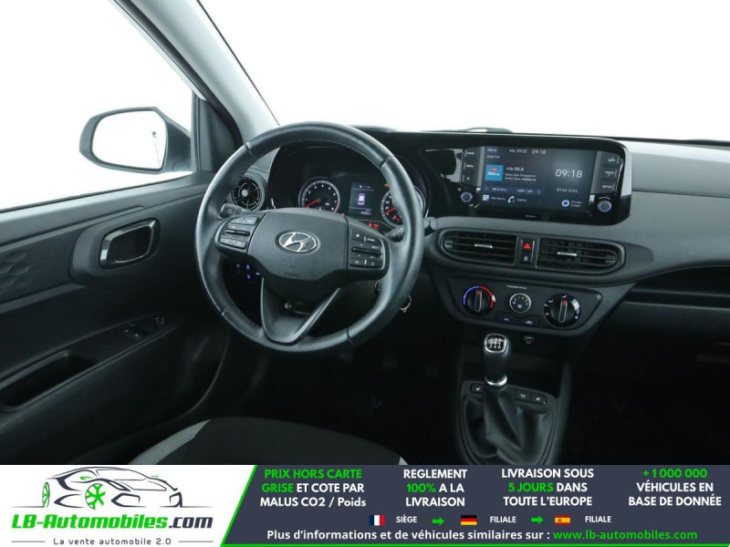 Référence : 1183610 Vos Avantages chez LB-AUTOMOBILES.com / Prix affiché TTC Livré hors carte grise / Livraison sous 10 jours dans toute la France hors 31 / Pas d?avance de frais paiement du véhicule 100% à la livraison par virement. Hyundai I10 Neuf remisée, Hyundai I10 Occasion Toulouse Beaupuy 31850, Hyundai I10 Véhicule sorti de réseau collaborateur, Hyundai I10 import, Hyundai I10 importateur, Hyundai I10 Livraison possible dans toute la France sous 5 jours, Hyundai I10, Hyundai I10 Location Option Achat, Hyundai I10 LLD, Hyundai I10 Longue Durée, Hyundai I10 TVA récupérable. Possibilité d'extension de garantie 12, 24,36 mois, Pour tout autres voitures import neufs ou occasions collaborateur fortement remisée, Mandataire Audi, Mandataire BMW, Mandataire Volkswagen, Mandataire Mercedes, Mandataire Peugeot Espagne, Mandataire Renault Espagne, Porsche import, Mandataire Citroën Espagne, Mandataire Seat Espagne, n'hésitez pas à nous contacter. « Sous réserve de vente préalable et erreur de saisie » Principaux équipements : - ABS - Android Auto - Antidémarrage - Apple CarPlay - Assistance au freinage d'urgence - Assistance de démarrage en côte - Avertisseur de franchissement de ligne - Bluetooth - Capteur de lumière - Carnet d'entretien - Contrôle de la pression des pneus - Direction assistée - Écran tactile - ESP - Fermeture centralisée - Feux de jour LED - Garantie - Isofix - Jantes alliage - Kit de réparation d'urgence des pneus - Kit mains libres - Ordinateur de bord - Pneus toutes saisons - Port USB - Radio DAB - Régulateur de vitesse - Rétroviseur extérieur électrique - Révision complète - Sièges chauffants - Système antipatinage - Système de détection de la fatigue - Système de limitation de la vitesse - Système Stop & Start - Traction avant - Véhicule non-fumeur - Verrouillage centralisé sans clé - Vitres électriques - Volant chauffant - Volant en cuir - Volant multifonction