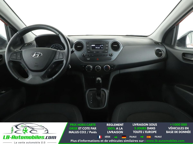 Référence : 1183586 Vos Avantages chez LB-AUTOMOBILES.com / Prix affiché TTC Livré hors carte grise / Livraison sous 10 jours dans toute la France hors 31 / Pas d?avance de frais paiement du véhicule 100% à la livraison par virement. Hyundai I10 Neuf remisée, Hyundai I10 Occasion Toulouse Beaupuy 31850, Hyundai I10 Véhicule sorti de réseau collaborateur, Hyundai I10 import, Hyundai I10 importateur, Hyundai I10 Livraison possible dans toute la France sous 5 jours, Hyundai I10, Hyundai I10 Location Option Achat, Hyundai I10 LLD, Hyundai I10 Longue Durée, Hyundai I10 TVA récupérable. Possibilité d'extension de garantie 12, 24,36 mois, Pour tout autres voitures import neufs ou occasions collaborateur fortement remisée, Mandataire Audi, Mandataire BMW, Mandataire Volkswagen, Mandataire Mercedes, Mandataire Peugeot Espagne, Mandataire Renault Espagne, Porsche import, Mandataire Citroën Espagne, Mandataire Seat Espagne, n'hésitez pas à nous contacter. « Sous réserve de vente préalable et erreur de saisie » Principaux équipements : - ABS - Antidémarrage - Bluetooth - Contrôle de la pression des pneus - Direction assistée - ESP - Fermeture centralisée - Feux de jour LED - Garantie - Isofix - Jantes alliage - Kit de réparation d'urgence des pneus - Kit mains libres - Ordinateur de bord - Phare antibrouillard - Pneus été - Point Isofix siège passager - Port USB - Rétroviseur extérieur électrique - Révision complète - Sièges chauffants - Système antipatinage - Traction avant - Tuner/radio - Véhicule non-fumeur - Verrouillage centralisé sans clé - Vitres électriques - Vitres teintées - Volant chauffant - Volant en cuir - Volant multifonction