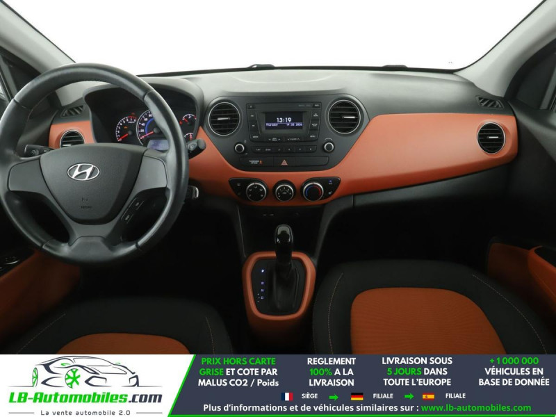 Référence : 1191661 Vos Avantages chez LB-AUTOMOBILES.com / Prix affiché TTC Livré hors carte grise / Livraison sous 10 jours dans toute la France hors 31 / Pas d?avance de frais paiement du véhicule 100% à la livraison par virement. Hyundai I10 Neuf remisée, Hyundai I10 Occasion Toulouse Beaupuy 31850, Hyundai I10 Véhicule sorti de réseau collaborateur, Hyundai I10 import, Hyundai I10 importateur, Hyundai I10 Livraison possible dans toute la France sous 5 jours, Hyundai I10, Hyundai I10 Location Option Achat, Hyundai I10 LLD, Hyundai I10 Longue Durée, Hyundai I10 TVA récupérable. Possibilité d'extension de garantie 12, 24,36 mois, Pour tout autres voitures import neufs ou occasions collaborateur fortement remisée, Mandataire Audi, Mandataire BMW, Mandataire Volkswagen, Mandataire Mercedes, Mandataire Peugeot Espagne, Mandataire Renault Espagne, Porsche import, Mandataire Citroën Espagne, Mandataire Seat Espagne, n'hésitez pas à nous contacter. « Sous réserve de vente préalable et erreur de saisie » Principaux équipements : - ABS - Antidémarrage - Assistance de démarrage en côte - Carnet d'entretien - Contrôle de la pression des pneus - Direction assistée - ESP - Fermeture centralisée - Garantie - Isofix - Kit de réparation d'urgence des pneus - Ordinateur de bord - Phare antibrouillard - Pneus été - Port USB - Rétroviseur extérieur électrique - Révision complète - Sièges chauffants - Système antipatinage - Traction avant - Tuner/radio - Véhicule non-fumeur - Verrouillage centralisé sans clé - Vitres électriques - Volant chauffant - Volant en cuir