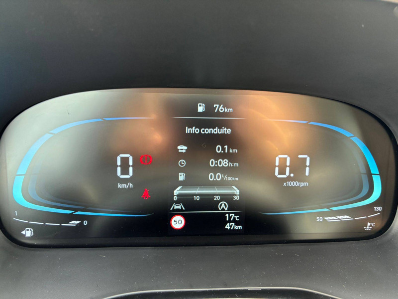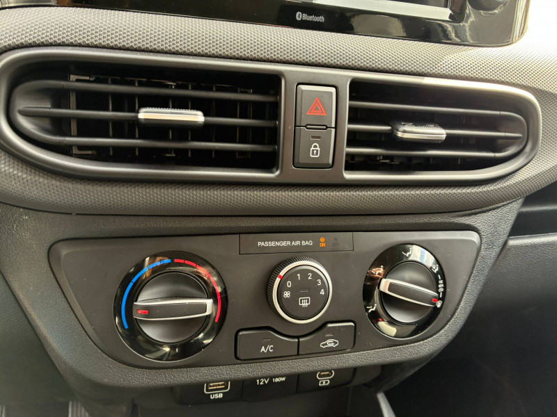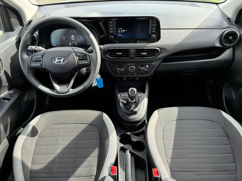 4 HP (2 AV, 2 AR) / Alarme périmétrique / Alerte de débouclage de la ceinture de sécuritéà toutes les places / Assistance active au maintien et au suivi de voie / Boîte de vitesses manuelle à 5 rapports / Compatibilité Apple CarPlay et Android Auto avec reconnaissance vocale / Configuration 4 places / Console de rangement / Détection de fatigue du conducteur / eCall: appel d'urgence automatique aux services de secours avec géolocalisation du véhicule / Enjoliveurs 14" / Espace de rangement entre les sièges AV / Feux de route intelligents / Freinage d'urgence autonome avec détection des piétons et cycliste / Garantie 5 ans (kilométrage illimité) / Intérieur noir intégral / Navigation Europe avec mise à jour de la cartographie / Réception radio numérique terrestre (DAB) / Sécurité enfants sur portes AR / Services connectés BlueLink avec carte SIM incluse: Transmission de destination au système de navigation à distance - Géolocalisation du véhicule - Historique des trajets - Statut du véhicule (portes, moteur, ventilation) - Diagnostic Services Bluelink PRO offerts pendant 6 mois et services Bluelink LITE offerts pendant 10 ans après la date de mise en circulation du véhicule. Les fonctionnalités à distance s'effectuent via l'application depuis un téléphone compatible, hors frais de connexion. / Services connectés Hyundai Live: Information trafic, prix des carburants, emplacements de stationnement, météo, points d''intérêt Services Bluelink PRO offerts pendant 6 mois et services Bluelink LITE offerts pendant 10 ans après la date de mise en circulation du véhicule. Les fonctionnalités à distance s'effectuent via l'application depuis un téléphone compatible, hors frais de connexion. / Système audio RDS compatible MP3 / Système ISOFIX aux places latérales AR / TCS (Traction Control System) / Vitre conducteur séquentielle / Volant et pommeau de levier de vitesses gainés de cuir