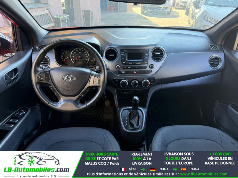 Référence : 1210785 Vos Avantages chez LB-AUTOMOBILES.com / Prix affiché TTC Livré hors carte grise / Livraison sous 10 jours dans toute la France hors 31 / Pas d?avance de frais paiement du véhicule 100% à la livraison par virement. Hyundai I10 Neuf remisée, Hyundai I10 Occasion Toulouse Beaupuy 31850, Hyundai I10 Véhicule sorti de réseau collaborateur, Hyundai I10 import, Hyundai I10 importateur, Hyundai I10 Livraison possible dans toute la France sous 5 jours, Hyundai I10, Hyundai I10 Location Option Achat, Hyundai I10 LLD, Hyundai I10 Longue Durée, Hyundai I10 TVA récupérable. Possibilité d'extension de garantie 12, 24,36 mois, Pour tout autres voitures import neufs ou occasions collaborateur fortement remisée, Mandataire Audi, Mandataire BMW, Mandataire Volkswagen, Mandataire Mercedes, Mandataire Peugeot Espagne, Mandataire Renault Espagne, Porsche import, Mandataire Citroën Espagne, Mandataire Seat Espagne, n'hésitez pas à nous contacter. « Sous réserve de vente préalable et erreur de saisie » Principaux équipements : - ABS - Antidémarrage - Bluetooth - Carnet d'entretien - Contrôle de la pression des pneus - Direction assistée - ESP - Fermeture centralisée - Feux de jour LED - Isofix - Jantes alliage - Kit mains libres - Lecteur CD - Ordinateur de bord - Phare antibrouillard - Port USB - Rétroviseur extérieur électrique - Rétroviseur intérieur anti-éblouissement automatique - Sièges chauffants - Système antipatinage - Système d'alarme - Traction avant - Tuner/radio - Véhicule non-fumeur - Vitres électriques - Volant chauffant - Volant en cuir - Volant multifonction