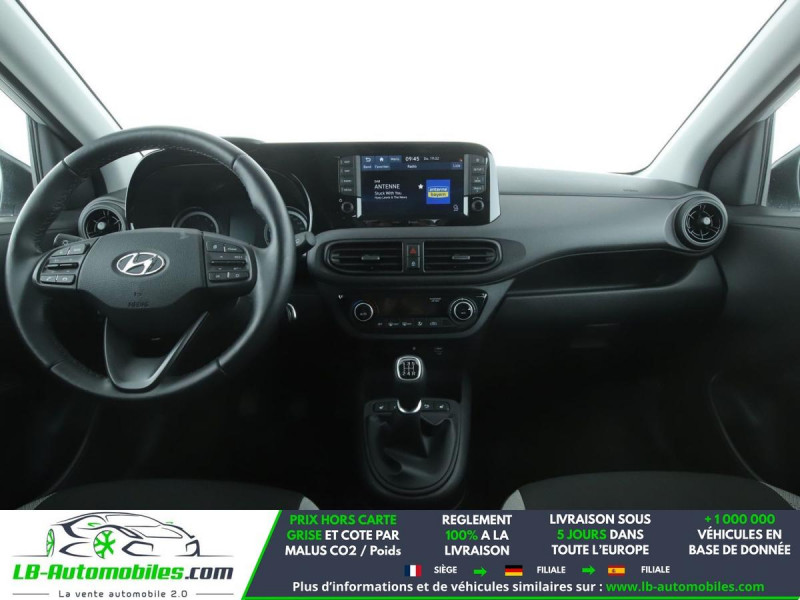 Référence : 1205958 Vos Avantages chez LB-AUTOMOBILES.com / Prix affiché TTC Livré hors carte grise / Livraison sous 10 jours dans toute la France hors 31 / Pas d?avance de frais paiement du véhicule 100% à la livraison par virement. Hyundai I10 Neuf remisée, Hyundai I10 Occasion Toulouse Beaupuy 31850, Hyundai I10 Véhicule sorti de réseau collaborateur, Hyundai I10 import, Hyundai I10 importateur, Hyundai I10 Livraison possible dans toute la France sous 5 jours, Hyundai I10, Hyundai I10 Location Option Achat, Hyundai I10 LLD, Hyundai I10 Longue Durée, Hyundai I10 TVA récupérable. Possibilité d'extension de garantie 12, 24,36 mois, Pour tout autres voitures import neufs ou occasions collaborateur fortement remisée, Mandataire Audi, Mandataire BMW, Mandataire Volkswagen, Mandataire Mercedes, Mandataire Peugeot Espagne, Mandataire Renault Espagne, Porsche import, Mandataire Citroën Espagne, Mandataire Seat Espagne, n'hésitez pas à nous contacter. « Sous réserve de vente préalable et erreur de saisie » Principaux équipements : - ABS - Accoudoir - Android Auto - Antidémarrage - Apple CarPlay - Avertisseur de franchissement de ligne - Bluetooth - Capteur de lumière - Commande vocale - Contrôle de la pression des pneus - Direction assistée - ESP - Fermeture centralisée - Feux de jour LED - Garantie - GPS - Isofix - Jantes alliage - Kit de réparation d'urgence des pneus - Kit mains libres - Ordinateur de bord - Phare antibrouillard - Pneus toutes saisons - Port USB - Radio DAB - Régulateur de vitesse - Rétroviseur extérieur électrique - Révision complète - Sièges chauffants - Système antipatinage - Système Stop & Start - Traction avant - Véhicule non-fumeur - Verrouillage centralisé sans clé - Vitres électriques - Volant chauffant - Volant en cuir - Volant multifonction