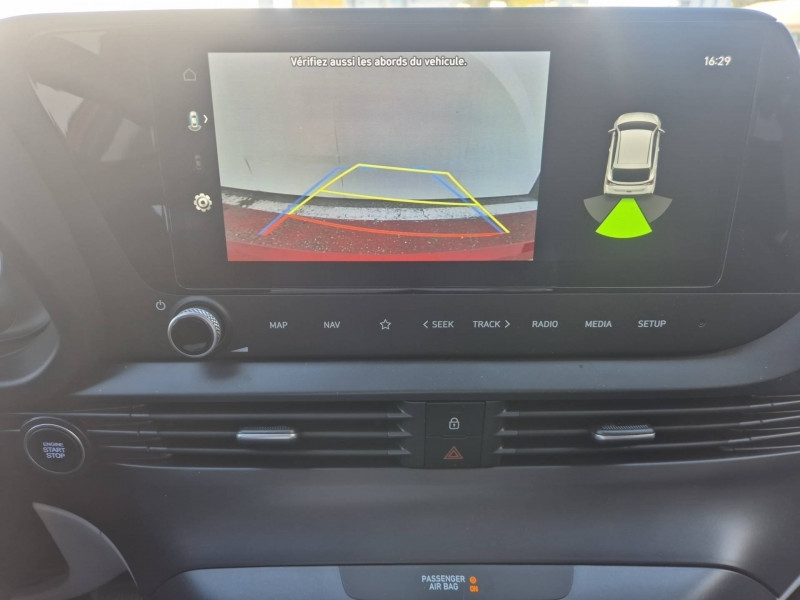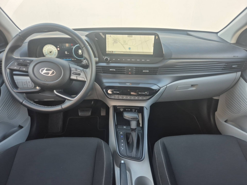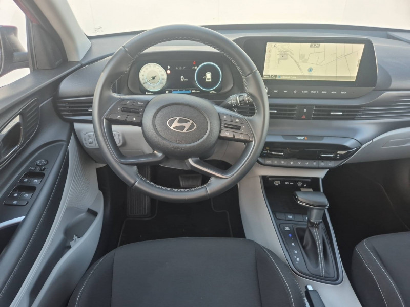 Climatisation automatique avec capteur désembuage automatique / eCall : appel d'urgence automatique aux services de secours avec géolocalisation du véhicule / Eclairage d'ambiance personnalisable à LED / Eclairage d'habitacle à LED / Feux AV bi-LED avec éclairage additionnel en virage / Rétroviseurs intérieur jour/nuit automatique / Services connectés BlueLink avec carte SIM incluse Transmission de destination au système de navigation à distance - Géolocalisation du véhicule - Historique des trajets - Statut du véhicule (portes, moteur, ventilation) - Diagnostic. Services télématiques offerts pendant 3 ans. / Système de navigation Europe avec programme de mise à jour à distance et services Hyundai Live: information trafic, carburants, emplacements de stationnement, météo, points d'intérêt et zones de danger. Mises à jour à distance incluses pendant 3 ans. / Verrouillage automatique des portes en roulant / Volant et levier de vitesse gainés cuir / 6 Airbags: frontaux conducteur et passager (déconnectable côté passager), latéraux AV, rideaux AV et AR / Accès mains-libres et démarrage sans clé / Alerte de présence de passager AR / Assistance active au suivi de voie / Calandre noir laqué / Chargeur sans fil pour téléphone compatible / Compteurs numériques 10,25" / Console de rangement sous accoudoir AV / Contrôle de trajectoire électronique (ESP & VSM) / Détection de fatigue du conducteur / Ecran couleur tactile 10.25" / Feux de route intelligents / Filet de coffre / Freinage d'urgence autonome avec reconnaissance piétons / Intérieur bi-ton noir et gris clair / Jonc de vitres chromé / Kit de réparation anti-crevaison / Plancher de coffre modulable / Poche aumônière dans le dossier du siège passager AV / Poignées de portes grain métal / Port USB-C de recharge à l'AR / Port USB-C de recharge à l'AV / Porte-gobelet AV / Skis AV et AR noir laqué / Système audio RDS compatible MP3 avec connexion USB-A / Système ISOFIX aux places latérales AR / Sécurité enfants sur portes AR / Vitre électrique séquentielle côté conducteur