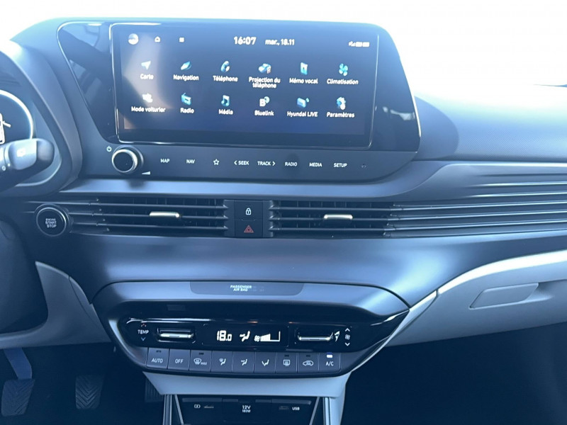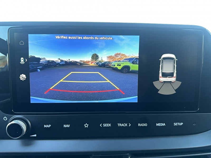 2 HP + 2 tweeters (AV) / 2 HP AR / Accès mains-libres et démarrage sans clé / Airbags frontaux conducteur et passager (déconnectable côté passager) / Calandre noir laqué / Chargeur sans fil pour smartphones compatibles / Climatisation automatique avec désembuage automatique / Compteurs digitaux 10,25" / Console de rangement sous accoudoir AV / Contrôle de trajectoire électronique (ESP & VSM) / Détection de fatigue du conducteur / eCall : appel d'urgence automatique aux services de secours avec géolocalisation du véhicule / Eclairage d'ambiance / Eclairage d'ambiance intérieur / Ecran couleur tactile 10.25" / Feux avant bi-LED avec éclairage additionnel en virage / Feux de route intelligents / Filet de coffre / Freinage d'urgence autonome avec détection des piétons / Intérieur bi-ton noir et gris clair / Jonc chromé (vitres) / Navigation Europe avec mise à jour de la cartographie / Plancher de coffre modulable / Poche aumônière dans le dossier du siège passager AV / Poignées de portes grain métal / Porte-gobelets AV / Réception radio numérique terrestre (DAB) / Rétroviseur intérieur jour/nuit automatique / Sécurité enfants sur portes AR / Services connectés BlueLink avec carte SIM incluse / Skis AV et AR noir laqué / Système audio RDS/RNT compatible MP3 avec connexion USB / Système ISOFIX aux places latérales AR / Verrouillage automatique des portes en roulant / Vitre électrique séquentielle côté conducteur / Volant et levier de vitesse gainés cuir