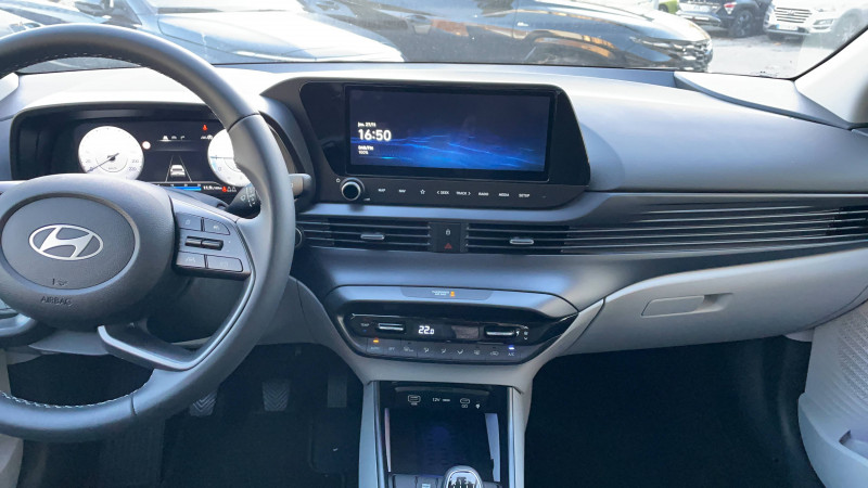 6 Airbags: frontaux conducteur et passager (déconnectable côté passager), latéraux AV, rideaux AV et AR / ABS avec EBD et ESP / Accès mains-libres et démarrage sans clé / Alerte de présence de passager AR / Assistance active au suivi de voie / Boîte de vitesses manuelle à 6 rapports / Calandre noir laqué / Chargeur sans fil pour téléphone compatible / Climatisation automatique avec capteur désembuage automatique / Compteurs numériques 10,25" / Console de rangement sous accoudoir AV / Contrôle de trajectoire électronique (ESP & VSM) / Détection de fatigue du conducteur / eCall : appel d'urgence automatique aux services de secours avec géolocalisation du véhicule / Eclairage d'ambiance personnalisable à LED / Eclairage d'habitacle à LED / Ecran couleur tactile 10.25" / Feux AV bi-LED avec éclairage additionnel en virage / Feux de route intelligents / Filet de coffre / Freinage d'urgence autonome avec reconnaissance piétons / Intérieur bi-ton noir et gris clair / Jonc de vitres chromé / Peinture Mangrove Green / Plancher de coffre modulable / Poche aumônière dans le dossier du siège passager AV / Poignées de portes grain métal / Porte-gobelet AV / Port USB-C de recharge à l'AR / Port USB-C de recharge à l'AV / Rétroviseurs intérieur jour/nuit automatique / Sécurité enfants sur portes AR / Services connectés BlueLink avec carte SIM incluse: Transmission de destination au système de navigation à distance - Géolocalisation du véhicule - Historique des trajets - Statut du véhicule (portes, moteur, ventilation) - Diagnostic Services Bluelink PRO offerts pendant 6 mois et services Bluelink LITE offerts pendant 10 ans après la date de mise en circulation du véhicule. Les fonctionnalités à distance s'effectuent via l'application depuis un téléphone compatible, hors frais de connexion. / Skis AV et AR noir laqué / Système anti-patinage (TCS) / Système audio RDS/DAB compatible MP3 avec connexion USB-A, 6 HP / Système de navigation Europe avec programme de mise à jour à distance et services Hyundai Live: information trafic, carburants, emplacements de stationnement, météo, points d'intérêt et zones de danger. Mises à jour à distance incluses pendant 3 ans. / Système ISOFIX aux places latérales AR / Verrouillage automatique des portes en roulant / Vitre électrique séquentielle côté conducteur / Volant et levier de vitesse gainés cuir