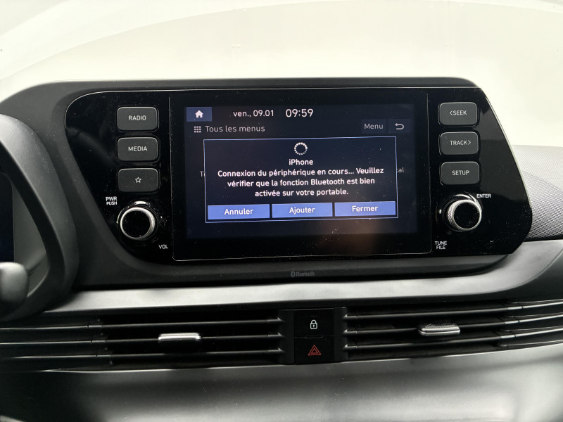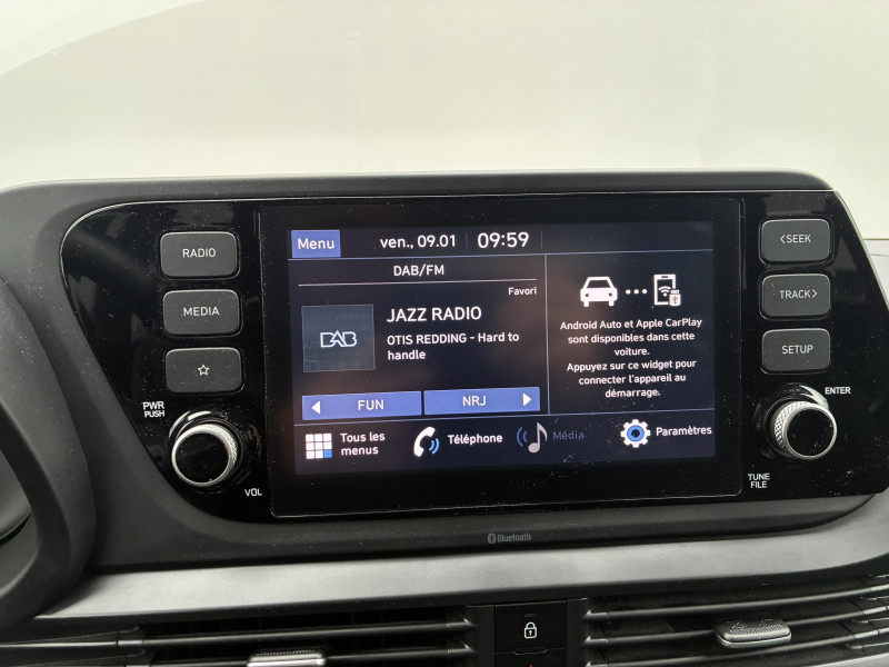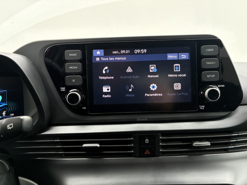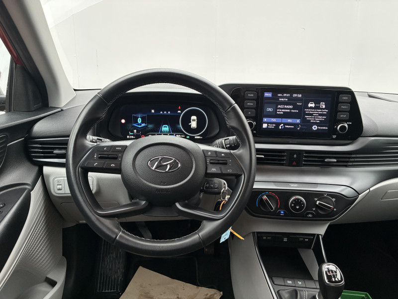 eCall : appel d'urgence automatique aux services de secours avec géolocalisation du véhicule / Navigation Europe avec mise à jour de la cartographie / Verrouillage automatique des portes en roulant / Volant et levier de vitesse gainés cuir / 2 HP + 2 tweeters (AV) / 2 HP AR / Airbags frontaux conducteur et passager (déconnectable côté passager) / Calandre noir laqué / Compteurs digitaux 10.25" / Console de rangement sous accoudoir AV / Contrôle de trajectoire électronique (ESP & VSM) / Détection de fatigue du conducteur / Eclairage d'ambiance intérieur / Ecran couleur tactile 10.25" / Enjoliveurs 15" / Feux de route intelligents / Freinage d'urgence autonome avec détection des piétons / Intérieur bi-ton noir et gris clair / Plancher de coffre modulable / Poche aumônière dans le dossier du siège passager AV / Poignées de portes grain métal / Porte-gobelets AV / Réception radio numérique terrestre (DAB) / Services connectés BlueLink avec carte SIM incluse / Système audio RDS/RNT compatible MP3 avec connexion USB / Système ISOFIX aux places latérales AR / Sécurité enfants sur portes AR / Vitre électrique séquentielle côté conducteur