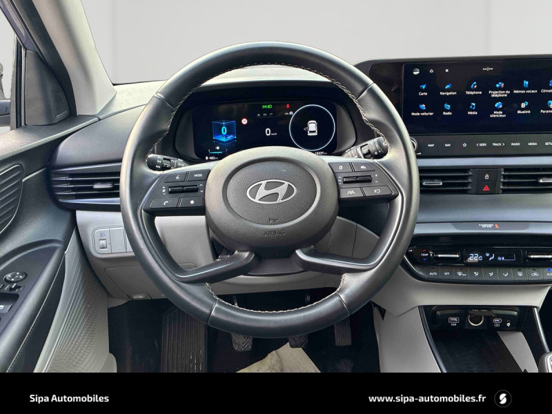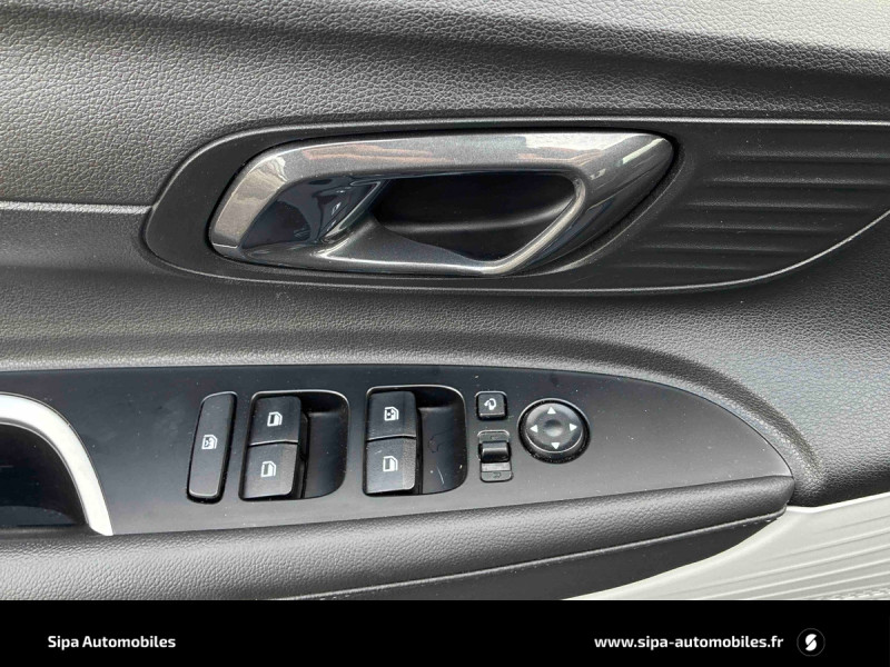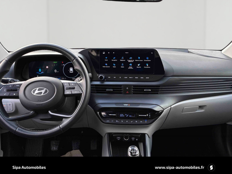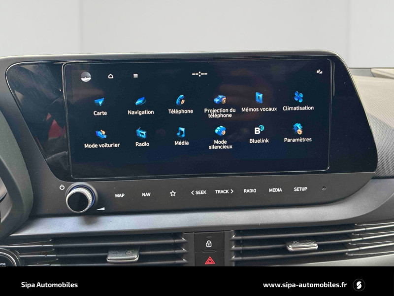 Climatisation automatique avec capteur désembuage automatique / eCall: appel d'urgence automatique aux services de secours avec géolocalisation du véhicule / Eclairage d'ambiance personnalisable à LED / Feux AV bi-LED avec éclairage additionnel en virage / Rétroviseurs intérieur jour/nuit automatique / Services connectés BlueLink avec carte SIM incluse Transmission de destination au système de navigation à distance - Géolocalisation du véhicule - Historique des trajets - Statut du véhicule (portes, moteur, ventilation) - Diagnostic. Services télématiques offerts pendant 3 ans. / Système de navigation Europe avec programme de mise à jour à distance et services Hyundai Live: information trafic, carburants, emplacements de stationnement, météo, points d'intérêt et zones de danger. Mises à jour à distance incluses pendant 3 ans. / Verrouillage automatique des portes en roulant / Volant et levier de vitesse gainés cuir / 2 HP + 2 tweeters (AV) / 2 HP AR / 6 Airbags: frontaux conducteur et passager (déconnectable côté passager), latéraux AV, rideaux AV et AR / Accès mains-libres et démarrage sans clé / Alerte de présence de passager AR / Assistance active au suivi de voie / Calandre noir laqué / Chargeur sans fil pour téléphone compatible / Compteurs numériques 10,25" / Console de rangement sous accoudoir AV / Contrôle de trajectoire électronique (ESP & VSM) / Détection de fatigue du conducteur / Ecran couleur tactile 10.25" / Feux de route intelligents / Freinage d'urgence autonome avec reconnaissance piétons / Intérieur bi-ton noir et gris clair / Jonc de vitres chromé / Kit de réparation anti-crevaison / Plancher de coffre modulable / Poche aumônière dans le dossier du siège passager AV / Poignées de portes grain métal / Port USB-C de recharge à l'AR / Port USB-C de recharge à l'AV / Porte-gobelet AV / Réception radio numérique terrestre (DAB) / Skis AV et AR noir laqué / Système audio RDS compatible MP3 avec connexion USB-A / Système ISOFIX aux places latérales AR / Sécurité enfants sur portes AR / Vitre électrique séquentielle côté conducteur