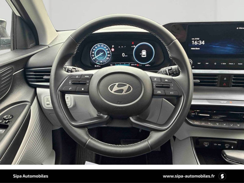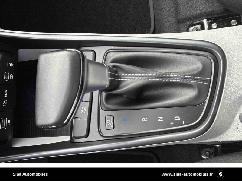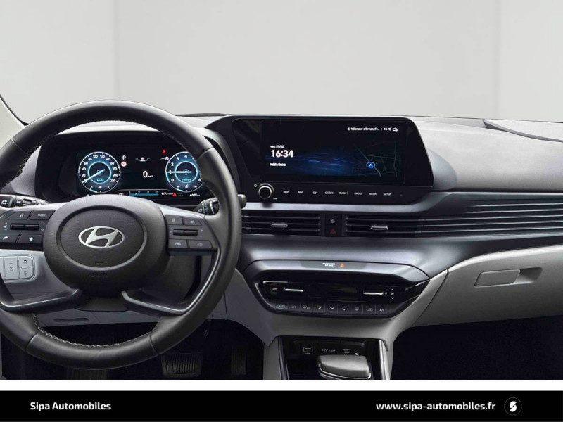 6 Airbags: frontaux conducteur et passager (déconnectable côté passager), latéraux AV, rideaux AV et AR / ABS avec EBD et ESP / Accès mains-libres et démarrage sans clé / Alerte de présence de passager AR / Assistance active au suivi de voie / Boîte automatique 7 rapports / Calandre noir laqué / Chargeur sans fil pour téléphone compatible / Climatisation automatique avec capteur désembuage automatique / Compteurs numériques 10,25" / Console de rangement sous accoudoir AV / Contrôle de trajectoire électronique (ESP & VSM) / Détection de fatigue du conducteur / eCall: appel d'urgence automatique aux services de secours avec géolocalisation du véhicule / Eclairage d'ambiance personnalisable à LED / Eclairage d'habitacle à LED / Ecran couleur tactile 10.25" / Feux AV bi-LED avec éclairage additionnel en virage / Feux de route intelligents / Filet de coffre / Freinage d'urgence autonome avec reconnaissance piétons / Intérieur bi-ton noir et gris clair / Jonc de vitres chromé / Peinture Mangrove Green / Plancher de coffre modulable / Poche aumônière dans le dossier du siège passager AV / Poignées de portes grain métal / Porte-gobelet AV / Port USB-C de recharge à l'AR / Port USB-C de recharge à l'AV / Rétroviseurs intérieur jour/nuit automatique / Sécurité enfants sur portes AR / Services connectés BlueLink avec carte SIM incluse: Transmission de destination au système de navigation à distance - Géolocalisation du véhicule - Historique des trajets - Statut du véhicule (portes, moteur, ventilation) - Diagnostic Services Bluelink PRO offerts pendant 6 mois et services Bluelink LITE offerts pendant 10 ans après la date de mise en circulation du véhicule. Les fonctionnalités à distance s'effectuent via l'application depuis un téléphone compatible, hors frais de connexion. / Skis AV et AR noir laqué / Système anti-patinage (TCS) / Système audio RDS/DAB compatible MP3 avec connexion USB-A, 6 HP / Système de navigation Europe avec programme de mise à jour à distance et services Hyundai Live: information trafic, carburants, emplacements de stationnement, météo, points d'intérêt et zones de danger. Mises à jour à distance incluses pendant 3 ans. / Système ISOFIX aux places latérales AR / Verrouillage automatique des portes en roulant / Vitre électrique séquentielle côté conducteur / Volant et levier de vitesse gainés cuir