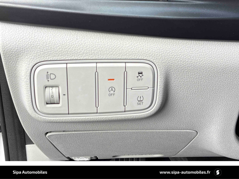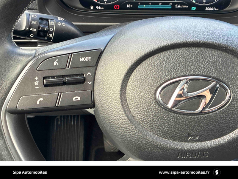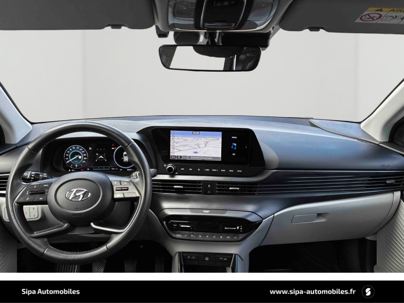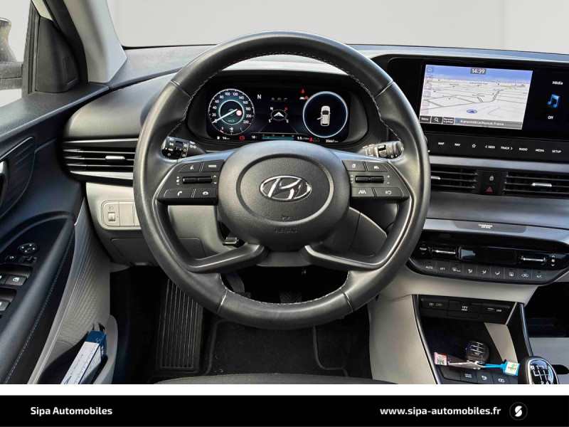 Climatisation automatique avec capteur désembuage automatique / eCall: appel d'urgence automatique aux services de secours avec géolocalisation du véhicule / Eclairage d'ambiance personnalisable à LED / Feux AV bi-LED avec éclairage additionnel en virage / Rétroviseurs intérieur jour/nuit automatique / Services connectés BlueLink avec carte SIM incluse Transmission de destination au système de navigation à distance - Géolocalisation du véhicule - Historique des trajets - Statut du véhicule (portes, moteur, ventilation) - Diagnostic. Services télématiques offerts pendant 3 ans. / Système de navigation Europe avec programme de mise à jour à distance et services Hyundai Live: information trafic, carburants, emplacements de stationnement, météo, points d'intérêt et zones de danger. Mises à jour à distance incluses pendant 3 ans. / Verrouillage automatique des portes en roulant / Volant et levier de vitesse gainés cuir / 2 HP + 2 tweeters (AV) / 2 HP AR / 6 Airbags: frontaux conducteur et passager (déconnectable côté passager), latéraux AV, rideaux AV et AR / Accès mains-libres et démarrage sans clé / Alerte de présence de passager AR / Assistance active au suivi de voie / Calandre noir laqué / Chargeur sans fil pour téléphone compatible / Compteurs numériques 10,25" / Console de rangement sous accoudoir AV / Contrôle de trajectoire électronique (ESP & VSM) / Détection de fatigue du conducteur / Ecran couleur tactile 10.25" / Feux de route intelligents / Freinage d'urgence autonome avec reconnaissance piétons / Intérieur bi-ton noir et gris clair / Jonc de vitres chromé / Kit de réparation anti-crevaison / Plancher de coffre modulable / Poche aumônière dans le dossier du siège passager AV / Poignées de portes grain métal / Port USB-C de recharge à l'AR / Port USB-C de recharge à l'AV / Porte-gobelet AV / Réception radio numérique terrestre (DAB) / Skis AV et AR noir laqué / Système audio RDS compatible MP3 avec connexion USB-A / Système ISOFIX aux places latérales AR / Sécurité enfants sur portes AR / Vitre électrique séquentielle côté conducteur