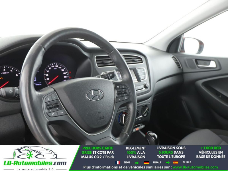 Référence : 1191896 Vos Avantages chez LB-AUTOMOBILES.com / Prix affiché TTC Livré hors carte grise / Livraison sous 10 jours dans toute la France hors 31 / Pas d?avance de frais paiement du véhicule 100% à la livraison par virement. Hyundai I20 Neuf remisée, Hyundai I20 Occasion Toulouse Beaupuy 31850, Hyundai I20 Véhicule sorti de réseau collaborateur, Hyundai I20 import, Hyundai I20 importateur, Hyundai I20 Livraison possible dans toute la France sous 5 jours, Hyundai I20, Hyundai I20 Location Option Achat, Hyundai I20 LLD, Hyundai I20 Longue Durée, Hyundai I20 TVA récupérable. Possibilité d'extension de garantie 12, 24,36 mois, Pour tout autres voitures import neufs ou occasions collaborateur fortement remisée, Mandataire Audi, Mandataire BMW, Mandataire Volkswagen, Mandataire Mercedes, Mandataire Peugeot Espagne, Mandataire Renault Espagne, Porsche import, Mandataire Citroën Espagne, Mandataire Seat Espagne, n'hésitez pas à nous contacter. « Sous réserve de vente préalable et erreur de saisie » Principaux équipements : - ABS - Antidémarrage - Assistance de démarrage en côte - Avertisseur de franchissement de ligne - Bluetooth - Capteur de lumière - Carnet d'entretien - Contrôle de la pression des pneus - Direction assistée - ESP - Fermeture centralisée - Feux de jour LED - Garantie - Isofix - Jantes alliage - Kit de réparation d'urgence des pneus - Kit mains libres - Ordinateur de bord - Phare antibrouillard - Pneus été - Point Isofix siège passager - Port USB - Régulateur de vitesse - Rétroviseur extérieur électrique - Révision complète - Sièges chauffants - Système antipatinage - Système d'alarme - Système de limitation de la vitesse - Système Stop & Start - Traction avant - Tuner/radio - Véhicule non-fumeur - Verrouillage centralisé sans clé - Vitres électriques - Volant chauffant - Volant en cuir - Volant multifonction