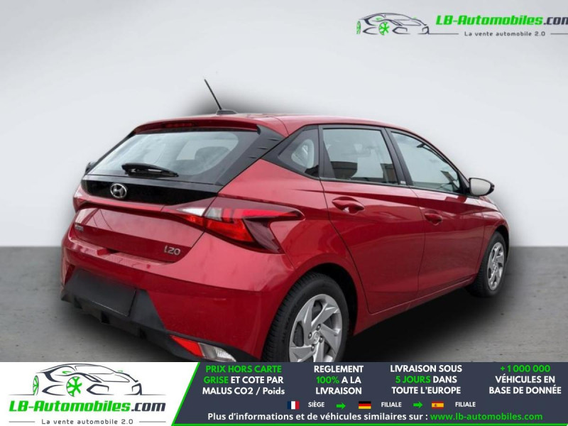 Référence : 1206134 Vos Avantages chez LB-AUTOMOBILES.com / Prix affiché TTC Livré hors carte grise / Livraison sous 10 jours dans toute la France hors 31 / Pas d?avance de frais paiement du véhicule 100% à la livraison par virement. Hyundai I20 Neuf remisée, Hyundai I20 Occasion Toulouse Beaupuy 31850, Hyundai I20 Véhicule sorti de réseau collaborateur, Hyundai I20 import, Hyundai I20 importateur, Hyundai I20 Livraison possible dans toute la France sous 5 jours, Hyundai I20, Hyundai I20 Location Option Achat, Hyundai I20 LLD, Hyundai I20 Longue Durée, Hyundai I20 TVA récupérable. Possibilité d'extension de garantie 12, 24,36 mois, Pour tout autres voitures import neufs ou occasions collaborateur fortement remisée, Mandataire Audi, Mandataire BMW, Mandataire Volkswagen, Mandataire Mercedes, Mandataire Peugeot Espagne, Mandataire Renault Espagne, Porsche import, Mandataire Citroën Espagne, Mandataire Seat Espagne, n'hésitez pas à nous contacter. « Sous réserve de vente préalable et erreur de saisie » Principaux équipements : - ABS - Antidémarrage - Assistance au freinage d'urgence - Assistance de démarrage en côte - Avertisseur de franchissement de ligne - Bluetooth - Capteur de lumière - Carnet d'entretien - Contrôle de la pression des pneus - Direction assistée - ESP - Fermeture centralisée - Feux de jour LED - Garantie - Isofix - Jantes en acier - Kit de réparation d'urgence des pneus - Kit mains libres - Ordinateur de bord - Package hiver - Pneus toutes saisons - Port USB - Radio DAB - Régulateur de vitesse - Rétroviseur extérieur électrique - Révision complète - Sièges chauffants - Système d'alarme - Système d'avertissement de la distance - Système de détection de la fatigue - Système de limitation de la vitesse - Système Stop & Start - Traction avant - Tuner/radio - Véhicule non-fumeur - Vitres électriques - Vitres teintées - Volant en cuir - Volant multifonction