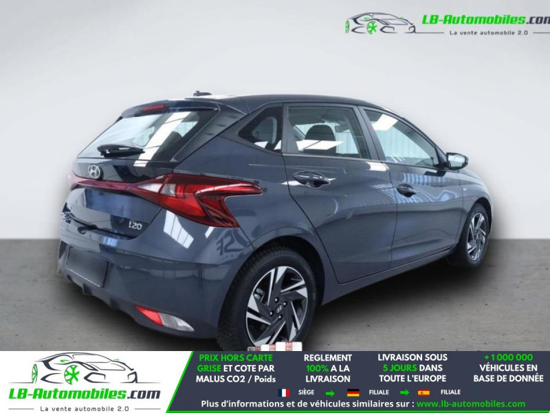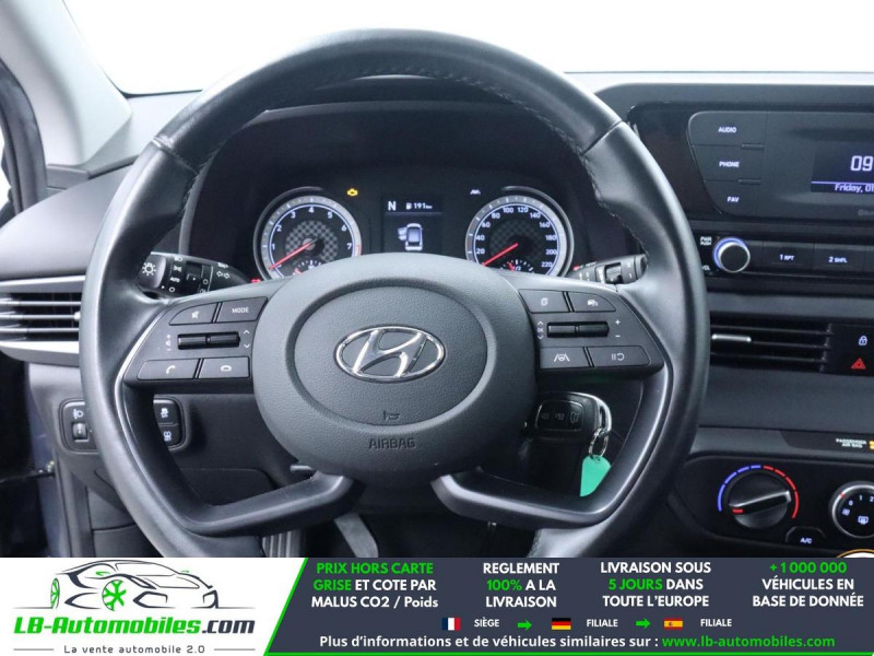 Référence : 1191922 Vos Avantages chez LB-AUTOMOBILES.com / Prix affiché TTC Livré hors carte grise / Livraison sous 10 jours dans toute la France hors 31 / Pas d?avance de frais paiement du véhicule 100% à la livraison par virement. Hyundai I20 Neuf remisée, Hyundai I20 Occasion Toulouse Beaupuy 31850, Hyundai I20 Véhicule sorti de réseau collaborateur, Hyundai I20 import, Hyundai I20 importateur, Hyundai I20 Livraison possible dans toute la France sous 5 jours, Hyundai I20, Hyundai I20 Location Option Achat, Hyundai I20 LLD, Hyundai I20 Longue Durée, Hyundai I20 TVA récupérable. Possibilité d'extension de garantie 12, 24,36 mois, Pour tout autres voitures import neufs ou occasions collaborateur fortement remisée, Mandataire Audi, Mandataire BMW, Mandataire Volkswagen, Mandataire Mercedes, Mandataire Peugeot Espagne, Mandataire Renault Espagne, Porsche import, Mandataire Citroën Espagne, Mandataire Seat Espagne, n'hésitez pas à nous contacter. « Sous réserve de vente préalable et erreur de saisie » Principaux équipements : - ABS - Antidémarrage - Assistance au freinage d'urgence - Assistance de démarrage en côte - Assistant feux de route - Avertisseur de franchissement de ligne - Bluetooth - Capteur de lumière - Carnet d'entretien - Contrôle de la pression des pneus - Direction assistée - ESP - Fermeture centralisée - Feux de jour - Isofix - Jantes alliage - Kit de réparation d'urgence des pneus - Kit mains libres - Ordinateur de bord - Pneus toutes saisons - Port USB - Radio DAB - Régulateur de vitesse - Rétroviseur extérieur électrique - Système antipatinage - Système d'alarme - Système d'appel d'urgence - Système de détection de la fatigue - Système de limitation de la vitesse - Système de reconnaissance des panneaux de signalisation - Système de sonorisation - Système Stop & Start - Traction avant - Tuner/radio - Véhicule non-fumeur - Vitres électriques - Volant en cuir - Volant multifonction