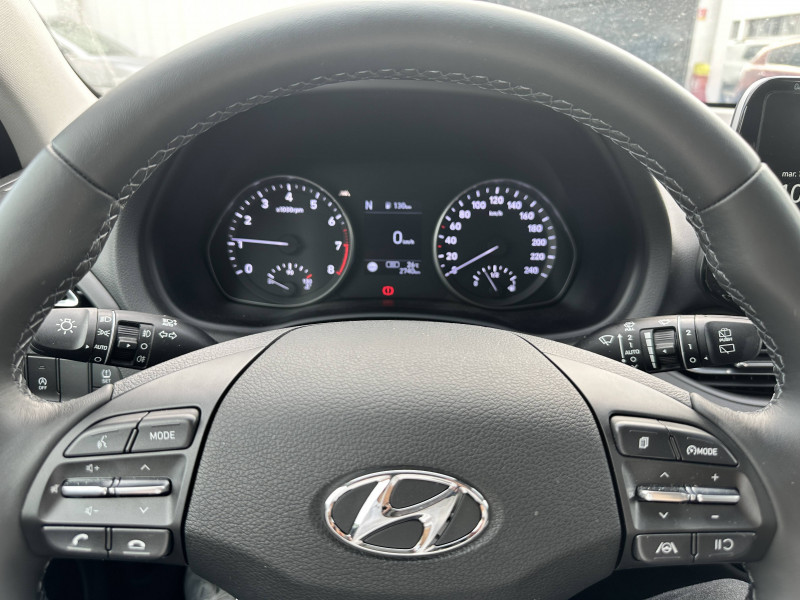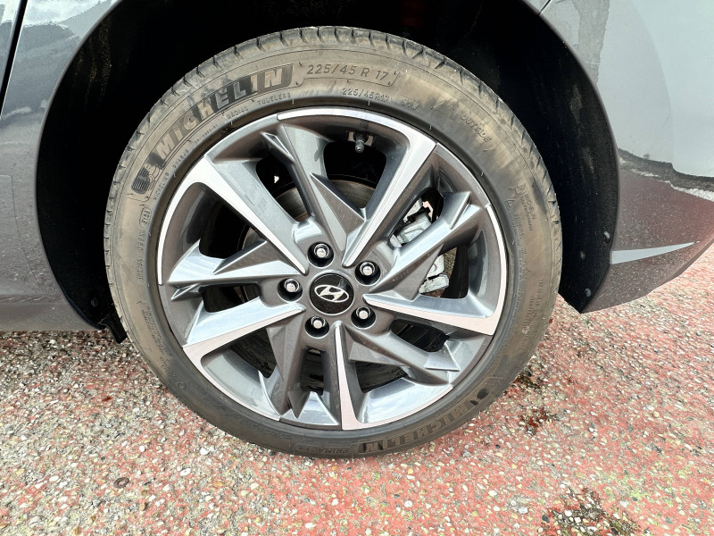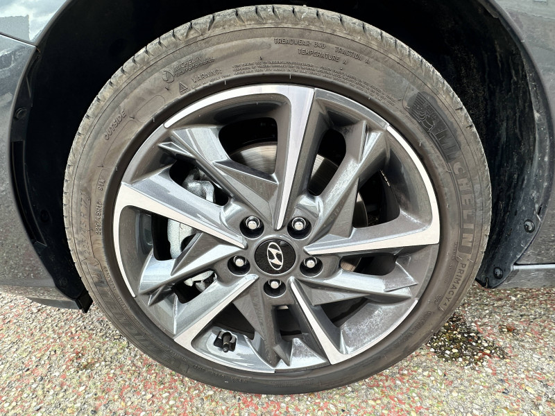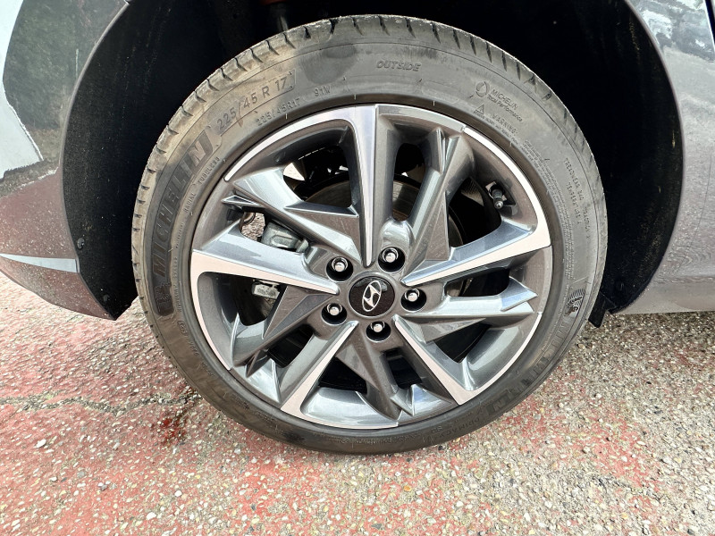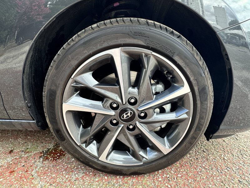 Clignotants AV à LED / Rétroviseur intérieur jour/nuit automatique / Système de navigation Europe avec programme de mise à jour de la cartographie et services Hyundai live / Verrouillage automatique des portes en roulant / Volant et pommeau de levier de vitesses gainés de cuir / Accoudoir AV coulissant / Alarme périmétrique / Antenne de toit type requin / Calandre finition chromée / Caméra de recul avec lignes de guidage dynamiques / Console centrale avec bac de rangement sous l'accoudoir AV / Contrôle de trajectoire électronique ESP / Direction assistée électrique asservie à la vitesse / Drive Mode / Détection de fatigue du conducteur / Eclairage additionnel en virage / Eclairage d'accueil dans les poignées AV et sous les rétroviseurs extérieurs / Entourage de vitres chromé / Feux de route intelligents / Frein de parking électrique avec fonction auto-hold / Freinage d'urgence autonome avec reconnaissance piétons / Ordinateur de bord monochrome 3.5" multifonction / Poches aumonières au dos des sièges AV / Poignées de portes intérieures satinées / Porte-gobelets AV/AR / Prises 12V AV et coffre / Range-lunettes / Réception radio numérique terrestre (DAB) / Rétroviseurs extérieurs ton carrosserie / Rétroviseurs électriques dégivrants, rabattables électriquement avec clignotants intégrés / Services connectés BlueLink avec carte SIM incluse / Siège conducteur avec support lombaire électrique / Spoiler AR noir laqué / Système audio RDS, MP3, 4 HPs, 2 tweeters / Système d'accès mains-libres et démarrage sans clé / Système ISOFIX pour siège enfant aux places latérales AR / Système multimédia avec écran couleur tactile 10.25" et reconnaissance vocale en ligne / Vide-poches dans portes AV/AR
