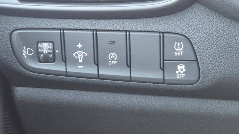 Clignotants AV à LED / Rétroviseur intérieur jour/nuit automatique / Système de navigation Europe avec programme de mise à jour de la cartographie / Verrouillage automatique des portes en roulant / Volant et pommeau de levier de vitesses gainés de cuir / Accoudoir AV coulissant / Alarme périmétrique / Antenne de toit type requin / Calandre finition chromée / Caméra de recul avec lignes de guidage dynamiques / Console centrale avec bac de rangement sous l'accoudoir AV / Contrôle de trajectoire électronique ESP / Direction assistée électrique asservie à la vitesse / Drive Mode / Détection de fatigue du conducteur / Eclairage additionnel en virage / Eclairage d'accueil dans les poignées AV et sous les rétroviseurs extérieurs / Entourage de vitres chromé / Feux de route intelligents / Frein de parking électrique avec fonction auto-hold / Freinage d'urgence autonome avec reconnaissance piétons / Ordinateur de bord monochrome 3.5" multifonction / Poches aumonières au dos des sièges AV / Poignées de portes intérieures satinées / Porte-gobelets AV/AR / Prises 12V AV et coffre / Range-lunettes / Réception radio numérique terrestre (DAB) / Rétroviseurs extérieurs ton carrosserie / Rétroviseurs électriques dégivrants, rabattables électriquement avec clignotants intégrés / Services connectés BlueLink avec carte SIM incluse / Siège conducteur avec support lombaire électrique / Spoiler AR noir laqué / Système audio RDS, MP3, 4 HPs, 2 tweeters / Système d'accès mains-libres et démarrage sans clé / Système ISOFIX pour siège enfant aux places latérales AR / Système multimédia avec écran couleur tactile 10,25" et reconnaissance vocale en ligne / Vide-poches dans portes AV/AR