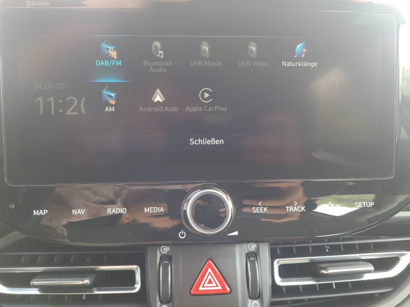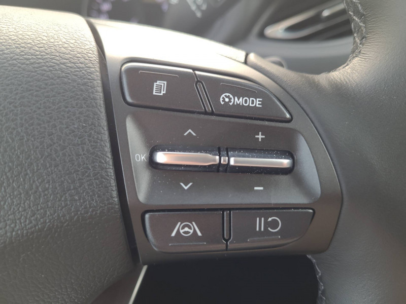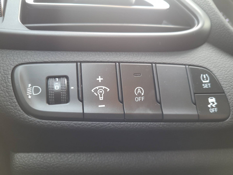 Accoudoir AV coulissant / Alarme périmétrique / Antenne de toit type requin / Calandre finition chromée / Caméra de recul avec lignes de guidage dynamiques / Clignotants AV à LED / Console centrale avec bac de rangement sous l'accoudoir AV / Contrôle de trajectoire électronique ESP / Détection de fatigue du conducteur / Direction assistée électrique asservie à la vitesse / Drive Mode / Eclairage additionnel en virage / Eclairage d'accueil dans les poignées AV et sous les rétroviseurs extérieurs / Entourage de vitres chromé / Feux de route intelligents / Freinage d'urgence autonome avec reconnaissance piétons / Frein de parking électrique avec fonction auto-hold / Ordinateur de bord monochrome 3.5" multifonction / Peinture Engine Red / Poches aumonières au dos des sièges AV / Poignées de portes intérieures satinées / Porte-gobelets AV/AR / Prises 12V AV et coffre / Range-lunettes / Réception radio numérique terrestre (DAB) / Rétroviseur intérieur jour/nuit automatique / Rétroviseurs électriques dégivrants, rabattables électriquement avec clignotants intégrés / Rétroviseurs extérieurs ton carrosserie / Services connectés BlueLink avec carte SIM incluse / Siège conducteur avec support lombaire électrique / Spoiler AR noir laqué / Système audio RDS, MP3, 4 HPs, 2 tweeters / Système d'accès mains-libres et démarrage sans clé / Système de navigation Europe avec programme de mise à jour de la cartographie / Système ISOFIX pour siège enfant aux places latérales AR / Système multimédia avec écran couleur tactile 10.25" et reconnaissance vocale en ligne / Verrouillage automatique des portes en roulant / Vide-poches dans portes AV/AR / Volant et pommeau de levier de vitesses gainés de cuir