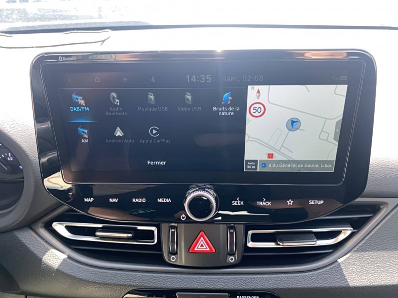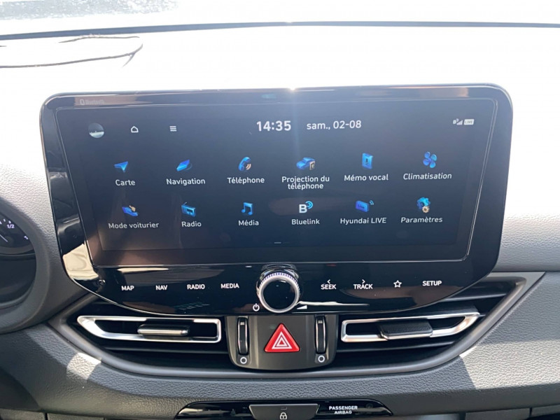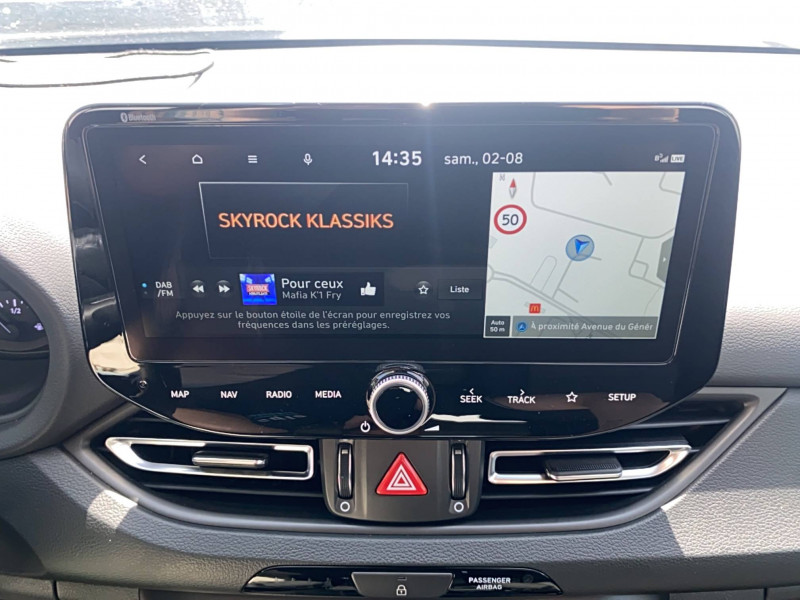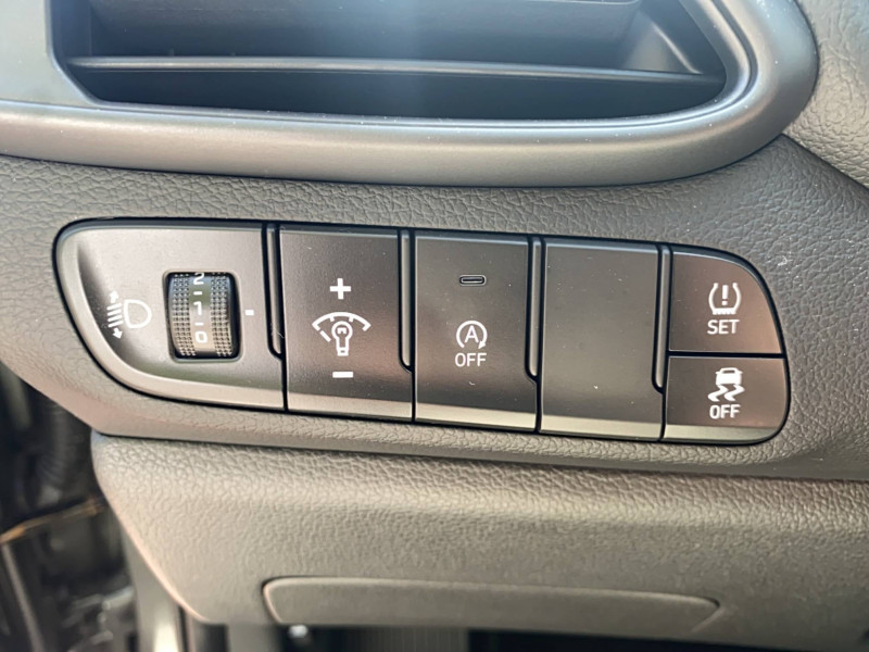 Accoudoir AV coulissant / Alarme périmétrique / Antenne de toit type requin / Calandre finition chromée / Caméra de recul avec lignes de guidage dynamiques / Clignotants AV à LED / Console centrale avec bac de rangement sous l'accoudoir AV / Contrôle de trajectoire électronique ESP / Détection de fatigue du conducteur / Direction assistée électrique asservie à la vitesse / Drive Mode / Eclairage additionnel en virage / Eclairage d'accueil dans les poignées AV et sous les rétroviseurs extérieurs / Entourage de vitres chromé / Feux de route intelligents / Freinage d'urgence autonome avec reconnaissance piétons / Frein de parking électrique avec fonction auto-hold / Ordinateur de bord monochrome 3.5" multifonction / Peinture Engine Red / Poches aumonières au dos des sièges AV / Poignées de portes intérieures satinées / Porte-gobelets AV/AR / Prises 12V AV et coffre / Range-lunettes / Réception radio numérique terrestre (DAB) / Rétroviseur intérieur jour/nuit automatique / Rétroviseurs électriques dégivrants, rabattables électriquement avec clignotants intégrés / Rétroviseurs extérieurs ton carrosserie / Services connectés BlueLink avec carte SIM incluse / Siège conducteur avec support lombaire électrique / Spoiler AR noir laqué / Système audio RDS, MP3, 4 HPs, 2 tweeters / Système d'accès mains-libres et démarrage sans clé / Système de navigation Europe avec programme de mise à jour de la cartographie / Système ISOFIX pour siège enfant aux places latérales AR / Système multimédia avec écran couleur tactile 10.25" et reconnaissance vocale en ligne / Verrouillage automatique des portes en roulant / Vide-poches dans portes AV/AR / Volant et pommeau de levier de vitesses gainés de cuir