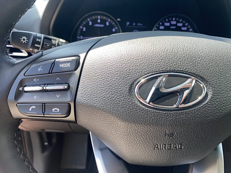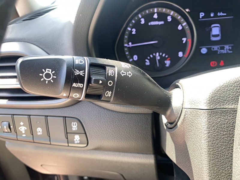 Accoudoir AV coulissant / Alarme périmétrique / Antenne de toit type requin / Calandre finition chromée / Caméra de recul avec lignes de guidage dynamiques / Clignotants AV à LED / Console centrale avec bac de rangement sous l'accoudoir AV / Contrôle de trajectoire électronique ESP / Détection de fatigue du conducteur / Direction assistée électrique asservie à la vitesse / Drive Mode / Eclairage additionnel en virage / Eclairage d'accueil dans les poignées AV et sous les rétroviseurs extérieurs / Entourage de vitres chromé / Feux de route intelligents / Freinage d'urgence autonome avec reconnaissance piétons / Frein de parking électrique avec fonction auto-hold / Ordinateur de bord monochrome 3.5" multifonction / Peinture Engine Red / Poches aumonières au dos des sièges AV / Poignées de portes intérieures satinées / Porte-gobelets AV/AR / Prises 12V AV et coffre / Range-lunettes / Réception radio numérique terrestre (DAB) / Rétroviseur intérieur jour/nuit automatique / Rétroviseurs électriques dégivrants, rabattables électriquement avec clignotants intégrés / Rétroviseurs extérieurs ton carrosserie / Services connectés BlueLink avec carte SIM incluse / Siège conducteur avec support lombaire électrique / Spoiler AR noir laqué / Système audio RDS, MP3, 4 HPs, 2 tweeters / Système d'accès mains-libres et démarrage sans clé / Système de navigation Europe avec programme de mise à jour de la cartographie / Système ISOFIX pour siège enfant aux places latérales AR / Système multimédia avec écran couleur tactile 10.25" et reconnaissance vocale en ligne / Verrouillage automatique des portes en roulant / Vide-poches dans portes AV/AR / Volant et pommeau de levier de vitesses gainés de cuir