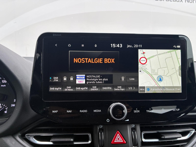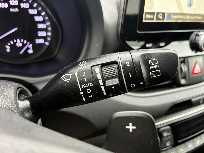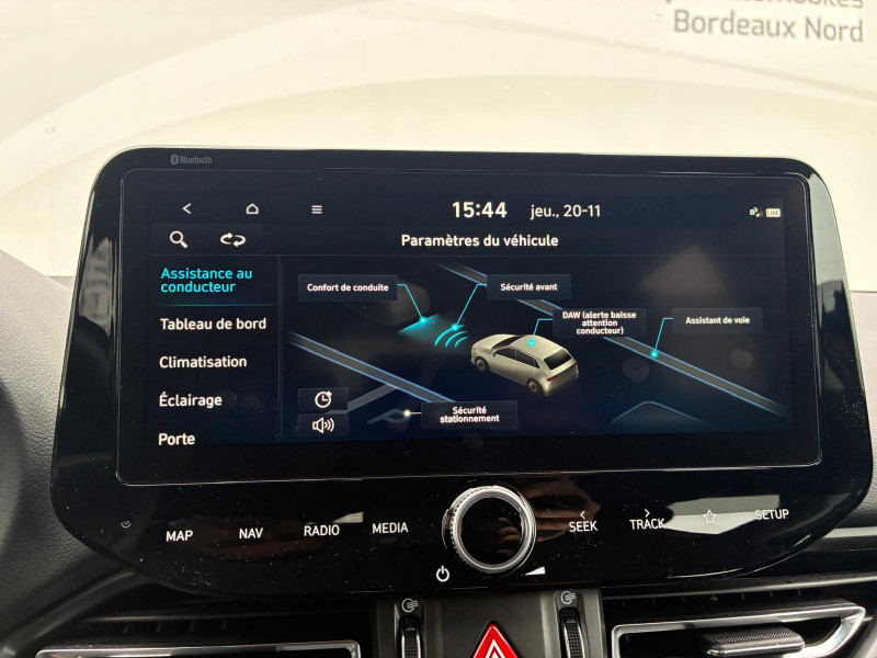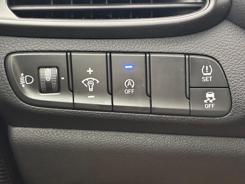 Clignotants AV à LED / Rétroviseur intérieur jour/nuit automatique / Système de navigation Europe avec programme de mise à jour de la cartographie / Verrouillage automatique des portes en roulant / Volant et pommeau de levier de vitesses gainés de cuir / Accoudoir AV coulissant / Alarme périmétrique / Antenne de toit type requin / Calandre finition chromée / Caméra de recul avec lignes de guidage dynamiques / Console centrale avec bac de rangement sous l'accoudoir AV / Contrôle de trajectoire électronique ESP / Direction assistée électrique asservie à la vitesse / Drive Mode / Détection de fatigue du conducteur / Eclairage additionnel en virage / Eclairage d'accueil dans les poignées AV et sous les rétroviseurs extérieurs / Entourage de vitres chromé / Feux de route intelligents / Frein de parking électrique avec fonction auto-hold / Freinage d'urgence autonome avec reconnaissance piétons / Ordinateur de bord monochrome 3.5" multifonction / Poches aumonières au dos des sièges AV / Poignées de portes intérieures satinées / Porte-gobelets AV/AR / Prises 12V AV et coffre / Range-lunettes / Réception radio numérique terrestre (DAB) / Rétroviseurs extérieurs ton carrosserie / Rétroviseurs électriques dégivrants, rabattables électriquement avec clignotants intégrés / Services connectés BlueLink avec carte SIM incluse / Siège conducteur avec support lombaire électrique / Spoiler AR noir laqué / Système audio RDS, MP3, 4 HPs, 2 tweeters / Système d'accès mains-libres et démarrage sans clé / Système ISOFIX pour siège enfant aux places latérales AR / Système multimédia avec écran couleur tactile 10,25" et reconnaissance vocale en ligne / Vide-poches dans portes AV/AR
