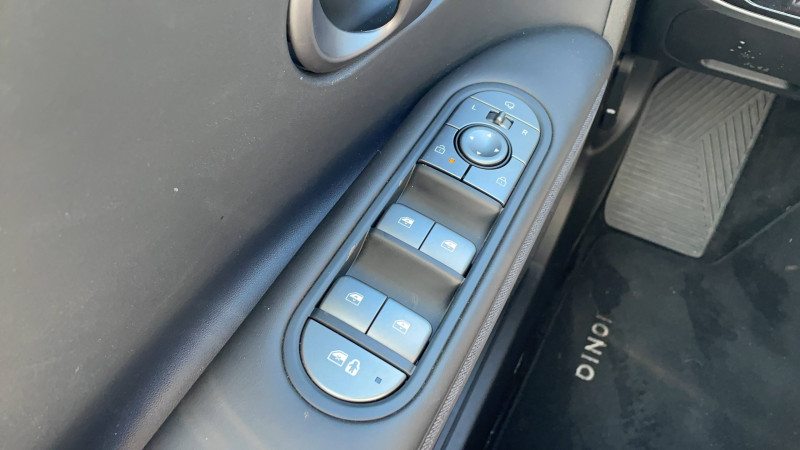 ABS, EBD et AFU / Accoudoirs AV/AR / Alarme périmétrique / Alerte de circulation transversale à l'AR avec fonction freinage / Alerte de présence de passager AR avec capteur ultrason / Assistance active à la conduite sur autoroute avec fonction changement de voie / Assistance active au maintien et au suivi de voie / Assistance à la sortie du véhicule / Câble de recharge pour prise domestique / Calandre rétroéclairée / Caméra de recul avec lignes de guidage dynamiques / Chargeur embarqué tri-phasé 11 kW / Chargeur sans fil pour téléphone compatible / Compteurs numériques 12.3" / Console centrale avec bac de rangement sous l'accoudoir AV / Détection de fatigue du conducteur / Direction assistée électrique asservie à la vitesse / Drive Mode (Eco, Normal, Sport et Neige) / eCall : appel d'urgence automatique aux services de secours avec géolocalisation du véhicule / Feux de jour et de position AV à LED type "Pixel" / Feux de route intelligents / Feux Matrix LED intelligents / Filet de coffre / Freinage d'urgence autonome avec reconnaissance piéton, cycliste et fonction croisement / Freinage régénératif intelligent / Hayon mains-libres intelligent / Kit de réparation / Ouïes de ventilation AR / Palettes de freinage régénératif modulable au volant (avec fonction i-Pedal) / Pare-soleil intégrés dans les portes AR / Poignées de portes extérieures rétractables affleurantes automatiques / Porte-gobelets AV/AR / Prise Combo Type 2 - 350 kW / Prise Type 2 - 11 kW / Programmation de la recharge et de la ventilation / Protections AV et AR, ligne de bas de caisse et passages de roue noirs / Rétroviseurs électriques dégivrants, rabattables électriquement avec clignotants intégrés / Rétroviseurs intérieur jour/nuit automatique / Revêtement de tableau de bord et contre-portes en similicuir avec surpiqûres / Sellerie cuir (dossier et assise) / Services connectés BlueLink avec mises à jour à distance (OTA) / Siège conducteur avec support lombaire électrique / Siège passager avec support lombaire électrique / Sièges AR avec dossier inclinable / Surveillance des angles morts avec assistance active au changement de voie / Système audio RDS, MP3, 4 HPs, 2 tweeters / Système d'accès mains-libres et démarrage sans clé / Système de chauffage par pompe à chaleur / Système de navigation Europe avec programme de mise à jour de la cartographie / Système de préconditionnement de la batterie / Système ISOFIX pour siège enfant aux places latérales AR / Système multimédia avec écran couleur tactile 12,3" avec reconnaissance vocale en ligne / Verrouillage automatique des portes en roulant / Vitres AV/AR avec film acoustique / Volant chauffant
