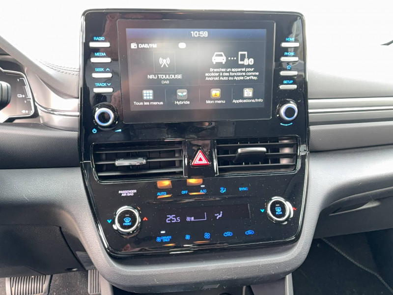 Alarme périmétrique / Antenne de toit type requin en effet verre / Cache-bagages à enrouleur / Caméra de recul avec lignes de guidage dynamiques / Capteur de désembuage automatique / Chargeur sans fil pour téléphone compatible / Console centrale avec bac de rangement sous l'accoudoir AV / Contrôle de trajectoire électronique ESP / Détection de fatigue du conducteur / eCall : appel d'urgence automatique aux services de secours avec géolocalisation du véhicule / Feux de route intelligents / Freinage d'urgence autonome avec détection des piétons et cycliste / Freinage régénératif intelligent (modulable via palettes au volant) / Frein de parking électrique avec fonction auto-hold / Moulures de bas de portes / Ordinateur de bord couleur 4.2" multifonction / Peinture solide Polar White / Poches aumonières au dos des sièges AV / Poignées de portes extérieures ton carroserie / Porte-gobelets AV/AR / Range-lunettes / Réception radio numérique terrestre (DAB) / Rétroviseurs extérieurs électriques et dégivrants avec répétiteur intégré / Services connectés BlueLink avec carte e-SIM incluse / Siège conducteur avec support lombaire électrique / Système audio Premium Infinity : 5 HP, 2 tweeters, subwoofer et amplificateur externe / Système de navigation Europe avec programme de mise à jour de la cartographie et services Hyundai Live / Système ISOFIX pour siège enfant aux places latérales AR / Système multimédia avec écran tactile 10.25", menu d'éco-conduite et reconnaissance vocale / Verrouillage automatique des portes en roulant / Vide-poches dans portes AV/AR / Vitres AV/AR électriques (séquentielles à l'AV) / Volant et pommeau de levier de vitesse en cuir