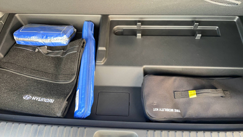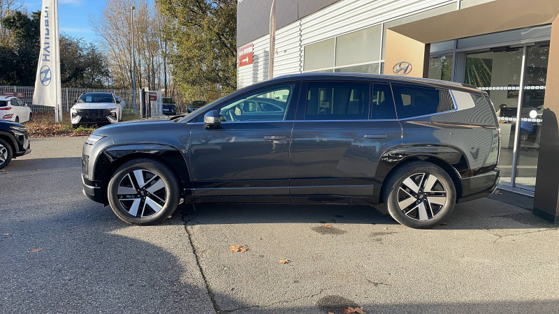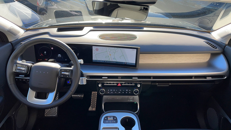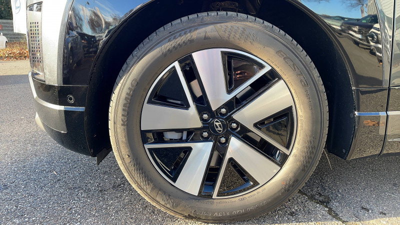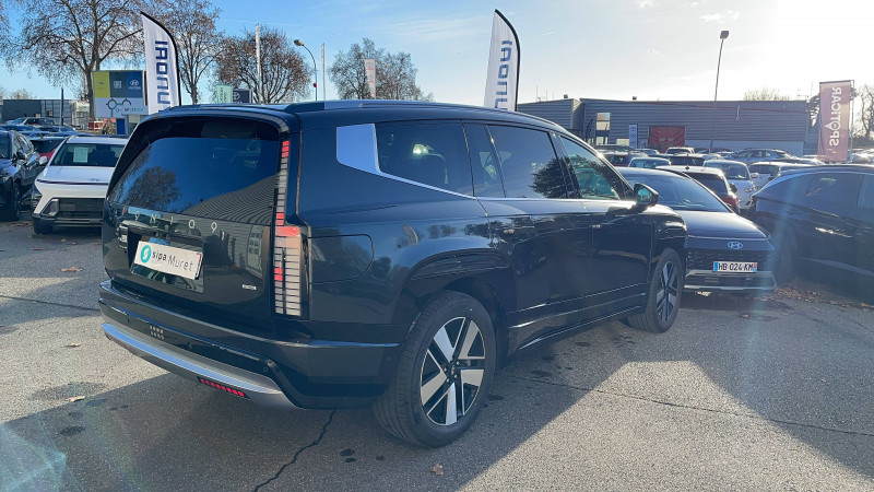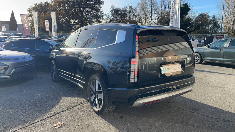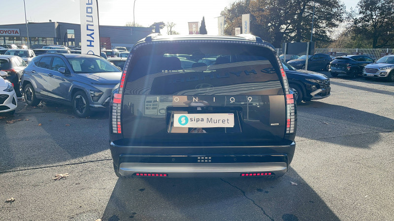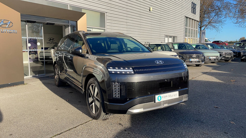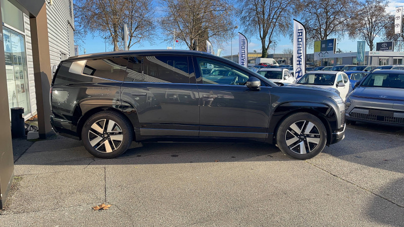 10 airbags : frontaux AV, latéraux, rideaux, central AV et genoux conducteur / Accoudoirs (central AV et portes) et contre-portes habillage simili-cuir / Affichage caméra des angles morts / Aide au stationnement AV avec fonction freinage / Alarme périmétrique / Alerte de circulation transversale AR avec fonction freinage / Alerte de présence de passager AR avec système de radar / Assistance active à la conduite sur autoroute (Niveau 2) avec fonction changement de voie / Assistance active au maintien et au suivi de voie / Assistance à la sortie du véhicule / Boîte automatique à fonction continue / Câble de recharge pour prise T2 / Caméra 360° avec lignes de guidage dynamiques et vue 3D / Chargeur inversé V2L avec prise domestique 230V dans le coffre / Chargeur inversé V2L extérieur avec adaptateur pour prise domestique 230V / Chargeur sans fil pour téléphone compatible / Clé Digitale 2.0 - accès et démarrage par smartphone / Climatisation automatique tri-zone avec ouïe de ventilation AR et désembuage automatique / Coffre AV à déverrouillage à distance / Compatibilité Apple CarPlay et Android Auto - connexion sans fil / Compatibilité avec les fonctionnalités à la demande (FOD) / Compatibilité avec les mises à jour sans fil à distance / Compteurs numériques 12,3" / Configuration 7 places / Console centrale avec bac de rangement à ouverture bi-directionnelle / Contrôle de traction électronique ETC / Contrôle de trajectoire électronique ESP / Contrôle de vitesse en descente / Détection de fatigue du conducteur / Dossiers AR (rang 2 / rang 3) rabattables à distance depuis le coffre / Drive Mode (Eco, Normal, Sport et Neige) / eCall : appel d'urgence automatique aux services de secours avec géolocalisation du véhicule / Eclairage d'ambiance intérieur à LED personnalisable / Entourage de vitres noir brillant et satin / Feux AV Matrix LED intelligents / Freinage d'urgence autonome avec reconnaissance piéton/cycliste et fonction intersection / Freinage régénératif intelligent, modulable au volant avec fonction i-Pedal / Frein de parking électrique avec fonction auto-hold / Hayon mains-libres intelligent / Hyundai AI Assistant : Assistant personnel à intelligence artificielle / Insert de tableau de bord aspect Bois / Insonorisation renforcée par technologie de réduction active du bruit / Pare-brise athermique avec film acoustique / Pare-chocs et bas de caisses avec finitions noir brillant et métal / Pare-soleils intégrés dans les portes AR / Passages de roues noir brillant avec inserts couleur carosserie / Poignées de portes extérieures rétractables automatiques / Porte-gobelets AV/AR (rang 1/ rang 2/ rang 3) / Prises USB-C 100W aux 3 rangs (via câble Hyundai fourni - jusqu'à 60W avec câble standard) / Prise Type 2 (AC - 11 kW) et Combo Type 2 (DC) / Programmation et gestion à distance de la recharge et de la ventilation / Protections de seuils de portes métal / Rails de toit couleur métal / Réception radio numérique terrestre (DAB) / Régulateur de vitesse adaptatif (jusqu'à l'arrêt) et limiteur de vitesse intelligent / Rétroviseur intérieur par caméra avec écran intégré / Rétroviseurs électriques dégivrants, rabattables électriquement avec répétiteur intégré / Rétroviseurs intérieur jour/nuit automatique / Services connectés BlueLink avec mises à jour à distance (OTA) / Siège conducteur à mémoire / Sièges AV et AR (rang 2) ventilés / Sièges AV multi-confort avec mode relaxation et repose-mollets / Sièges AV réglables électriquement (assise, dossier, lombaires) / Sièges de rang 2 inclinables et coulissants avec accès facilité "One-Touch" au rang 3 / Sièges de rang 3 inclinables / Stationnement automatique via télécommande (AV/AR/créneau/bataille/épi) / Surveillance des angles morts avec assistance active au changement de voie / Système audio premium Bose 14 haut-parleurs avec subwoofer et amplificateur / Système d'accès mains-libres et démarrage sans clé / Système de chauffage par pompe à chaleur / Système de navigation Europe avec planificateur d'itinéraire électrique et mise à jour de la cartographie / Système de préconditionnement de la batterie / Système multimédia avec écran couleur tactile 12,3" incurvé / Terrain Mode HTRAC (Auto,Neige, Sable, Boue) / Toit ouvrant panoramique avec volet occultant électrique / Verrouillage automatique des portes en roulant / Vitrages latéraux acoustiques / Volant chauffant / Volant réglable électriquement à mémoire