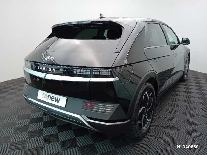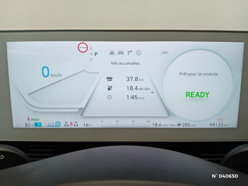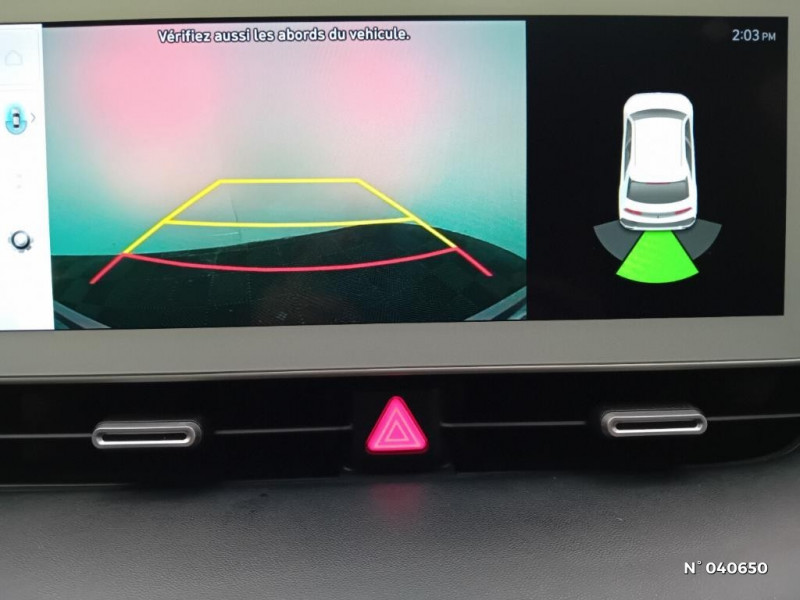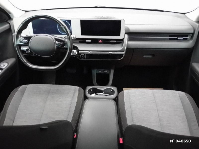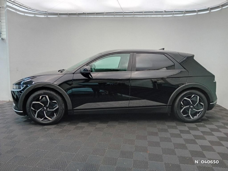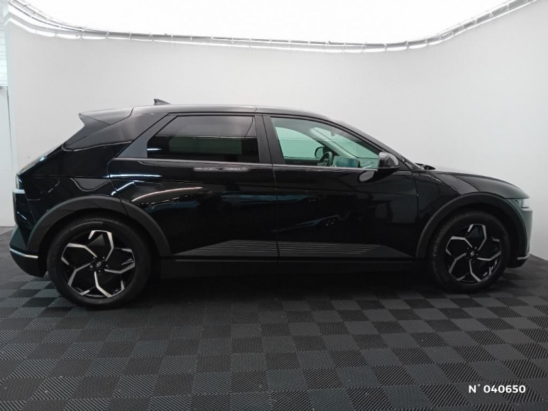 Rétroviseurs extérieurs électriques avec de répétiteurs clignotant intégré / Accoudoirs AV/AR / Système d'accès mains-libres et démarrage sans clé / Direction assistée électrique asservie à la vitesse / Vide-poches dans portes AV/AR / Caméra de recul avec lignes de guidage dynamiques / Verrouillage automatique des portes en roulant / Rétroviseurs intérieur jour/nuit automatique / Porte-gobelet AV/AR / Capteur de désembuage automatique du pare-brise / Kit de réparation / Cache-bagages à enrouleur / Alarme périmétrique / Siège conducteur avec support lombaire électrique / Poignées de portes intérieures grain métal / Feux de route intelligents / Filet de coffre / Sièges AR inclinables / Services connectés BlueLink avec carte SIM incluse / Assistance active à la conduite sur autoroute / Transmission à commande électrique / Système de navigation Europe avec programme de mise à jour de la cartographie et services Hyundai live / Câble de recharge pour prise domestique / Détection de fatigue du conducteur / Frein de parking électrique avec fonction auto-hold / Vitres électriques séquentielles AV/AR / Antenne de toit type requin / Freinage régénératif intelligent / Programmation de la recharge et de la ventilation / Système audio RDS, MP3, 4 haut-parleurs, 2 tweeters / Console centrale avec bac de rangement sous l'accoudoir AV / Alerte de présence de passager AR / Contrôle de trajectoire électronique ESP avec gestion de stabilité pour remorque / Rétroviseurs électriques dégivrants, rabattables électriquement avec clignotants intégrés / eCall : appel d'urgence automatique aux services de secours avec géolocalisation du véhicule / Ouïes de ventilation AR / Système de chauffage de la batterie / Système ISOFIX pour siège enfant aux places latérales AR / Freinage d'urgence autonome avec reconnaissance piétons et cyclistes / Freinage d'urgence autonome avec fonction intersections / Chargeur embarqué tri-phasé 11 kW / Freinage anti multi-collisions / Poignées de portes extérieures rétractables / Eclairage intérieur à LED personnalisable / Feux AR à LED type "Pixel" / Compteurs numériques 12.3" / Système multimédia avec écran couleur tactile 12,3" avec reconnaissance vocale en ligne / Palettes de freinage régénératif modulable au volant (avec fonction i-Pedal) / Prise Combo Type 2 - 350 kW / Prise Type 2 - 11 kW / ABS, EBD et AFU / Jonc de vitres noir / Protections AV et AR, ligne de bas de caisse et passages de roue noirs / Assistance active au maintien et au suivi de voie / Feux de jour et de position AV à LED type "Pixel" / Câble de recharge Type 2 pour borne de recharge / Drive Mode (Eco, Normal, Sport et Neige) / Boîte à gants coulissante type "tiroir" / Poignées de portes extérieures rétractables manuelles / Poches aumonières au dos des sièges AV / Rétroviseurs extérieurs couleur carrosserie