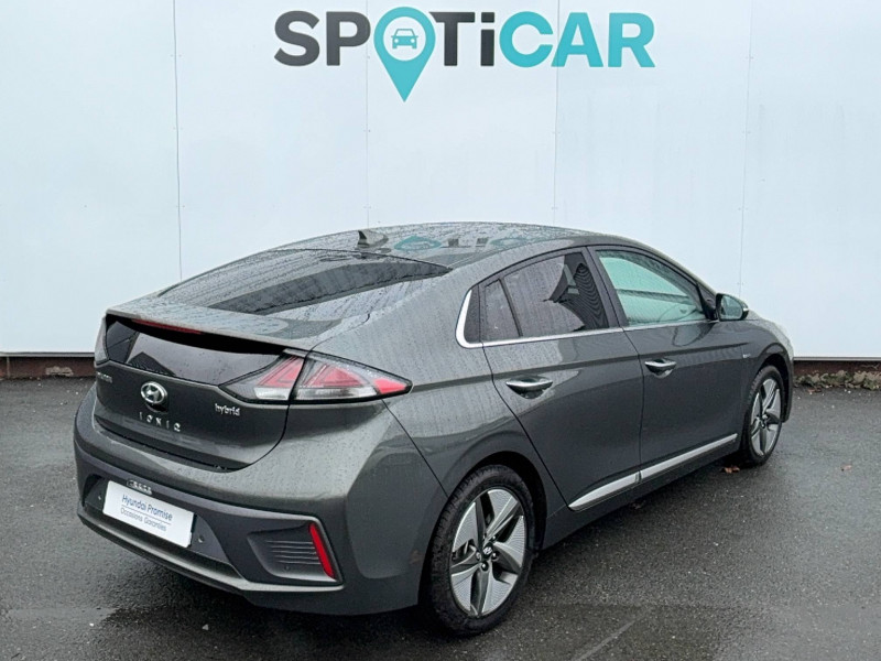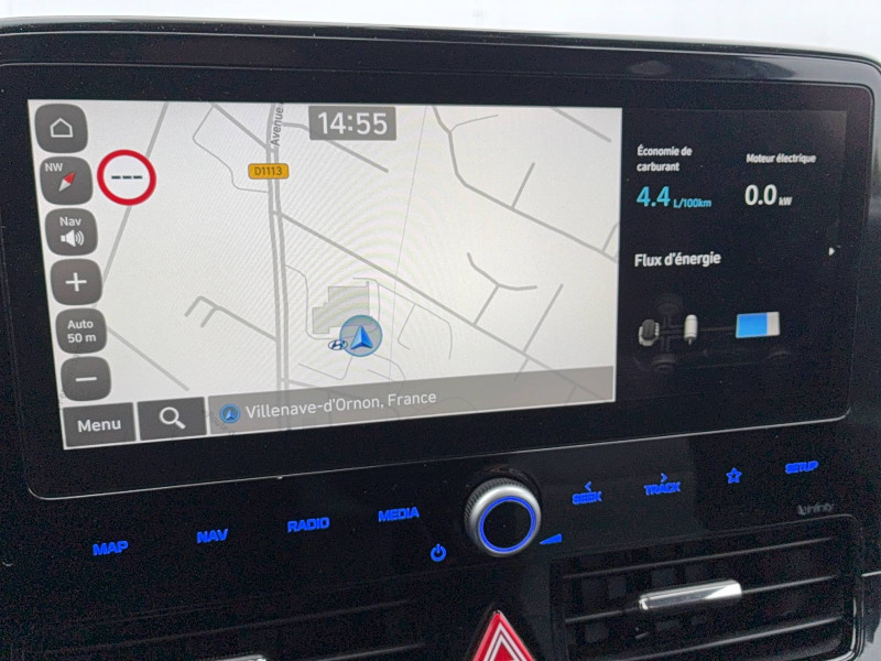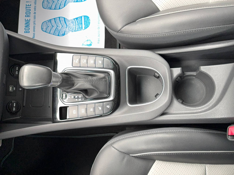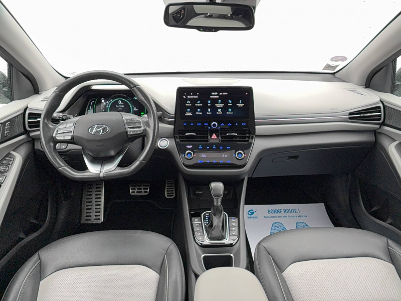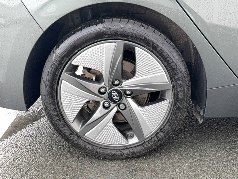 Alarme périmétrique / Alerte de circulation transversale AR / Antenne de toit type requin en effet verre / Assistance active au suivi de voie / Cache-bagages à enrouleur / Caméra de recul avec lignes de guidage dynamiques / Capteur de désembuage automatique / Chargeur sans fil pour téléphone compatible / Compteurs digitaux 7" / Console centrale avec bac de rangement sous l'accoudoir AV / Contrôle de trajectoire électronique ESP / Détection de fatigue du conducteur / eCall : appel d'urgence automatique aux services de secours avec géolocalisation du véhicule / Eclairage d'accueil dans les poignées AV et sous les rétroviseurs extérieurs / Eclairage d'ambiance intérieur à LED / Feux de route intelligents / Freinage d'urgence autonome avec détection des piétons et cycliste / Freinage régénératif intelligent (modulable via palettes au volant) / Frein de parking électrique avec fonction auto-hold / Jonc chromé (vitres) / Moulures de bas de portes / Ouïes de ventilation AR / Pédalier façon aluminium / Peinture solide Polar White / Poches aumonières au dos des sièges AV / Poignées de portes extérieures avec insert chromé / Poignées de portes intérieures grain métal / Porte-gobelets AV/AR / Port USB de recharge sous l'accoudoir AV / Protections de seuils de portes grain métal / Range-lunettes / Réception radio numérique terrestre (DAB) / Rétroviseurs extérieurs électriques et dégivrants avec répétiteur intégré / Rétroviseurs intérieur jour/nuit automatique / Sellerie cuir (assise et dossier) / Services connectés BlueLink avec carte e-SIM incluse / Siège conducteur avec support lombaire électrique / Siège conducteur électrique à mémoires / Surveillance des angles morts avec assistance au changement de voie / Système audio Premium Infinity : 5 HP, 2 tweeters, subwoofer et amplificateur externe / Système d'accès mains-libres et démarrage sans clé / Système de navigation Europe avec programme de mise à jour de la cartographie et services Hyundai Live / Système ISOFIX pour siège enfant aux places latérales AR / Système multimédia avec écran tactile 10.25", menu d'éco-conduite et reconnaissance vocale / Verrouillage automatique des portes en roulant / Vide-poches dans portes AV/AR / Vitres AV/AR électriques (séquentielles à l'AV) / Volant chauffant / Volant et pommeau de levier de vitesse en cuir