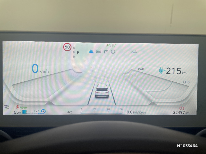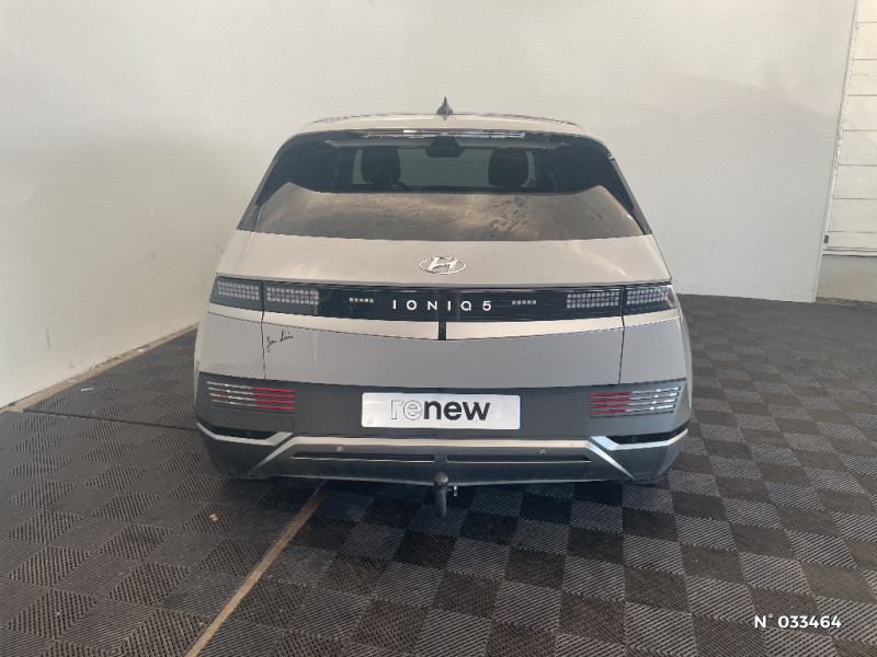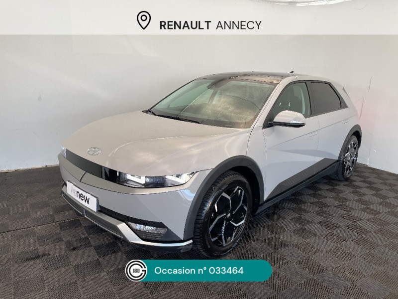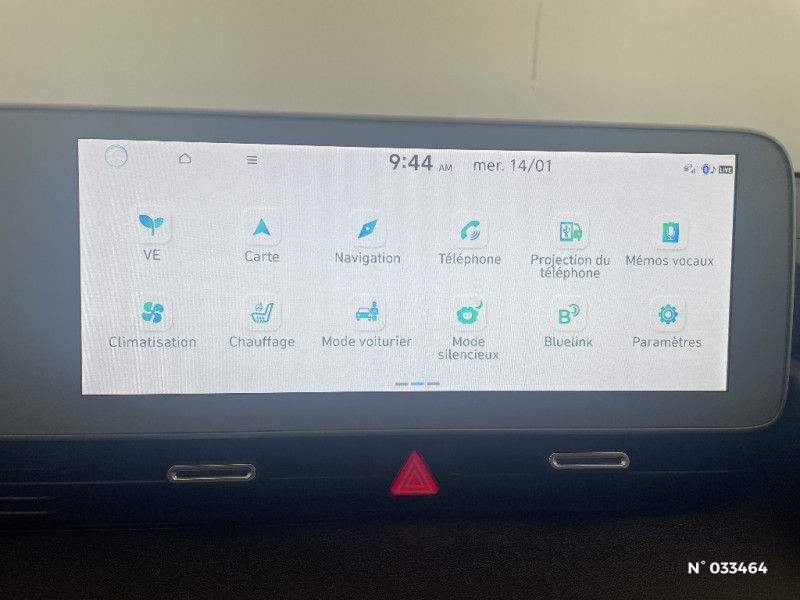 Câble de recharge pour prise domestique / Détection de fatigue du conducteur / Frein de parking électrique avec fonction auto-hold / Antenne de toit type requin / Freinage régénératif intelligent / Programmation de la recharge et de la ventilation / Système audio RDS, MP3, 4 haut-parleurs, 2 tweeters / Système d'accès mains-libres et démarrage sans clé / Direction assistée électrique asservie à la vitesse / Vide-poches dans portes AV/AR / Caméra de recul avec lignes de guidage dynamiques / Verrouillage automatique des portes en roulant / Rétroviseurs intérieur jour/nuit automatique / Porte-gobelet AV/AR / Capteur de désembuage automatique du pare-brise / Kit de réparation / Cache-bagages à enrouleur / Alarme périmétrique / Accoudoirs AV/AR / Siège conducteur avec support lombaire électrique / eCall : appel d'urgence automatique aux services de secours avec géolocalisation du véhicule / Filet de coffre / Ouïes de ventilation AR / Système de chauffage de la batterie / Sièges AR inclinables / Services connectés BlueLink avec carte SIM incluse / Assistance active à la conduite sur autoroute / Transmission à commande électrique / Jonc de vitres noir / Système de navigation Europe avec programme de mise à jour de la cartographie et services Hyundai live / Freinage d'urgence autonome avec reconnaissance piétons et cyclistes / Freinage d'urgence autonome avec fonction intersections / Chargeur embarqué tri-phasé 11 kW / Freinage anti multi-collisions / Feux AR à LED type "Pixel" / Compteurs numériques 12.3" / Système multimédia avec écran couleur tactile 12,3" avec reconnaissance vocale en ligne / Palettes de freinage régénératif modulable au volant (avec fonction i-Pedal) / Prise Combo Type 2 - 350 kW / Prise Type 2 - 11 kW / Console centrale avec bac de rangement sous l'accoudoir AV / Alerte de présence de passager AR / Contrôle de trajectoire électronique ESP avec gestion de stabilité pour remorque / Rétroviseurs électriques dégivrants, rabattables électriquement avec clignotants intégrés / Volant chauffant / Système de préconditionnement de la batterie / Poches aumonières au dos des sièges AV / Rétroviseurs extérieurs couleur carrosserie / Système ISOFIX pour siège enfant aux places latérales AR / Poignées de portes extérieures rétractables manuelles / Vitres électriques AV et AR (séquentielles à l'AV) / Protections AV et AR, ligne de bas de caisse et passages de roue noirs / Assistance active au maintien et au suivi de voie / Feux de jour et de position AV à LED type "Pixel" / Drive Mode (Eco, Normal, Sport et Neige) / Boîte à gants coulissante type "tiroir" / ABS, EBD et AFU / Poignées de portes intérieures grain métal / Feux de route intelligents