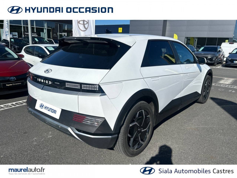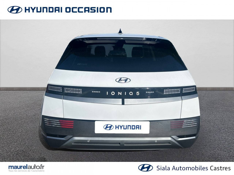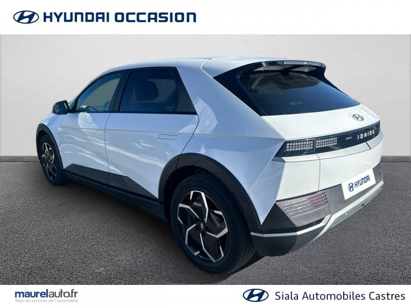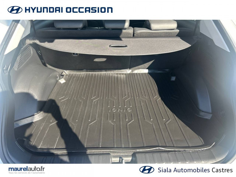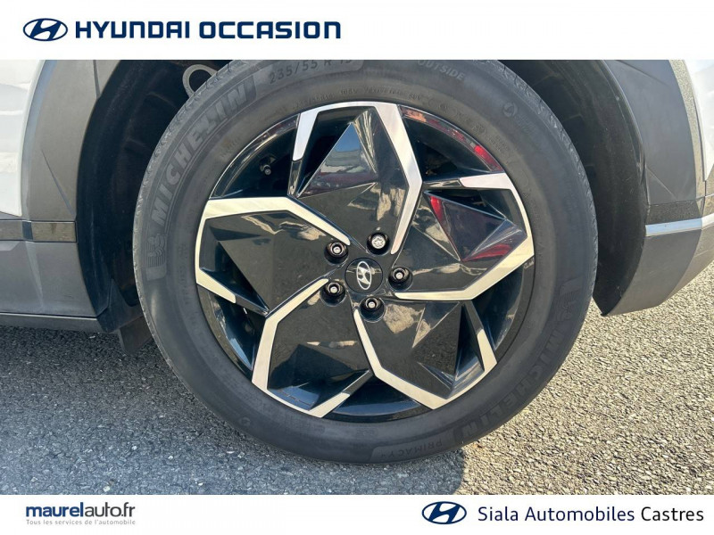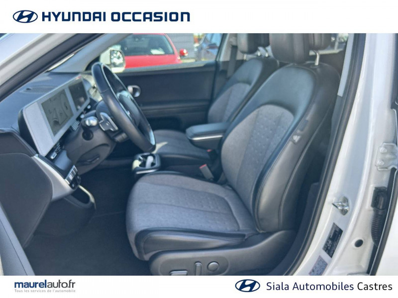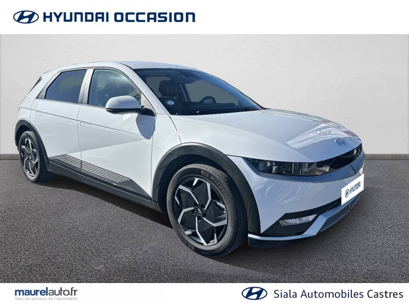 ABS, EBD et AFU / Accoudoirs AV/AR / Alarme périmétrique / Alerte de circulation transversale AR avec fonction freinage / Alerte de présence de passager AR / Antenne de toit type requin en effet verre / Assistance active à la conduite sur autoroute / Assistance active au maintien et au suivi de voie / Assistance à la sortie du véhicule / Boîte à gants coulissante type "tiroir" / Câble de recharge pour prise domestique / Cache-bagages à enrouleur / Caméra de recul avec lignes de guidage dynamiques / Capteur de désembuage automatique du pare-brise / Chargeur embarqué tri-phasé 11kW / Chargeur sans fil pour téléphone compatible / Compteurs numériques 12,3" / Console centrale AV coulissante / Console centrale avec bac de rangement sous l'accoudoir AV / Contrôle de trajectoire électronique ESP avec gestion de stabilité pour remorque / Détection de fatigue du conducteur / Direction assistée électrique asservie à la vitesse / Drive Mode (Eco, Normal, Sport et Neige) / eCall : appel d'urgence automatique aux services de secours avec géolocalisation du véhicule / Eclairage intérieur à LED personnalisable / Feux AR à LED type "Pixel" / Feux de jour et de position AV à LED type "Pixel" / Feux de route intelligents / Filet de coffre / Freinage anti multi-collisions / Freinage d'urgence autonome avec fonction intersections / Freinage d'urgence autonome avec reconnaissance piétons et cyclistes / Freinage régénératif intelligent / Frein de parking électrique avec fonction auto-hold / Hayon mains-libres intelligent / Jonc de vitres noir / Kit de réparation / Ouïes de ventilation AR / Palettes de freinage régénératif modulable au volant (avec fonction i-Pedal) / Poches aumonières au dos des sièges AV / Poignées de portes extérieures rétractables manuelles / Poignées de portes intérieures grain métal / Porte-gobelets AV/AR / Prise Combo Type 2 - 350 kW / Prise Type 2 - 11 kW / Programmation de la recharge et de la ventilation / Protections AV/AR, ligne de bas de caisse et passages de roue noirs / Protections de seuils de portes grain métal / Rétroviseurs électriques dégivrants, rabattables électriquement avec clignotants intégrés / Rétroviseurs extérieurs couleur carrosserie / Rétroviseurs intérieur jour/nuit automatique / Revêtement de tableau de bord et contre-portes en similicuir avec surpiqûres / Sellerie cuir (dossier et assise) / Services connectés BlueLink avec carte SIM incluse / Siège conducteur avec support lombaire électrique / Siège passager avec support lombaire électrique / Sièges AR inclinables / Surveillance des angles morts avec assistance active au changement de voie / Système audio RDS, MP3, 4 HPs, 2 tweeters / Système d'accès mains-libres et démarrage sans clé / Système de chauffage de la batterie / Système de navigation Europe avec programme de mise à jour de la cartographie / Système de préconditionnement de la batterie / Système ISOFIX pour siège enfant aux places latérales AR / Système multimédia avec écran couleur tactile 12,3" avec reconnaissance vocale en ligne / Transmission à commande électrique / Verrouillage automatique des portes en roulant / Vide-poches dans portes AV/AR / Vitres électriques AV et AR (séquentielles à l'AV) / Volant chauffant