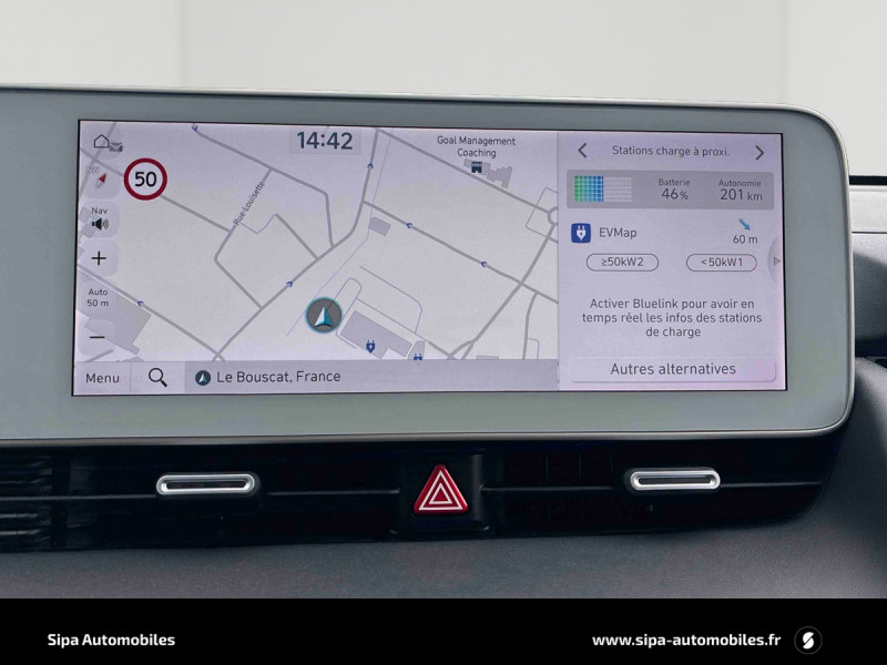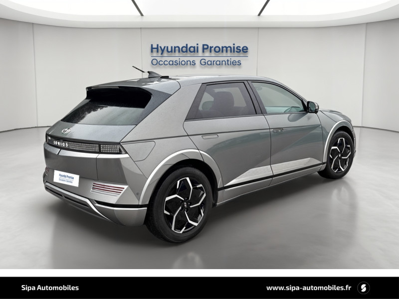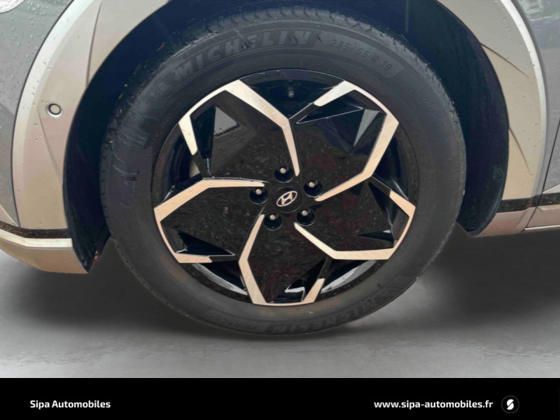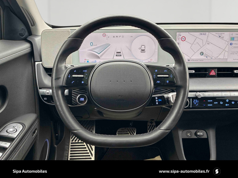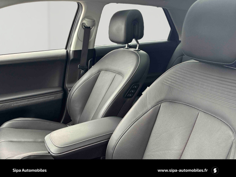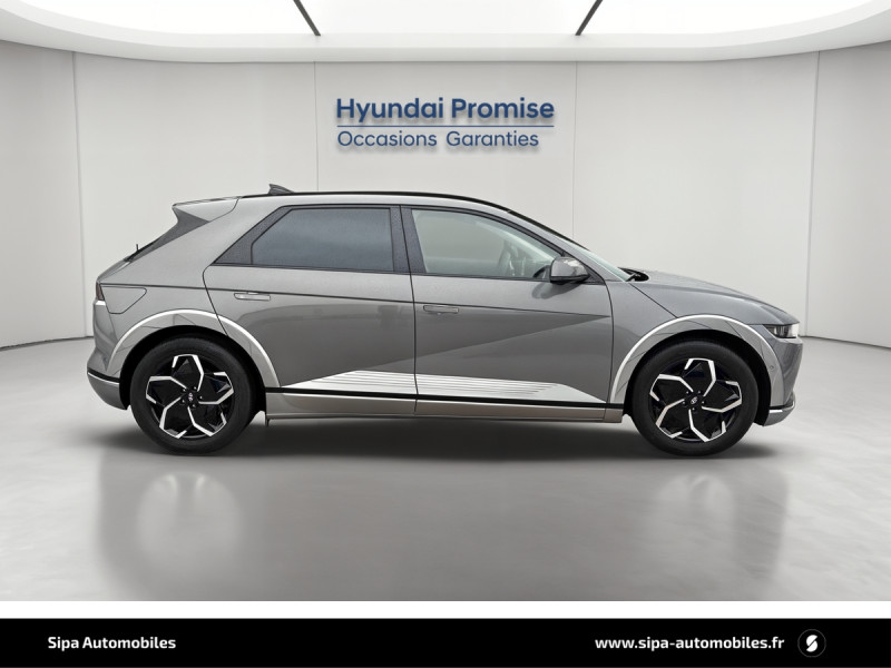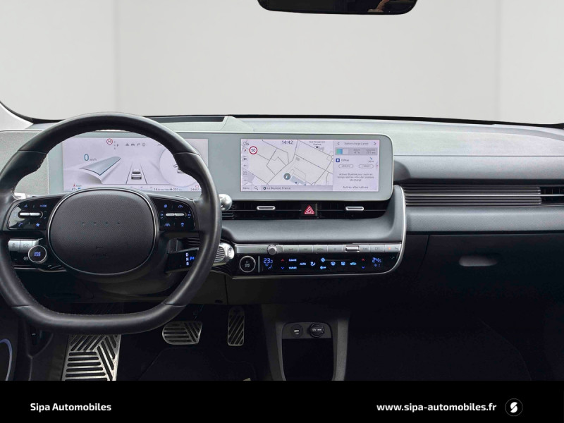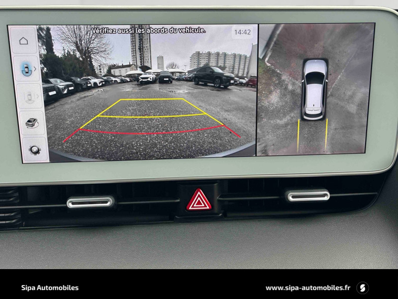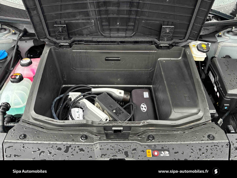 Aide au statiionnement AR avec fonction freinage / Capteur de désembuage automatique du pare-brise / Clignotants AV et AR à LED / Commande de stationnement à distance via télécommande (AV / AR / créneau / bataille) / eCall : appel d'urgence automatique aux services de secours avec géolocalisation du véhicule / Eclairage intérieur à LED personnalisable / Feux AR à LED type "Pixel" / Feux AV bi-LED type projection / Feux de jour et de position AV à LED type "Pixel" / Poignées de portes extérieures rétractables automatiquement / Pédalier façon aluminium / Revêtement de tableau de bord et contre-portes en similicuir avec surpiqûres / Rétroviseurs intérieur jour/nuit automatique / Système de navigation Europe avec programme de mise à jour de la cartographie et services Hyundai live / Toit vitré panoramique inclut Plafonnier à LED / Verrouillage automatique des portes en roulant / ABS, EBD et AFU / Accoudoirs AV/AR / Adaptateur V2L extérieur T2/ 230 V pour charge inversée (3,6 kW max) / Affichage caméra des angles morts / Affichage tête-haute sur pare-brise avec réalité augmentée / Alarme périmétrique / Alerte de circulation transversale à l'AR avec fonction freinage / Alerte de présence de passager AR avec capteur ultrason / Antenne de toit type requin / Assistance active au maintien et au suivi de voie / Assistance active à la conduite sur autoroute avec fonction changement de voie / Assistance à la sortie du véhicule / Boîte à gants coulissante type "tiroir" / Cache-bagages à enrouleur / Calandre rétroéclairée / Caméra 360° / Caméra de recul avec lignes de guidage dynamiques / Chargeur embarqué tri-phasé 11 kW / Chargeur inversé (V2L) Adapteur pour prise de charge exterieure et prise 230V sous les sieges AR / Chargeur sans fil pour téléphone compatible / Compteurs numériques 12.3" / Console centrale AV coulissante / Console centrale avec bac de rangement sous l'accoudoir AV / Contrôle de trajectoire électronique ESP avec gestion de stabilité pour remorque / Câble de recharge pour prise domestique / Direction assistée électrique asservie à la vitesse / Drive Mode (Eco, Normal, Sport et Neige) / Détection de fatigue du conducteur / Feux de route intelligents / Filet de coffre / Frein de parking électrique avec fonction auto-hold / Freinage anti multi-collisions / Freinage d'urgence autonome avec fonction intersection/croisement / Freinage d'urgence autonome avec reconnaissance piétons et cyclistes / Freinage régénératif intelligent / Hayon mains-libres intelligent / Jonc de vitres noir laqué / Kit de réparation / Ouïes de ventilation AR / Palettes de freinage régénératif modulable au volant (avec fonction i-Pedal) / Pare-soleil intégrés dans les portes AR / Poches aumonières au dos des sièges AV / Poignées de portes intérieures grain métal / Porte-gobelets AV/AR / Prise 12V dans le coffre / Prise 230V sous les sièges AR / Prise Type 2 - 11 kW / Programmation de la recharge et de la ventilation / Protections AV et AR, ligne de bas de caisse et passages de roue grain métal / Protections de seuils de portes grain métal / Rétroviseurs extérieurs couleur carrosserie / Rétroviseurs électriques dégivrants, rabattables électriquement avec clignotants intégrés / Services connectés BlueLink avec carte SIM incluse / Siège conducteur avec support lombaire électrique / Siège passager avec support lombaire électrique / Sièges AR coulissants électriquement / Sièges AR inclinables / Sièges AV multi-confort avec dossiers inclinables et repose-mollets / Sièges AV réglables électriquement à mémoire / Surveillance des angles morts avec assistance active au changement de voie / Système audio premium Bose, 7 haut-parleurs, amplificateur et subwoofer / Système d'accès mains-libres et démarrage sans clé / Système de chauffage de la batterie / Système de préconditionnement de la batterie / Système ISOFIX pour siège enfant aux places latérales AR / Système multimédia avec écran couleur tactile 12,3" avec reconnaissance vocale en ligne / Transmission à commande électrique / Vide-poches dans portes AV/AR / Vitres AV/AR avec film acoustique / Vitres électriques AV et AR (séquentielles à l'AV) / Volant chauffant