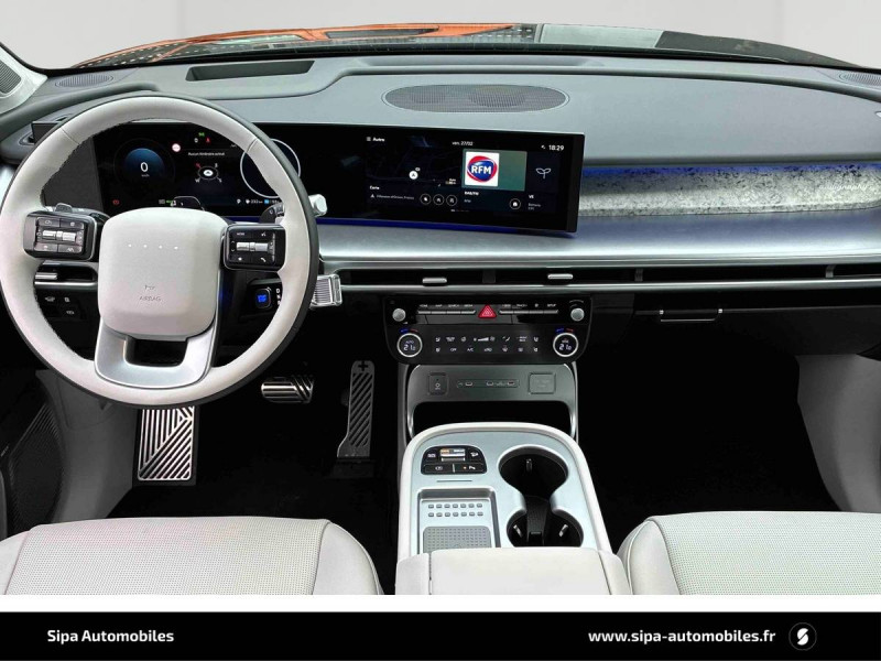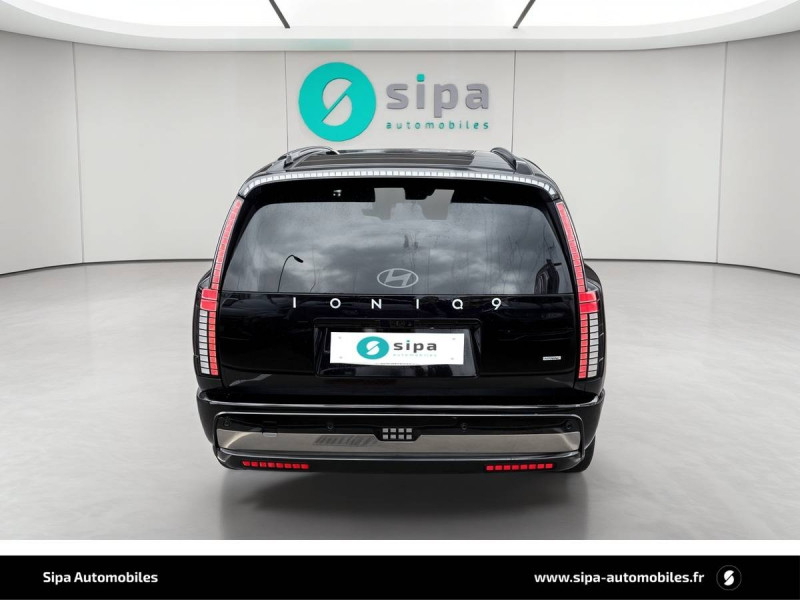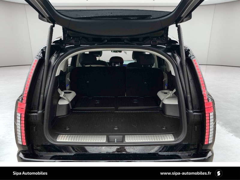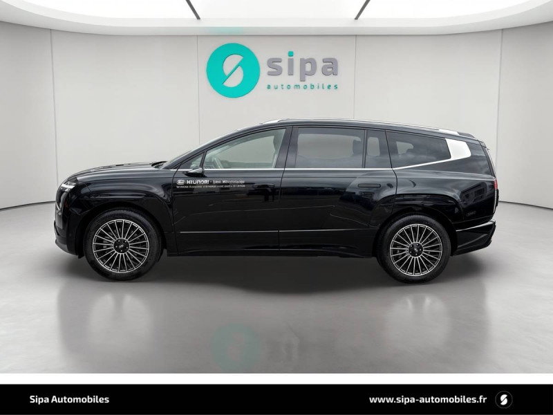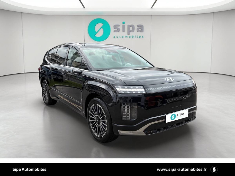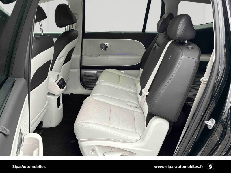 10 airbags : frontaux AV, latéraux, rideaux, central AV et genoux conducteur / Accoudoirs (central AV et portes) et contre-portes habillage simili-cuir / Affichage caméra des angles morts / Aide au stationnement avec fonction freinage / Alarme périmétrique / Alerte de circulation transversale AR avec fonction freinage / Alerte de présence de passager AR avec système de radar / Assistance active à la conduite sur autoroute (Niveau 2) avec fonction changement de voie / Assistance active au maintien et au suivi de voie / Assistance à la sortie du véhicule / Boîte automatique à fonction continue / Câble de recharge pour prise T2 / Caméra 360° avec lignes de guidage dynamiques et vue 3D / Chargeur inversé V2L avec prise domestique 230V dans le coffre / Chargeur inversé V2L extérieur avec adaptateur pour prise domestique 230V / Chargeur sans fil pour téléphone compatible / Ciel de toit alcantara / Clé Digitale 2.0 - accès et démarrage par smartphone / Climatisation automatique tri-zone avec ouïe de ventilation AR et désembuage automatique / Coffre AV à déverrouillage à distance / Compatibilité Apple CarPlay et Android Auto - connexion sans fil / Compatibilité avec les fonctionnalités à la demande (FOD) / Compatibilité avec les mises à jour sans fil à distance / Compteurs numériques 12,3" / Configuration 7 places / Console centrale avec bac de rangement à ouverture bi-directionnelle / Contrôle de traction électronique ETC / Contrôle de trajectoire électronique ESP / Contrôle de vitesse en descente / Détection de fatigue du conducteur / Dossiers AR (rang 2 / rang 3) rabattables à distance depuis le coffre / Drive Mode (Eco, Normal, Sport et Neige) / eCall: appel d'urgence automatique aux services de secours avec géolocalisation du véhicule / Eclairage d'ambiance intérieur à LED personnalisable / Entourage de vitres noir brillant et satin / Feux AV Matrix LED intelligents / Freinage d'urgence autonome avec reconnaissance piéton/cycliste et fonction intersection / Freinage régénératif intelligent, modulable au volant avec fonction i-Pedal / Frein de parking électrique avec fonction auto-hold / Hayon mains-libres intelligent / Hyundai AI Assistant : Assistant personnel à intelligence artificielle / Insert de tableau de bord aspect Aluminium / Insonorisation renforcée par technologie de réduction active du bruit / Pare-brise athermique avec film acoustique / Pare-chocs et bas de caisses avec finitions noir brillant et métal / Pare-soleils intégrés dans les portes AR / Passages de roues unis couleur carrosserie / Poignées de portes extérieures rétractables automatiques / Porte-gobelets AV/AR (rang 1/ rang 2/ rang 3) / Prises USB-C 100W aux 3 rangs (via câble Hyundai fourni - jusqu'à 60W avec câble standard) / Prise Type 2 (AC - 11 kW) et Combo Type 2 (DC) / Programmation et gestion à distance de la recharge et de la ventilation / Protections de seuils de portes métal / Rails de toit couleur métal / Rangement avec fonction de désinfection par UV-C / Réception radio numérique terrestre (DAB) / Régulateur de vitesse adaptatif (jusqu'à l'arrêt) et limiteur de vitesse intelligent / Rétroviseur intérieur par caméra avec écran intégré / Rétroviseurs intérieur jour/nuit automatique / Services connectés BlueLink avec mises à jour à distance (OTA) / Siège conducteur à mémoire / Sièges AV et AR (rang 2) ventilés / Sièges AV multi-confort avec mode relaxation et repose-mollets / Sièges AV réglables électriquement (assise, dossier, lombaires) / Sièges de rang 2 inclinables et coulissants avec accès facilité "One-Touch" au rang 3 / Sièges de rang 3 inclinables / Ski AV métal / Stationnement automatique via télécommande (AV/AR/créneau/bataille/épi) / Surveillance des angles morts avec assistance active au changement de voie / Système audio premium Bose 14 haut-parleurs avec subwoofer et amplificateur / Système d'accès mains-libres et démarrage sans clé / Système de chauffage par pompe à chaleur / Système de navigation Europe avec planificateur d'itinéraire électrique et mise à jour de la cartographie / Système de préconditionnement de la batterie / Système multimédia avec écran couleur tactile 12,3" incurvé / Terrain Mode HTRAC (Auto,Neige, Sable, Boue) / Toit ouvrant panoramique avec volet occultant électrique / Verrouillage automatique des portes en roulant / Vitrages latéraux acoustiques / Volant chauffant / Volant gainé cuir bi-ton / Volant réglable électriquement à mémoire