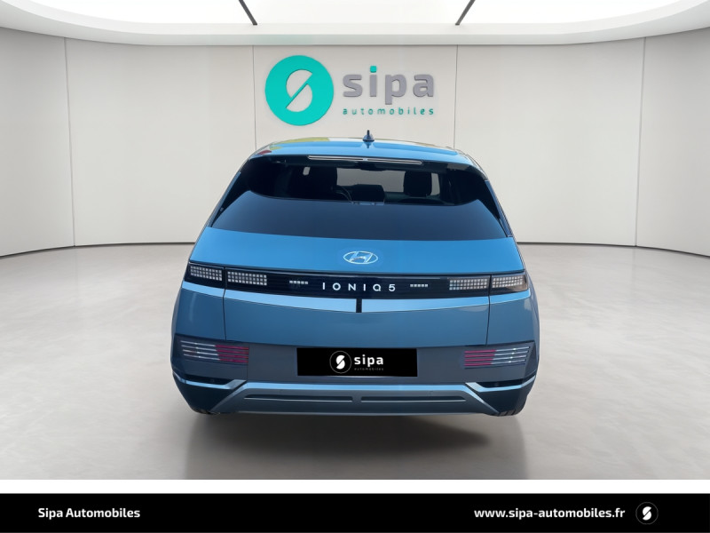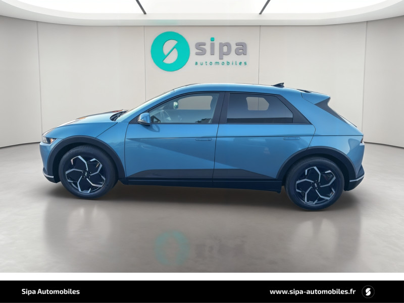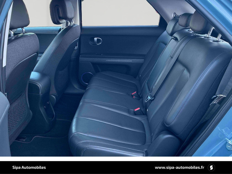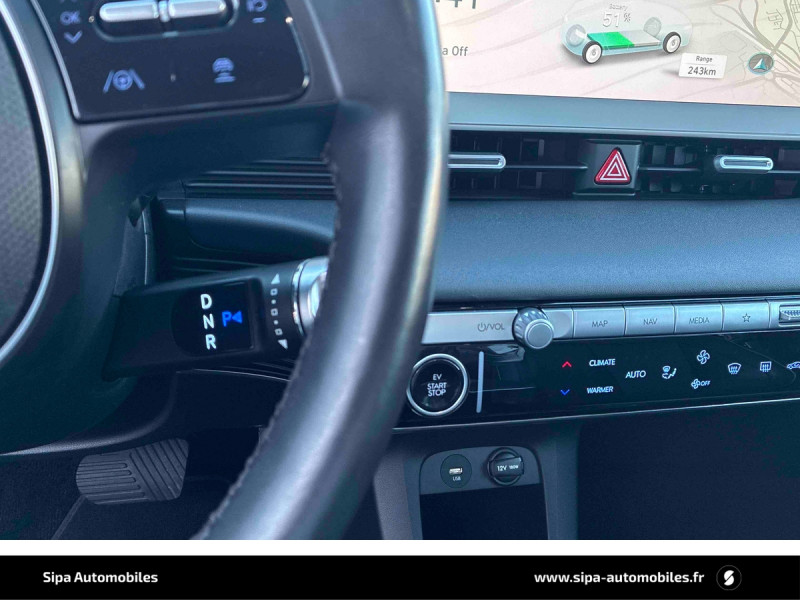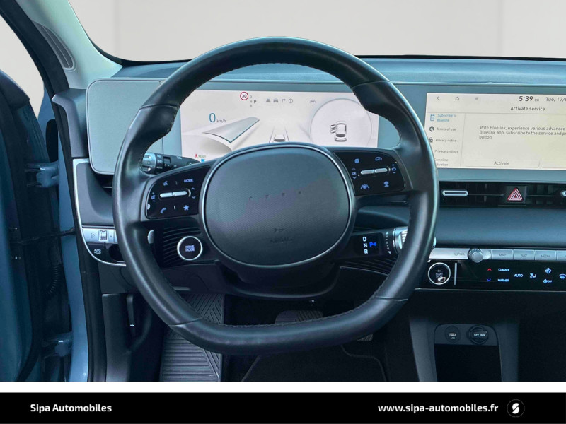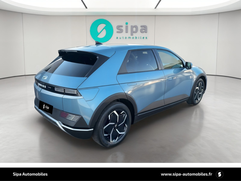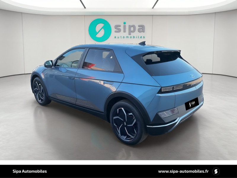 Capteur de désembuage automatique du pare-brise / eCall: appel d'urgence automatique aux services de secours avec géolocalisation du véhicule / Eclairage intérieur à LED personnalisable / Feux AR à LED type "Pixel" / Feux de jour et de position AV à LED type "Pixel" / Revêtement de tableau de bord et contre-portes en similicuir avec surpiqûres / Rétroviseurs intérieur jour/nuit automatique / Sellerie cuir (dossier et assise) / Système de navigation Europe avec programme de mise à jour de la cartographie / Verrouillage automatique des portes en roulant / ABS, EBD et AFU / Accoudoirs AV/AR / Alarme périmétrique / Alerte de circulation transversale AR avec fonction freinage / Alerte de présence de passager AR / Antenne de toit type requin / Assistance active au maintien et au suivi de voie / Assistance active à la conduite sur autoroute / Assistance à la sortie du véhicule / Boîte à gants coulissante type "tiroir" / Cache-bagages à enrouleur / Caméra de recul avec lignes de guidage dynamiques / Chargeur embarqué tri-phasé 11kW / Chargeur sans fil pour téléphone compatible / Compteurs numériques 12,3" / Console centrale AV coulissante / Console centrale avec bac de rangement sous l'accoudoir AV / Contrôle de trajectoire électronique ESP avec gestion de stabilité pour remorque / Câble de recharge pour prise domestique / Direction assistée électrique asservie à la vitesse / Drive Mode (Eco, Normal, Sport et Neige) / Détection de fatigue du conducteur / Feux de route intelligents / Frein de parking électrique avec fonction auto-hold / Freinage anti multi-collisions / Freinage d'urgence autonome avec fonction intersections / Freinage d'urgence autonome avec reconnaissance piétons et cyclistes / Freinage régénératif intelligent / Hayon mains-libres intelligent / Jonc de vitres noir / Kit de réparation / Ouïes de ventilation AR / Palettes de freinage régénératif modulable au volant (avec fonction i-Pedal) / Poches aumonières au dos des sièges AV / Poignées de portes extérieures rétractables manuelles / Poignées de portes intérieures grain métal / Porte-gobelets AV/AR / Prise Combo Type 2 - 350 kW / Prise Type 2 - 11 kW / Programmation de la recharge et de la ventilation / Protections AV/AR, ligne de bas de caisse et passages de roue noirs / Protections de seuils de portes grain métal / Rétroviseurs extérieurs couleur carrosserie / Rétroviseurs électriques dégivrants, rabattables électriquement avec clignotants intégrés / Services connectés BlueLink avec carte SIM incluse / Siège conducteur avec support lombaire électrique / Siège passager avec support lombaire électrique / Sièges AR inclinables / Surveillance des angles morts avec assistance active au changement de voie / Système audio RDS, MP3, 4 HPs, 2 tweeters / Système d'accès mains-libres et démarrage sans clé / Système de chauffage de la batterie / Système de préconditionnement de la batterie / Système ISOFIX pour siège enfant aux places latérales AR / Système multimédia avec écran couleur tactile 12,3" avec reconnaissance vocale en ligne / Transmission à commande électrique / Vide-poches dans portes AV/AR / Vitres électriques AV et AR (séquentielles à l'AV) / Volant chauffant