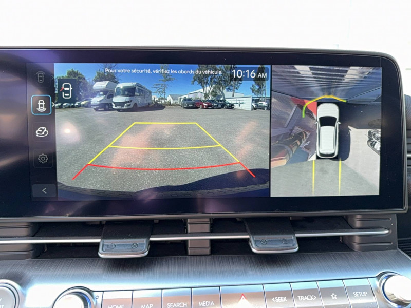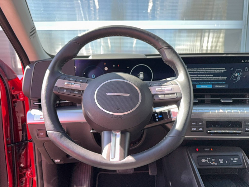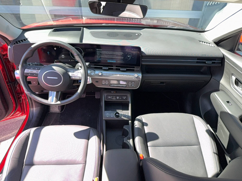 4 prises USB-C; un port de données et une prise de recharge AV, 2 prises de recharge AR / 7 Airbags: frontaux conducteur et passager, latéraux AV, rideaux AV/AR, central AV / Accès mains-libres et démarrage sans clé / Affichage caméra des angles morts / Aide au stationnement AR avec fonction freinage / Aide au stationnement AV et AR avec capteurs latéraux / Alerte de circulation transversale à l'AR avec fonction freinage / Alerte de présence de passager AR / Assistance active à la conduite sur autoroute / Assistance active au maintien et au suivi de voie / Assistance à la sortie du véhicule pour passagers AR / Câble de recharge pour prise domestique / Caméra 360° / Caméra de recul avec lignes de guidage dynamiques / Chargeur embarqué tri-phasé 11 kW / Chargeur sans fil pour téléphone compatible / Climatisation automatique bi-zone avec fonction Driver Only et capteur de désembuage automatique du pare-brise / Compteurs numériques 12.3" / Détection de fatigue du conducteur / Drive Mode / eCall : appel d'urgence automatique aux services de secours avec géolocalisation du véhicule / Eclairage d'ambiance intérieur à LED personnalisable / Feux AV bi-LED type projection avec clignotants à LED / Feux de route intelligents / Feux Seamless Horizon avec bandeau LED / Filet de coffre / Freinage d'urgence autonome avec reconnaissance véhicule, piéton, cycliste et fonction intersection / Freinage régénératif intelligent / Frein de parking électrique avec fonction auto-hold / Jantes alliage 19'' 235/45 R19 / 7.5J X 19 / Ligne de caisse satinée / Ouïes de ventilation AR / Palettes de freinage régénératif modulable au volant / Pare-brise avec film acoustique / Peinture Engine Red / Plancher de coffre modulable / Planificateur de trajets / Poches aumonières au dos des sièges AV / Prise 220V sous les sièges AR / Prise de recharge rapide Combo Type 2 / Programmation de la recharge et de la ventilation / Rails de toit / Réception radio numérique terrestre (DAB) / Reconnaissance des panneaux de limitation de vitesse avec limiteur de vitesse intelligent / Rétroviseurs intérieur jour/nuit automatique / Services connectés BlueLink avec carte SIM incluse Transmission de destination au système de navigation à distance - Géolocalisation du véhicule - Historique des trajets - Statut du véhicule (portes, moteur, ventilation) - Diagnostic. Services télématiques offerts pendant 3 ans. / Siège conducteur avec support lombaire électrique / Surveillance active des angles morts / Système audio RDS, MP3, 4 HPs, 2 tweeters / Système de chauffage de la batterie / Système de navigation Europe avec programme de mise à jour à distance et services Hyundai Live: information trafic, carburants, emplacements de stationnement, météo, points d'intérêt et zones de danger. Mises à jour à distance incluses pendant 3 ans. / Système de préconditionnement de la batterie / Système ISOFIX pour siège enfant aux places latérales AR / Système multimédia avec écran couleur tactile 12,3" / Transmission à commande électrique / Vitres électriques AV/AR et séquentielle à l'AV / Volant chauffant