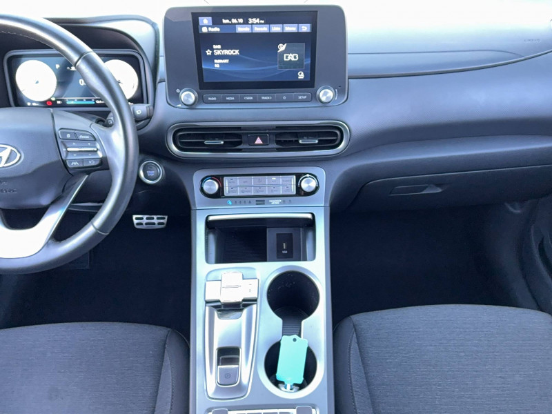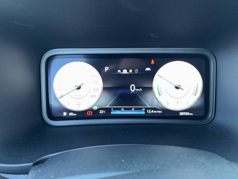 Alarme périmétrique / Alerte de présence de passager AR / Antenne de toit type requin en effet verre / Assistance active au suivi de voie / Câble de recharge pour prise domestique / Câble de recharge Type 2 / Caméra de recul avec lignes de guidage dynamiques / Capteur de désembuage automatique du pare-brise / Compteurs numériques 10,25" / Console de rangement sous accoudoir AV / Contrôle de trajectoire électronique ESP / Détection de fatigue du conducteur / Drive Mode Eco+ / Eco / Normal / Sport / eCall : appel d'urgence automatique aux services de secours avec géolocalisation du véhicule / Freinage d'urgence autonome avec détection des piétons / Intérieur Noir / Palettes de freinage régénératif modulable au volant / Peinture solide Dive in Jeju / Prise Combo Type 2 - 100 kW / Prise Type 2 - 7,2kW / Prise USB de recharge à l'AV / Programmation de la recharge et de la ventilation / Rails de toit / Réception radio numérique terrestre (DAB) / Siège conducteur avec support lombaire électrique / Système audio RDS, MP3, 4 HPs, 2 tweeters / Système d'accès mains-libres et démarrage sans clé / Système de chauffage de la batterie / Système ISOFIX pour siège enfant aux places latérales AR / Système multimédia avec écran couleur tactile 8" / Verrouillage automatique des portes en roulant