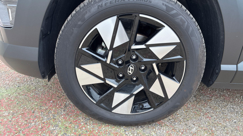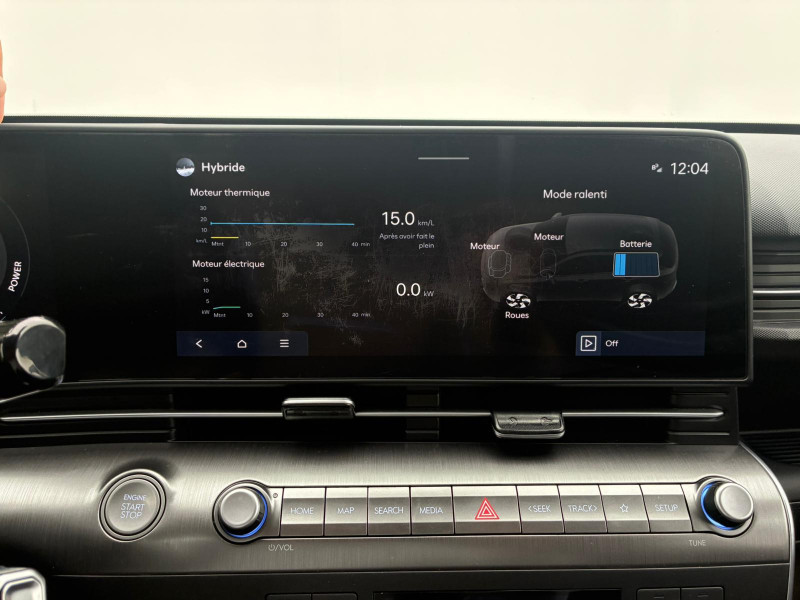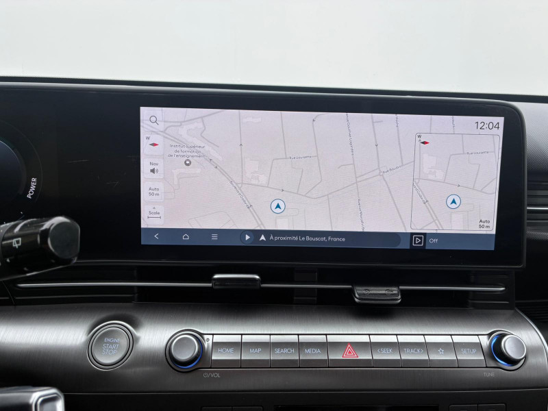 Boîte automatique 6 rapports / Boîte automatique 7 rapports / Climatisation automatique bi-zone avec fonction Driver Only et capteur de désembuage automatique du pare-brise / eCall : appel d'urgence automatique aux services de secours avec géolocalisation du véhicule / Eclairage d'ambiance à LED personnalisable / Rétroviseur intérieur jour/nuit automatique / Système de navigation Europe avec programme de mise à jour à distance et services Hyundai Live / Verrouillage automatique des portes en roulant / 4 prises USB-C; un port de données et une prise de recharge AV, 2 prises de recharge AR / 7 airbags: frontaux conducteur et passager, latéraux AV, rideaux AV/AR, central AV / ABS avec EBD, AFU et ESP / Accoudoir AR avec porte-gobelets intégré / Alerte de circulation transversale AR avec fonction freinage / Alerte de présence de passager AR / Assistance active au maintien et au suivi de voie / Assistance active à la conduite sur autoroute / Assistance à la sortie du véhicule pour passagers AR / Caméra de recul avec lignes de guidage dynamiques / Chargeur sans fil pour téléphone compatible / Compteurs numériques 12,3" / Console de rangement sous accoudoir AV / Drive Mode (Eco, Sport, Snow) / Détection de fatigue du conducteur / Feux de route intelligents / Filet de coffre / Frein de parking électrique avec fonction auto-hold / Freinage anti multi-collisions / Freinage d'urgence autonome avec reconnaissance véhicule, piéton, cycliste et fonction intersection / Freinage régénératif modulable via palettes au volant / Ligne de caisse satinée / Ouïes de ventilation AR / Pare-brise avec film acoustique / Plancher de coffre modulable / Poches aumonières au dos des sièges AV / Poignées de portes intérieures grain métal / Protections d'ailes gris anthracite / Rails de toit / Reconnaissance des panneaux de limitation de vitesse avec limiteur de vitesse intelligent / Services connectés BlueLink avec carte SIM incluse / Siège conducteur avec support lombaire électrique / Skis AV et AR grain métal / Surveillance active des angles morts / Système anti-patinage (TCS) / Système audio DAB/RDS, MP3, 4 HPs, 2 tweeters / Système d'accès mains-libres et démarrage sans clé / Système ISOFIX pour siège enfant aux places latérales AR / Système multimédia avec écran couleur tactile 12,3" / Vitres électriques AV/AR et séquentielle à l'AV / Volant chauffant