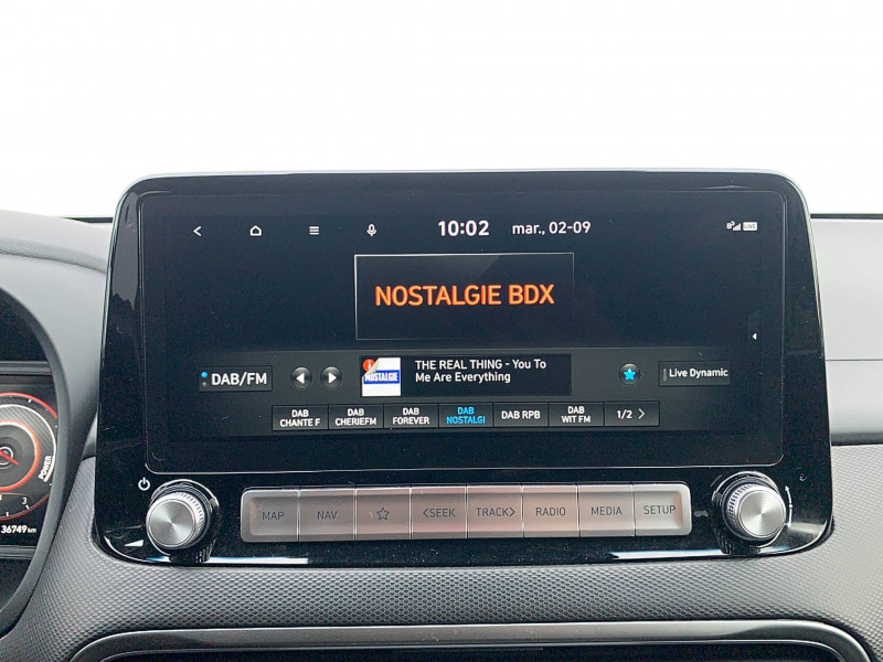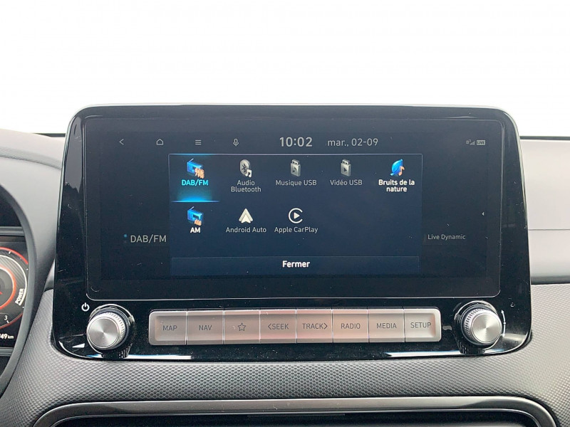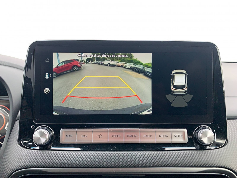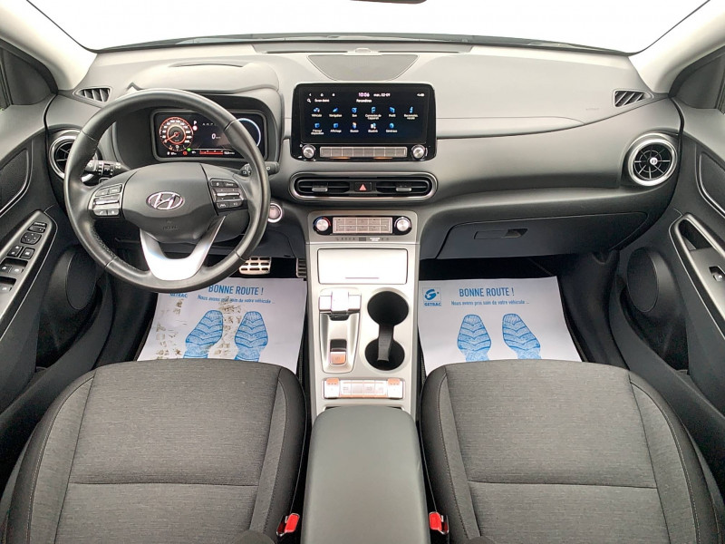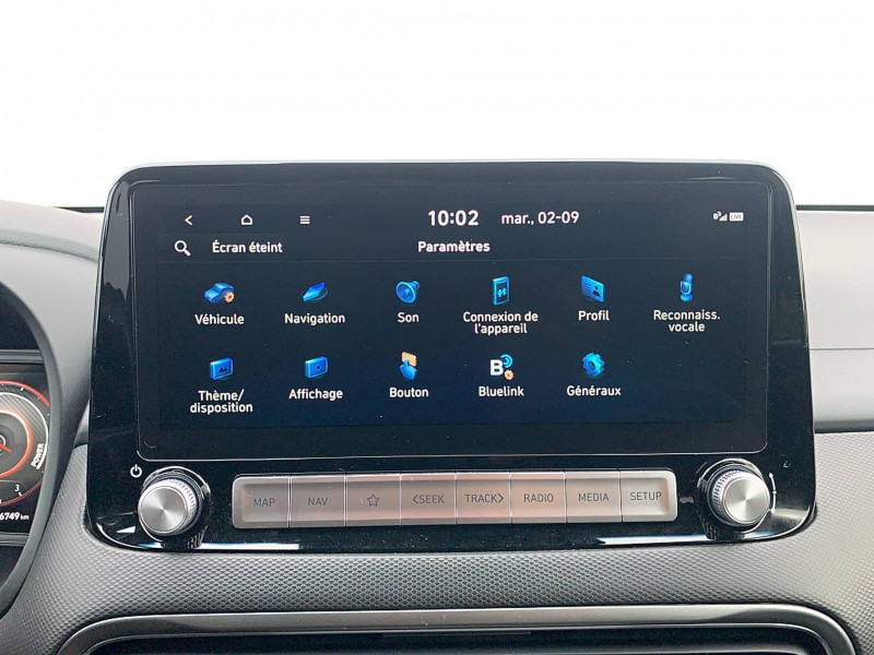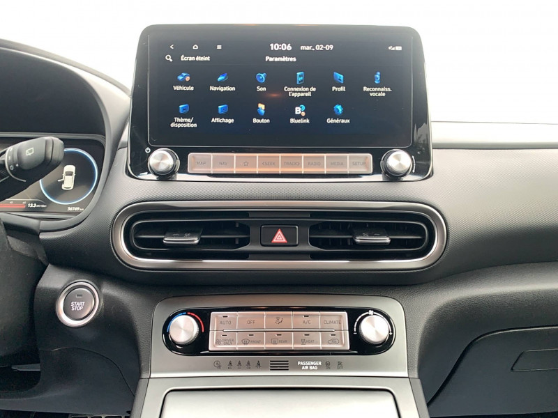 Accès mains-libres et démarrage sans clé / Alarme périmétrique / Alerte de circulation transversale à l'AR / Antenne de toit type requin en effet verre / Câble de recharge pour prise domestique / Câble de recharge Type 2 / Caméra de recul avec lignes de guidage dynamiques / Capteur de désembuage automatique du pare-brise / Chargeur sans fil pour téléphone compatible / Compteurs digitaux 7" / Console de rangement sous accoudoir AV / Contrôle de trajectoire électronique ESP / Détection de fatigue du conducteur / Direction assistée électrique asservie à la vitesse / Drive Mode Eco+ / Eco / Normal / Sport / eCall : appel d'urgence automatique aux services de secours avec géolocalisation du véhicule / Freinage d'urgence autonome avec détection des piétons / Freinage régénératif intelligent / Inserts décoratifs gris (contours des aérateurs et du bloc de levier de vitesses) / Intérieur Noir / Palettes de freinage régénératif modulable au volant / Pompe à chaleur / Prise auxiliaire et USB / Prise Combo Type 2 - 100 kW / Prise Type 2 - 7,2 kW / Prise USB de recharge / Programmation de la recharge et de la ventilation / Rails de toit / Réception radio numérique terrestre (DAB) / Rétroviseur intérieur jour/nuit automatique / Services connectés BlueLink avec carte SIM incluse / Siège conducteur avec support lombaire électrique / Ski AR grain métal / Surveillance des angles morts avec assistance au changement de voie / Système audio premium Krell, 5 HP, 2 tweeters, subwoofer et amplificateur / Système d'accès mains-libres et démarrage sans clé / Système de chauffage de la batterie / Système de chauffage par pompe à chaleur / Système de navigation Europe avec programme de mise à jour de la cartographie et services TomTom Live / Système ISOFIX aux places latérales AR / Système multimédia avec écran couleur tactile 10.25" / Verrouillage automatique des portes en roulant / Vitre conducteur séquentielle