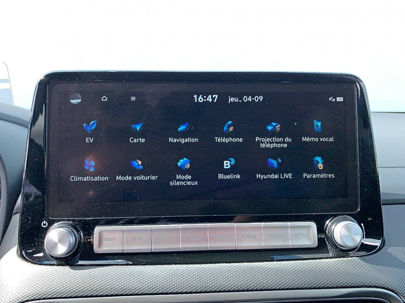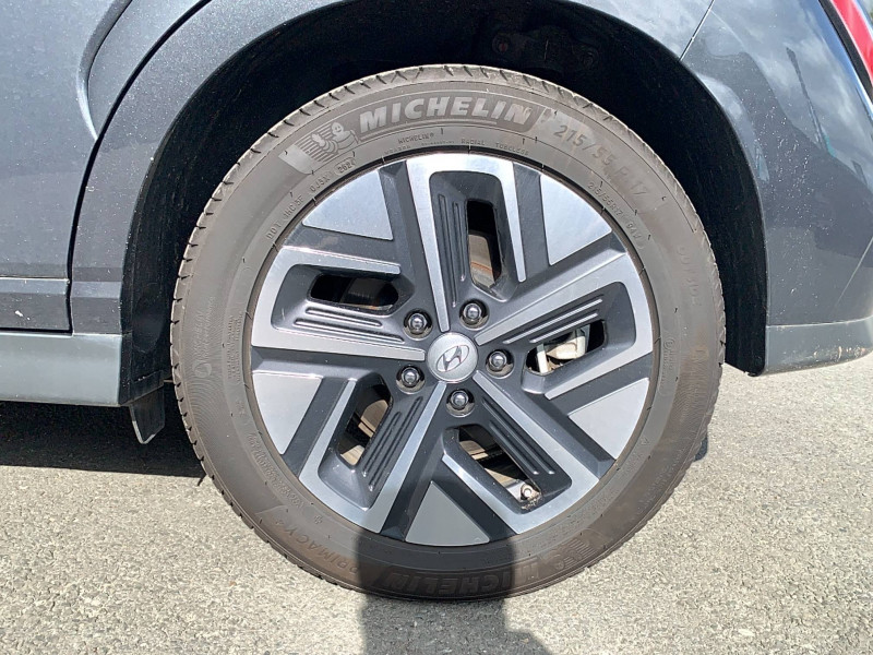 Accès mains-libres et démarrage sans clé / Alarme périmétrique / Alerte de circulation transversale à l'AR / Antenne de toit type requin en effet verre / Câble de recharge pour prise domestique / Câble de recharge Type 2 / Caméra de recul avec lignes de guidage dynamiques / Capteur de désembuage automatique du pare-brise / Chargeur sans fil pour téléphone compatible / Compteurs digitaux 7" / Console de rangement sous accoudoir AV / Contrôle de trajectoire électronique ESP / Détection de fatigue du conducteur / Direction assistée électrique asservie à la vitesse / Drive Mode Eco+ / Eco / Normal / Sport / eCall : appel d'urgence automatique aux services de secours avec géolocalisation du véhicule / Freinage d'urgence autonome avec détection des piétons / Freinage régénératif intelligent / Inserts décoratifs gris (contours des aérateurs et du bloc de levier de vitesses) / Intérieur Noir / Palettes de freinage régénératif modulable au volant / Pompe à chaleur / Prise auxiliaire et USB / Prise Combo Type 2 - 100 kW / Prise Type 2 - 7,2 kW / Prise USB de recharge / Programmation de la recharge et de la ventilation / Rails de toit / Réception radio numérique terrestre (DAB) / Rétroviseur intérieur jour/nuit automatique / Services connectés BlueLink avec carte SIM incluse / Siège conducteur avec support lombaire électrique / Ski AR grain métal / Surveillance des angles morts avec assistance au changement de voie / Système audio premium Krell, 5 HP, 2 tweeters, subwoofer et amplificateur / Système d'accès mains-libres et démarrage sans clé / Système de chauffage de la batterie / Système de chauffage par pompe à chaleur / Système de navigation Europe avec programme de mise à jour de la cartographie et services TomTom Live / Système ISOFIX aux places latérales AR / Système multimédia avec écran couleur tactile 10.25" / Verrouillage automatique des portes en roulant / Vitre conducteur séquentielle