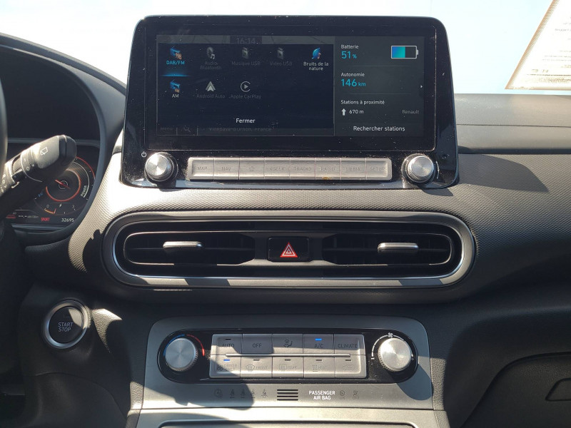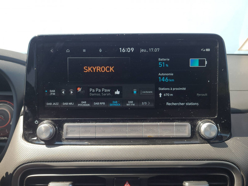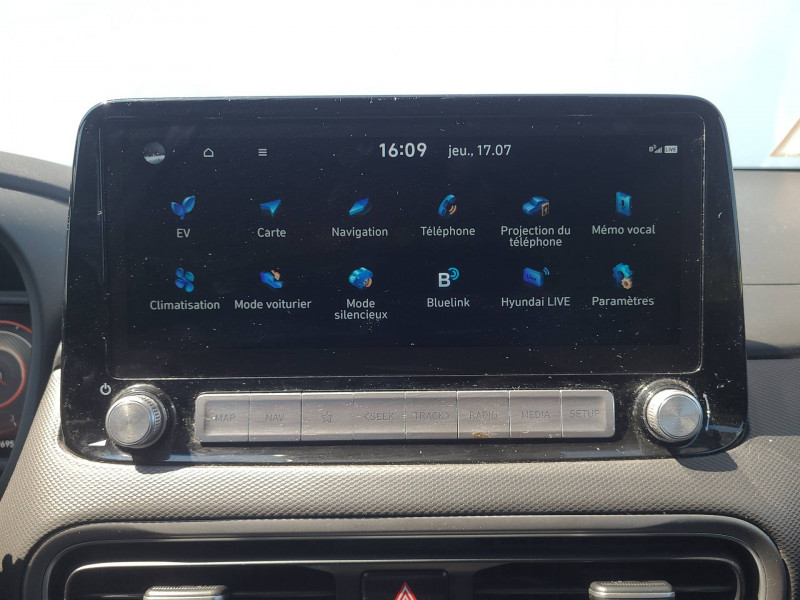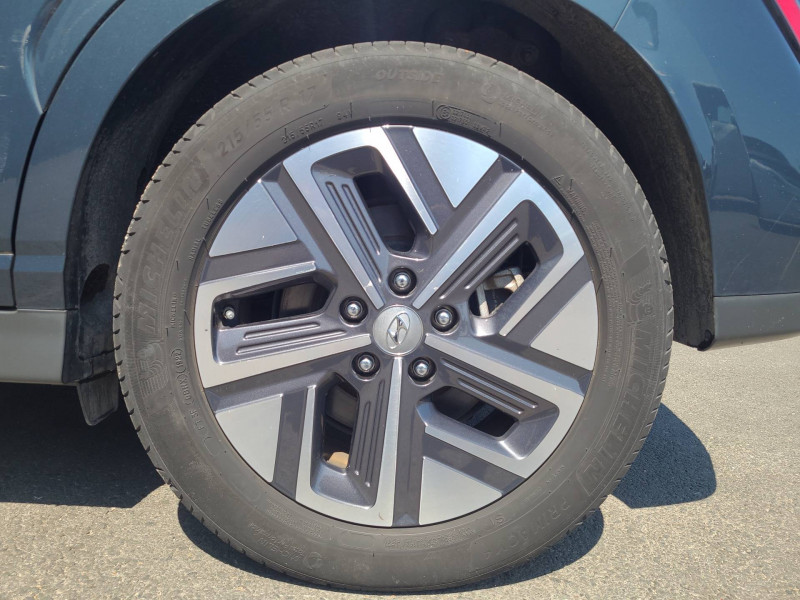 Alarme périmétrique / Alerte de présence de passager AR / Antenne de toit type requin en effet verre / Assistance active au suivi de voie / Câble de recharge pour prise domestique / Câble de recharge Type 2 / Caméra de recul avec lignes de guidage dynamiques / Capteur de désembuage automatique du pare-brise / Chargeur sans fil pour téléphone compatible / Compteurs numériques 10.25" / Console de rangement sous accoudoir AV / Contrôle de trajectoire électronique ESP / Détection de fatigue du conducteur / Drive Mode Eco+ / Eco / Normal / Sport / eCall : appel d'urgence automatique aux services de secours avec géolocalisation du véhicule / Eclairage d'ambiance intérieur à LED / Feux de route intelligents / Freinage d'urgence autonome avec détection des piétons / Intérieur Noir / Intuitive Plus Pack / Palettes de freinage régénératif modulable au volant / Peinture solide Dive in Jeju / Prise Combo Type 2 - 100 kW / Prise Type 2 - 7,2 kW / Prise USB de recharge à l'AV / Programmation de la recharge et de la ventilation / Rails de toit / Réception radio numérique terrestre (DAB) / Rétroviseur intérieur jour/nuit automatique / Services connectés BlueLink avec carte SIM incluse / Siège conducteur avec support lombaire électrique / Système audio premium Krell, 5 HP, 2 tweeters, subwoofer et amplificateur / Système d'accès mains-libres et démarrage sans clé / Système de chauffage de la batterie / Système de navigation Europe avec programme de mise à jour de la cartographie / Système ISOFIX pour siège enfant aux places latérales AR / Système multimédia avec écran tactile 10.25" / Verrouillage automatique des portes en roulant / Vitre conducteur séquentielle