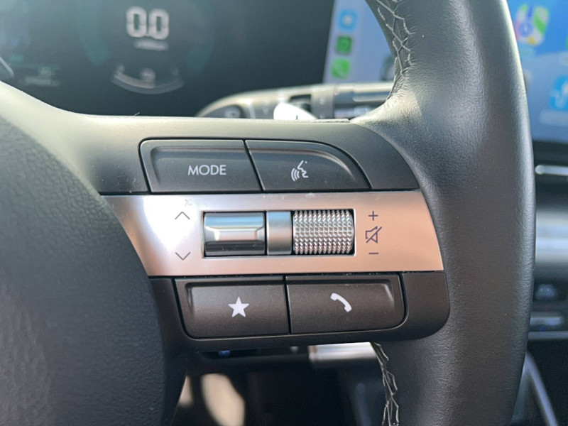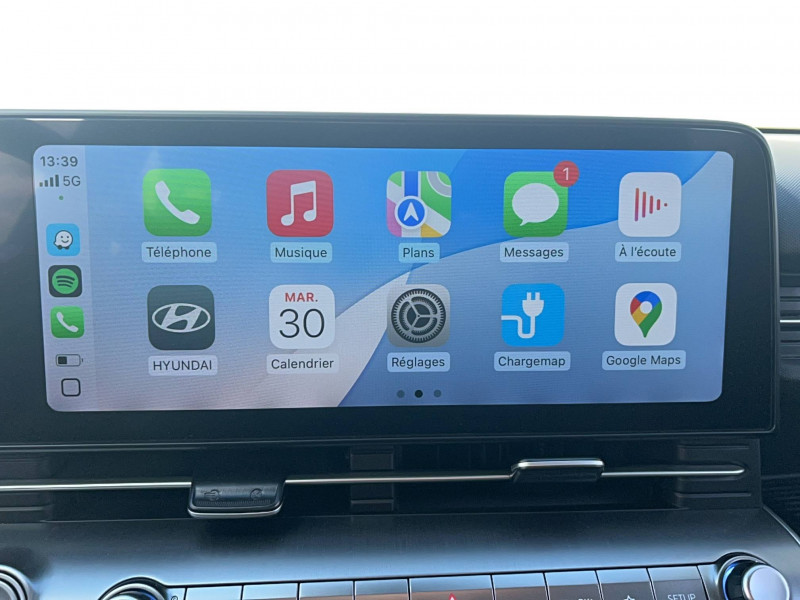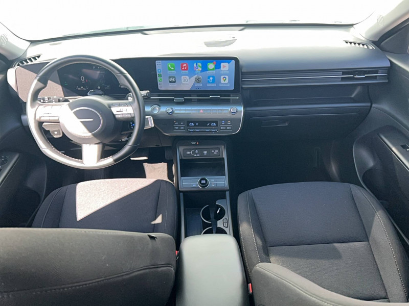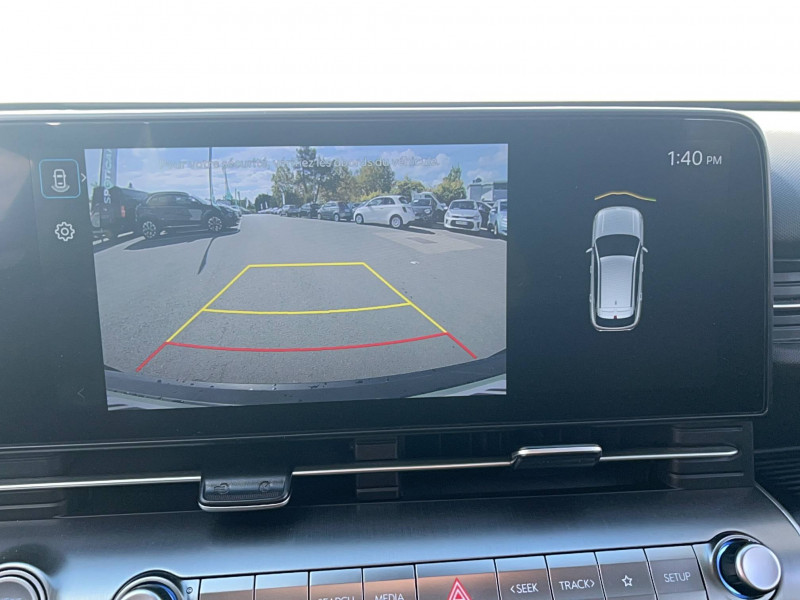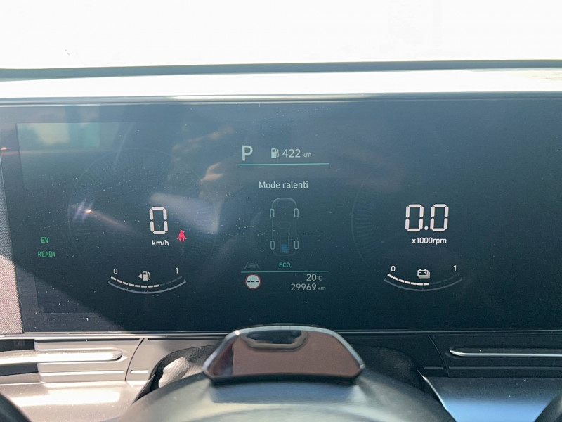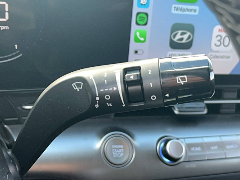 4 prises USB-C; un port de données et une prise de recharge AV, 2 prises de recharge AR / 7 airbags: frontaux conducteur et passager, latéraux AV, rideaux AV/AR, central AV / Accoudoir AR avec porte-gobelets intégré / Alerte de présence de passager AR / Assistance active à la conduite sur autoroute / Assistance active au maintien et au suivi de voie / Caméra de recul avec lignes de guidage dynamiques / Climatisation automatique bi-zone avec fonction Driver Only et capteur de désembuage automatique du pare-brise / Console de rangement sous accoudoir AV / Détection de fatigue du conducteur / Drive Mode (Eco, Sport, Snow) / eCall : appel d'urgence automatique aux services de secours avec géolocalisation du véhicule / Feux de route intelligents / Filet de coffre / Freinage anti multi-collisions / Freinage d'urgence autonome avec reconnaissance véhicule, piéton, cycliste et fonction intersection / Freinage régénératif modulable via palettes au volant / Frein de parking électrique avec fonction auto-hold / Pare-brise avec film acoustique / Plancher de coffre modulable / Protections d'ailes noires / Réception radio numérique terrestre (DAB) / Reconnaissance des panneaux de limitation de vitesse avec limiteur de vitesse intelligent / Services connectés BlueLink avec carte SIM incluse / Système audio RDS, compatible MP3, 4HP et 2 tweeters / Système d'accès mains-libres et démarrage sans clé / Système de navigation Europe avec programme de mise à jour à distance et services Hyundai Live / Système ISOFIX pour siège enfant aux places latérales AR / Système multimédia avec écran couleur tactile 12,3" / Transmission à commande électrique / Verrouillage automatique des portes en roulant / Vitres électriques AV/AR et séquentielle à l'AV
