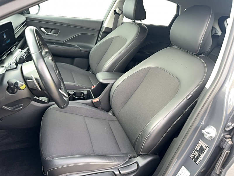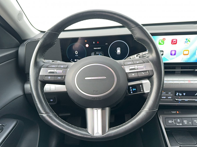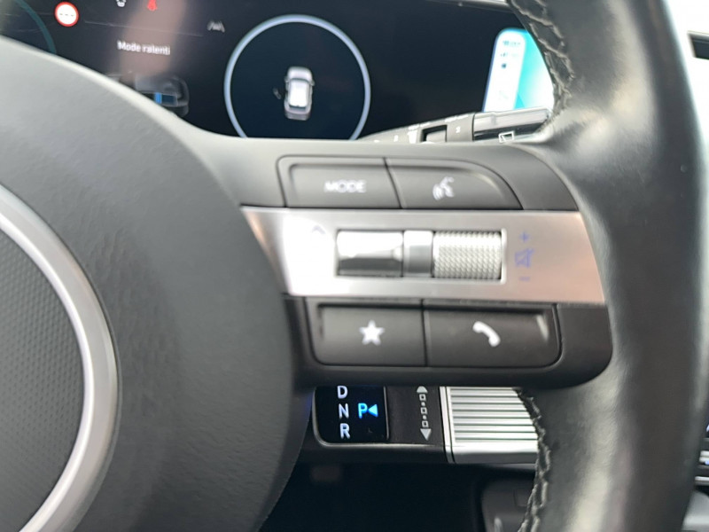 4 prises USB-C; un port de données et une prise de recharge AV, 2 prises de recharge AR / 7 airbags: frontaux conducteur et passager, latéraux AV, rideaux AV/AR, central AV / Accoudoir AR avec porte-gobelets intégré / Alerte de circulation transversale AR avec fonction freinage / Alerte de présence de passager AR / Assistance active à la conduite sur autoroute / Assistance active au maintien et au suivi de voie / Assistance à la sortie du véhicule pour passagers AR / Caméra de recul avec lignes de guidage dynamiques / Chargeur sans fil pour téléphone compatible / Climatisation automatique bi-zone avec fonction Driver Only et capteur de désembuage automatique du pare-brise / Compteurs numériques 12,3" / Console de rangement sous accoudoir AV / Détection de fatigue du conducteur / Drive Mode (Eco, Sport, Snow) / eCall : appel d'urgence automatique aux services de secours avec géolocalisation du véhicule / Eclairage d'ambiance intérieur à LED / Feux de route intelligents / Filet de coffre / Freinage anti multi-collisions / Freinage d'urgence autonome avec reconnaissance véhicule, piéton, cycliste et fonction intersection / Freinage régénératif intelligent (modulable via palettes au volant) / Frein de parking électrique avec fonction auto-hold / Ligne de caisse satinée / Ouïes de ventilation AR / Pare-brise avec film acoustique / Plancher de coffre modulable / Poches aumonières au dos des sièges AV / Poignées de portes intérieures grain métal / Protections d'ailes gris anthracite / Rails de toit / Réception radio numérique terrestre (DAB) / Reconnaissance des panneaux de limitation de vitesse avec limiteur de vitesse intelligent / Rétroviseur intérieur jour/nuit automatique / Services connectés BlueLink avec carte SIM incluse / Siège conducteur avec support lombaire électrique / Skis AV et AR grain métal / Surveillance active des angles morts / Système audio RDS, compatible MP3, 4HP et 2 tweeters / Système d'accès mains-libres et démarrage sans clé / Système de navigation Europe avec programme de mise à jour à distance et services Hyundai Live / Système ISOFIX pour siège enfant aux places latérales AR / Système multimédia avec écran couleur tactile 12,3" / Transmission à commande électrique / Verrouillage automatique des portes en roulant / Vitres électriques AV/AR et séquentielle à l'AV / Volant chauffant / Volant et pommeau de levier de vitesses gainés de cuir