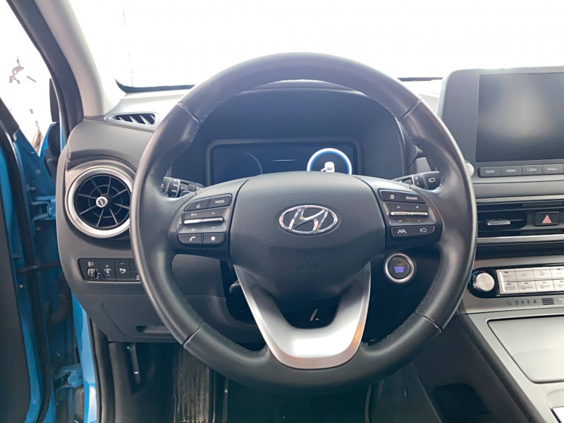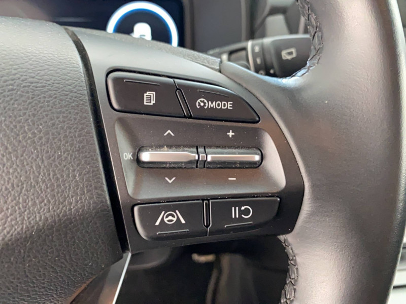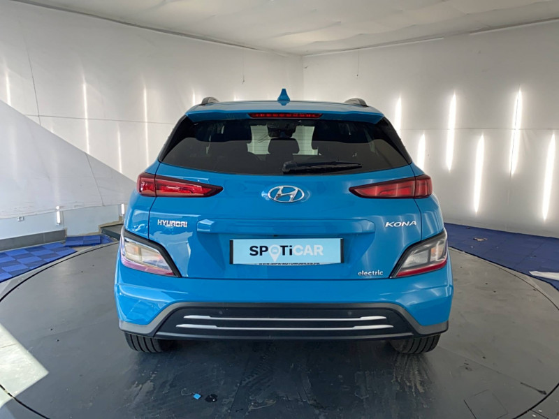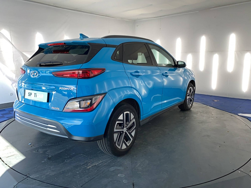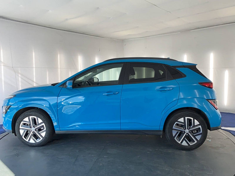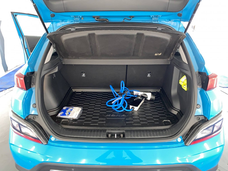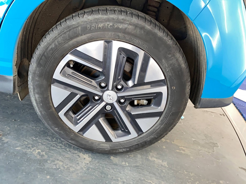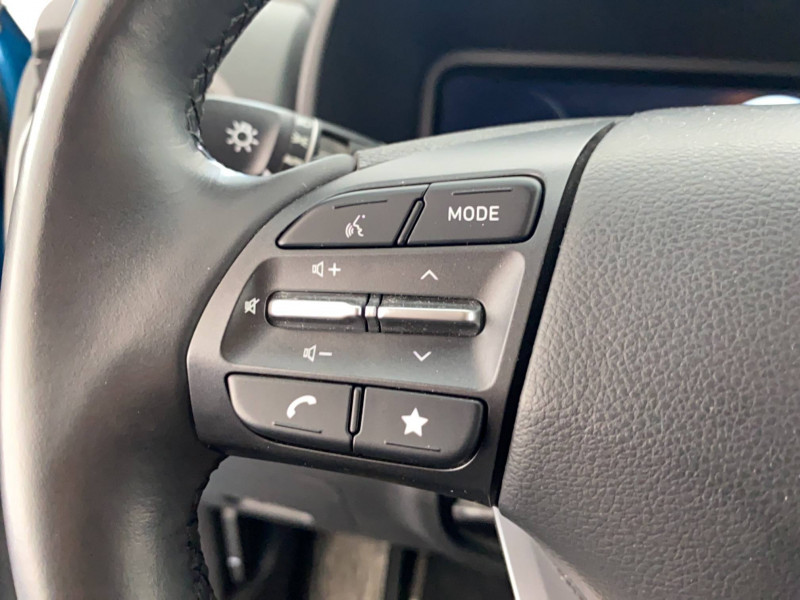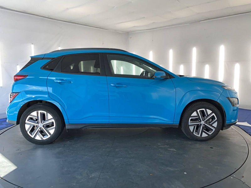 Alarme périmétrique / Alerte de présence de passager AR / Antenne de toit type requin en effet verre / Assistance active au suivi de voie / Câble de recharge pour prise domestique / Câble de recharge Type 2 / Caméra de recul avec lignes de guidage dynamiques / Capteur de désembuage automatique du pare-brise / Compteurs numériques 10.25" / Console de rangement sous accoudoir AV / Contrôle de trajectoire électronique ESP / Détection de fatigue du conducteur / Drive Mode Eco+ / Eco / Normal / Sport / eCall : appel d'urgence automatique aux services de secours avec géolocalisation du véhicule / Freinage d'urgence autonome avec détection des piétons / Intérieur Noir / Palettes de freinage régénératif modulable au volant / Peinture solide Dive in Jeju / Prise Combo Type 2 - 100 kW / Prise Type 2 - 7,2 kW / Prise USB de recharge à l'AV / Programmation de la recharge et de la ventilation / Rails de toit / Réception radio numérique terrestre (DAB) / Siège conducteur avec support lombaire électrique / Système audio RDS, MP3, 4 HPs, 2 tweeters / Système d'accès mains-libres et démarrage sans clé / Système de chauffage de la batterie / Système ISOFIX pour siège enfant aux places latérales AR / Système multimédia avec écran couleur tactile 8" / Verrouillage automatique des portes en roulant