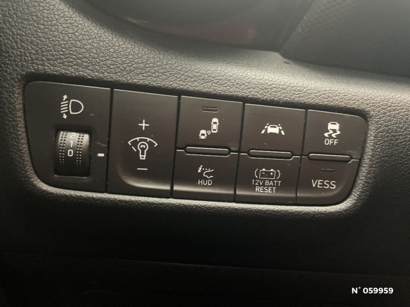 Alerte de présence de passager AR / Eclairage d'ambiance intérieur à LED / eCall : appel d'urgence automatique aux services de secours avec géolocalisation du véhicule / Système de navigation Europe avec assistant d'éco-conduite et programme de mise à jour de la cartographie / Système multimédia avec écran couleur tactile 10.25" / Services connectés BlueLink avec carte SIM incluse / Freinage d'urgence autonome avec reconnaissance piéton / Compteurs numériques 10.25" / Prise USB de recharge à l'AV / Prise USB de recharge à l'AR / Peinture solide Dive in Jeju / Rails de toit / Vitre conducteur séquentielle / Système d'accès mains-libres et démarrage sans clé / Caméra de recul avec lignes de guidage dynamiques / Verrouillage automatique des portes en roulant / Rétroviseurs intérieur jour/nuit automatique / ABS et EBD / Alarme périmétrique / Volant et pommeau de levier de vitesses gainés de cuir / Calandre noir laqué / Siège conducteur avec support lombaire électrique / Poignées de portes intérieures grain métal / Feux de route intelligents / Poches aumonières au dos des sièges AV / Contrôle de trajectoire électronique ESP / Système ISOFIX pour siège enfant aux places latérales AR / Détection de fatigue du conducteur / Drive Mode / Ski AR grain métal / Chargeur sans fil pour téléphone compatible / Réception radio numérique terrestre (DAB) / Moulures de protection latérale avec insert grain métal / Protections d'ailes gris anthracite / Console de rangement sous accoudoir AV / Antenne de toit type requin / Système audio premium Krell, 5 haut-parleurs, 2 tweeters, subwoofer et amplificateur / Assistance active au suivi de voie
