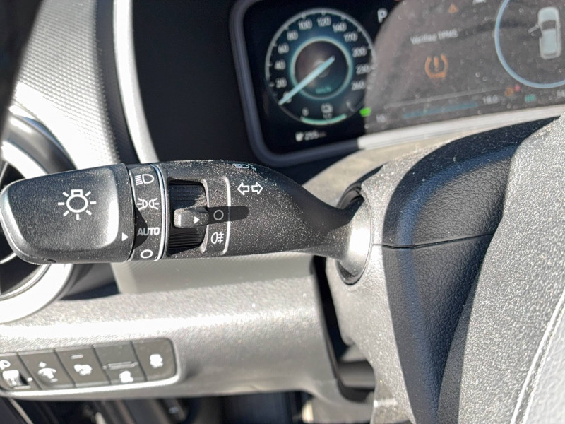 ABS, EBD et AFU / Alarme périmétrique / Alerte de présence de passager AR / Antenne de toit type requin / Assistance active au suivi de voie / Câble de recharge pour prise domestique / Câble de recharge Type 2 / Caméra de recul avec lignes de guidage dynamiques / Capteur de désembuage automatique du pare-brise / Compteurs numériques 10,25" / Console de rangement sous accoudoir AV / Contrôle de trajectoire électronique ESP / Détection de fatigue du conducteur / Drive Mode Eco+ / Eco / Normal / Sport / eCall : appel d'urgence automatique aux services de secours avec géolocalisation du véhicule / Freinage d'urgence autonome avec détection des piétons / Intérieur Noir / Palettes de freinage régénératif modulable au volant / Peinture solide Dive in Jeju / Prise Combo Type 2 - 100 kW / Prise Type 2 - 7,2kW / Prise USB de recharge à l'AV / Programmation de la recharge et de la ventilation / Rails de toit / Réception radio numérique terrestre (DAB) / Siège conducteur avec support lombaire électrique / Système audio RDS, MP3, 4 HPs, 2 tweeters / Système d'accès mains-libres et démarrage sans clé / Système de chauffage de la batterie / Système ISOFIX pour siège enfant aux places latérales AR / Système multimédia avec écran couleur tactile 8" / Verrouillage automatique des portes en roulant