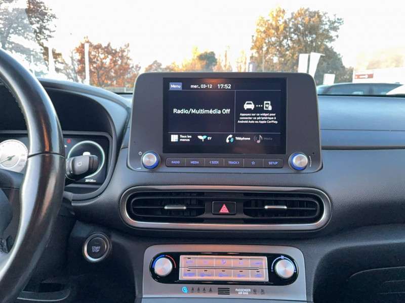 Alarme périmétrique / Alerte de présence de passager AR / Antenne de toit type requin en effet verre / Assistance active au suivi de voie / Câble de recharge pour prise domestique / Câble de recharge Type 2 / Caméra de recul avec lignes de guidage dynamiques / Capteur de désembuage automatique du pare-brise / Compteurs numériques 10,25" / Console de rangement sous accoudoir AV / Contrôle de trajectoire électronique ESP / Détection de fatigue du conducteur / Drive Mode Eco+ / Eco / Normal / Sport / eCall : appel d'urgence automatique aux services de secours avec géolocalisation du véhicule / Freinage d'urgence autonome avec détection des piétons / Intérieur Noir / Palettes de freinage régénératif modulable au volant / Peinture solide Dive in Jeju / Prise Combo Type 2 - 100 kW / Prise Type 2 - 7,2kW / Prise USB de recharge à l'AV / Programmation de la recharge et de la ventilation / Rails de toit / Réception radio numérique terrestre (DAB) / Siège conducteur avec support lombaire électrique / Système audio RDS, MP3, 4 HPs, 2 tweeters / Système d'accès mains-libres et démarrage sans clé / Système de chauffage de la batterie / Système ISOFIX pour siège enfant aux places latérales AR / Système multimédia avec écran couleur tactile 8" / Verrouillage automatique des portes en roulant
