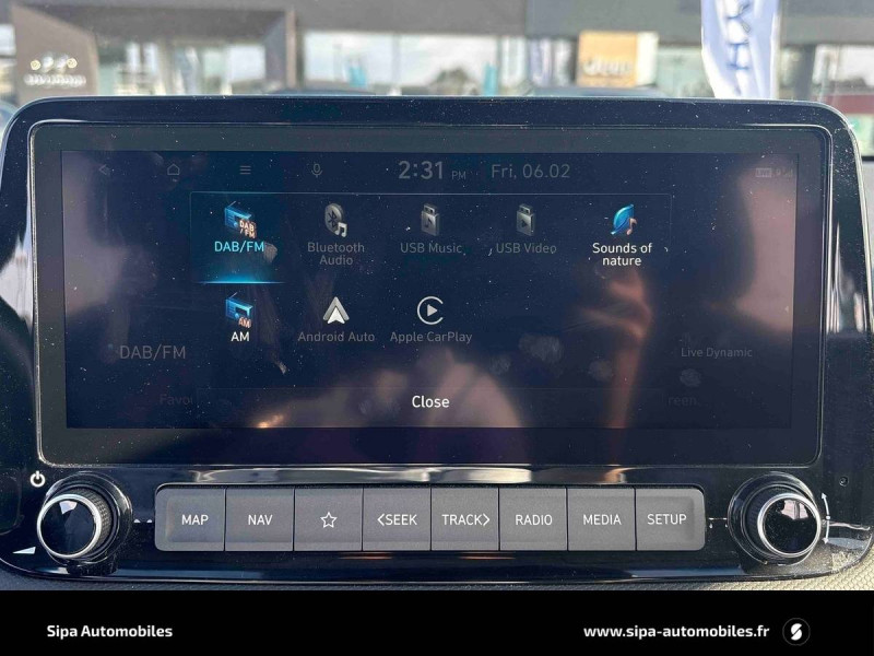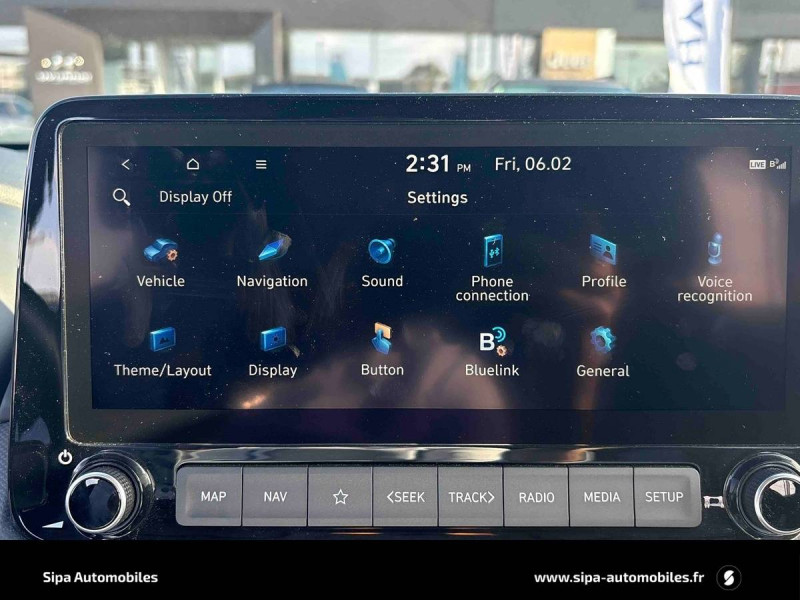 ABS et EBD / Alarme périmétrique / Alerte de présence de passager AR / Antenne de toit type requin en effet verre / Assistance active au suivi de voie / Calandre noir laqué / Caméra de recul avec lignes de guidage dynamiques / Chargeur sans fil pour téléphone compatible / Compteurs numériques 10,25" / Console de rangement sous accoudoir AV / Contrôle de trajectoire électronique ESP / Détection de fatigue du conducteur / Drive Mode / eCall : appel d'urgence automatique aux services de secours avec géolocalisation du véhicule / Eclairage d'ambiance intérieur à LED / Feux de route intelligents / Freinage d'urgence autonome avec reconnaissance piétons / Moulures de protection latérale avec insert grain métal / Peinture solide Dive in Jeju / Poches aumonières au dos des sièges AV / Poignées de portes intérieures grain métal / Prise USB de recharge à l'AR / Prise USB de recharge à l'AV / Protections d'ailes gris anthracite / Rails de toit / Réception radio numérique terrestre (DAB) / Rétroviseurs intérieur jour/nuit automatique / Services connectés BlueLink avec carte SIM incluse / Siège conducteur avec support lombaire électrique / Ski AR grain métal / Système audio premium Krell, 5 HP, 2 tweeters, subwoofer et amplificateur / Système d'accès mains-libres et démarrage sans clé / Système de navigation Europe avec assistant d'éco-conduite et programme de mise à jour de la cartographie / Système ISOFIX pour siège enfant aux places latérales AR / Système multimédia avec écran couleur tactile 10.25" / Verrouillage automatique des portes en roulant / Vitre conducteur séquentielle / Volant et pommeau de levier de vitesses gainés de cuir
