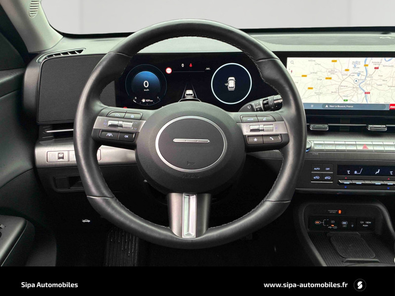Climatisation automatique bi-zone avec fonction Driver Only et capteur de désembuage automatique du pare-brise / eCall: appel d'urgence automatique aux services de secours avec géolocalisation du véhicule / Eclairage d'ambiance à LED personnalisable / Rétroviseur intérieur jour/nuit automatique / Système de navigation Europe avec programme de mise à jour à distance et services Hyundai Live / Verrouillage automatique des portes en roulant / 4 prises USB-C; un port de données et une prise de recharge AV, 2 prises de recharge AR / 7 airbags: frontaux conducteur et passager, latéraux AV, rideaux AV/AR, central AV / Accoudoir AR avec porte-gobelets intégré / Alerte de circulation transversale AR avec fonction freinage / Alerte de présence de passager AR / Assistance active au maintien et au suivi de voie / Assistance active à la conduite sur autoroute / Assistance à la sortie du véhicule pour passagers AR / Caméra de recul avec lignes de guidage dynamiques / Chargeur sans fil pour téléphone compatible / Compteurs numériques 12,3" / Console de rangement sous accoudoir AV / Drive Mode (Eco, Sport, Snow) / Détection de fatigue du conducteur / Feux de route intelligents / Frein de parking électrique avec fonction auto-hold / Freinage anti multi-collisions / Freinage d'urgence autonome avec reconnaissance véhicule, piéton, cycliste et fonction intersection / Ligne de caisse satinée / Ouïes de ventilation AR / Pare-brise avec film acoustique / Plancher de coffre modulable / Poches aumonières au dos des sièges AV / Poignées de portes intérieures grain métal / Protections d'ailes gris anthracite / Rails de toit / Reconnaissance des panneaux de limitation de vitesse avec limiteur de vitesse intelligent / Réception radio numérique terrestre (DAB) / Services connectés BlueLink avec carte SIM incluse / Siège conducteur avec support lombaire électrique / Skis AV et AR grain métal / Surveillance active des angles morts / Système audio RDS, compatible MP3, 4HP et 2 tweeters / Système d'accès mains-libres et démarrage sans clé / Système ISOFIX pour siège enfant aux places latérales AR / Système multimédia avec écran couleur tactile 12,3" / Transmission à commande électrique / Vitres électriques AV/AR et séquentielle à l'AV / Volant chauffant